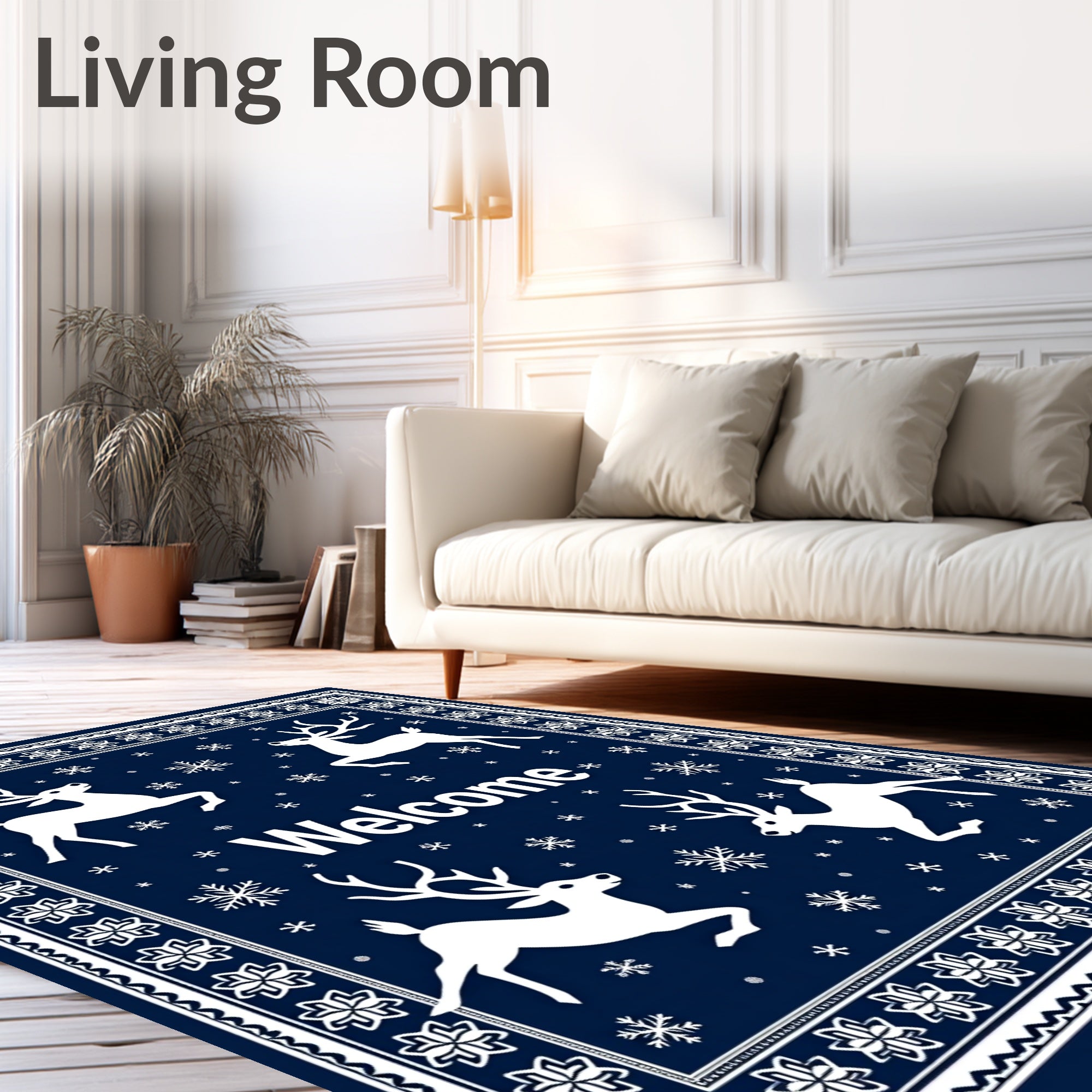 Ultra Soft Area Rug, Non Slip, Stain Resistant, Washable Area Rugs for Living Room, Bedroom, Enchanted Forest Reindeer Welcome Entrance(Blue) Overview: