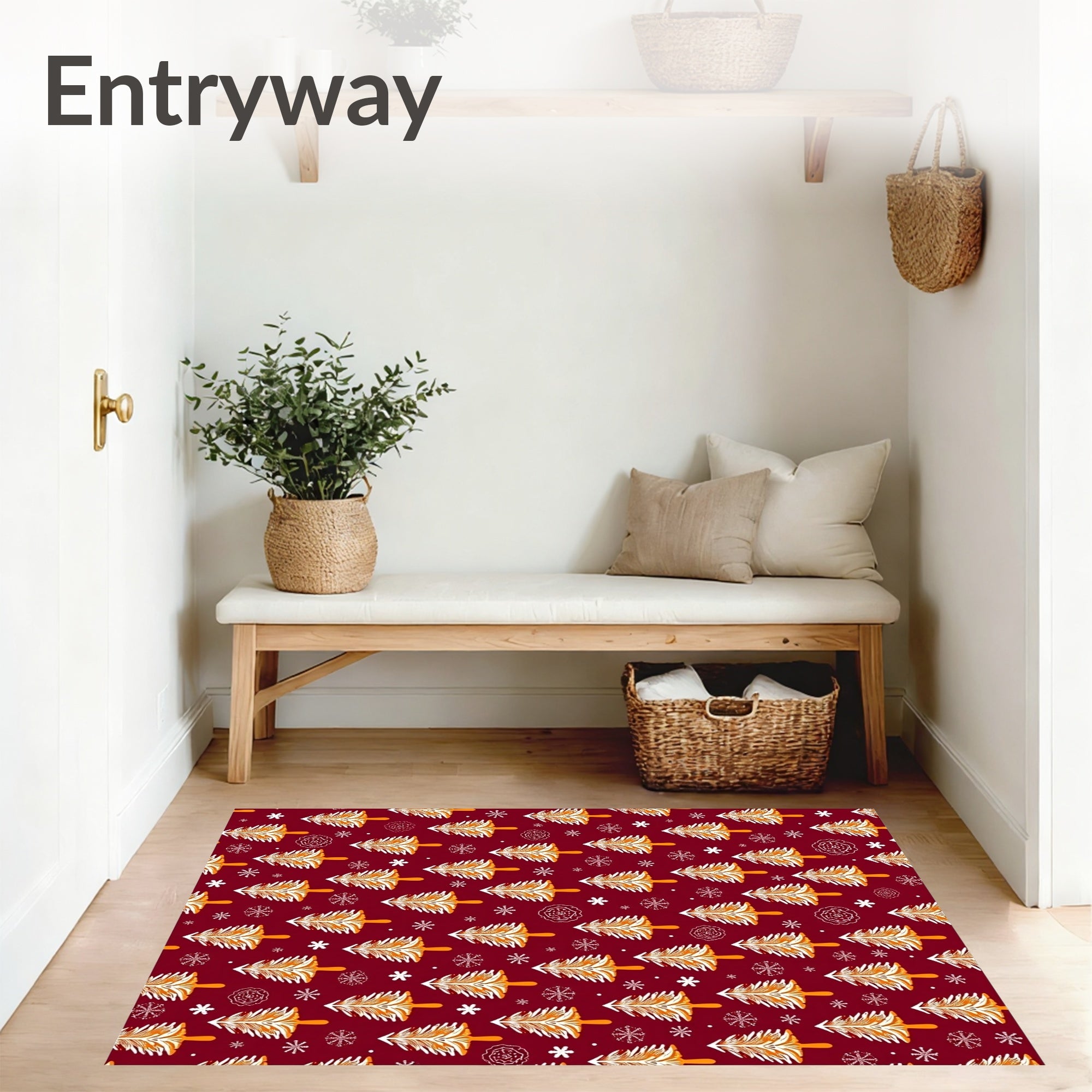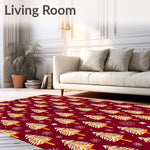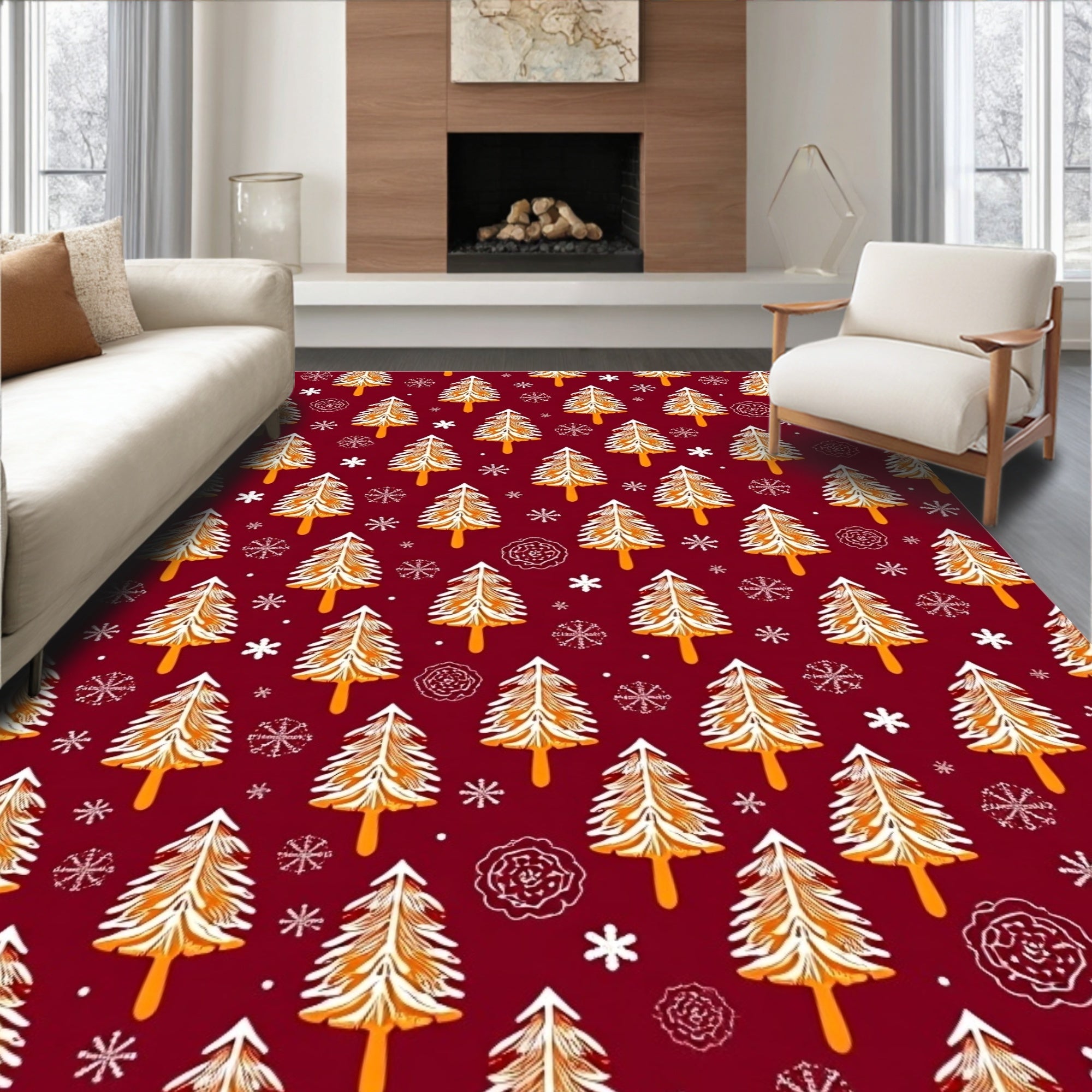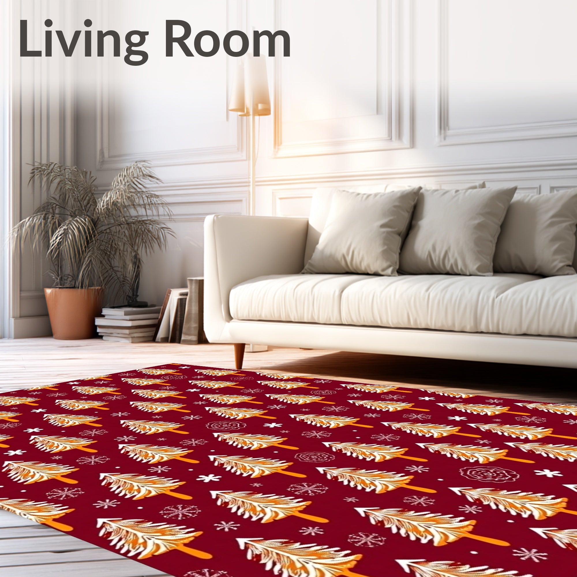 Ultra Soft Area Rug, Non Slip, Stain Resistant, Washable Area Rugs for Living Room, Bedroom, Enchanted Forest Snow Covered Pine Trees Christmas Themed(Red) Overview:
