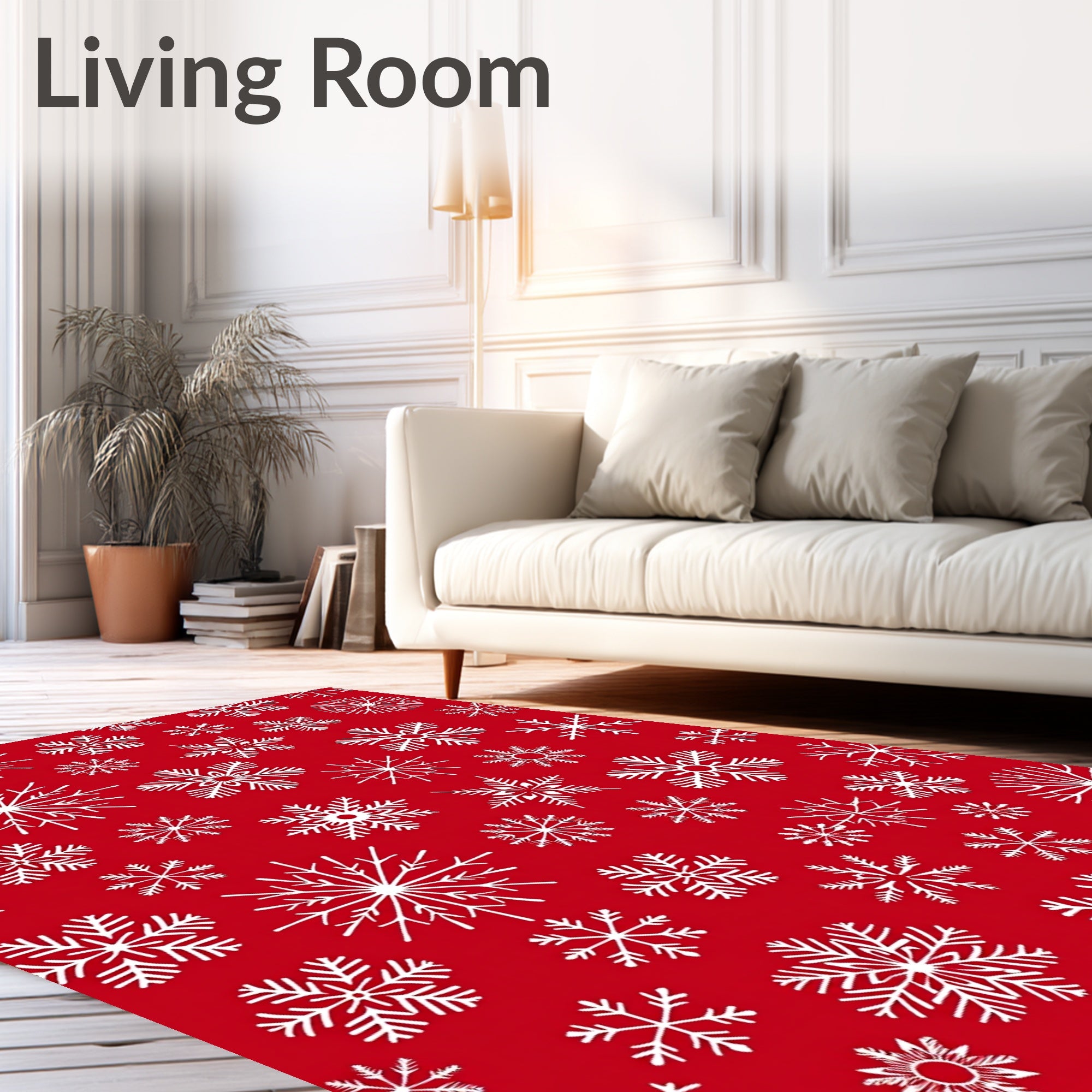 Ultra Soft Area Rug, Non Slip, Stain Resistant, Washable Area Rugs for Living Room, Bedroom, Enchanted Frosty Celebration Pathway Adornment Seasonal Embellish(Red) Overview: