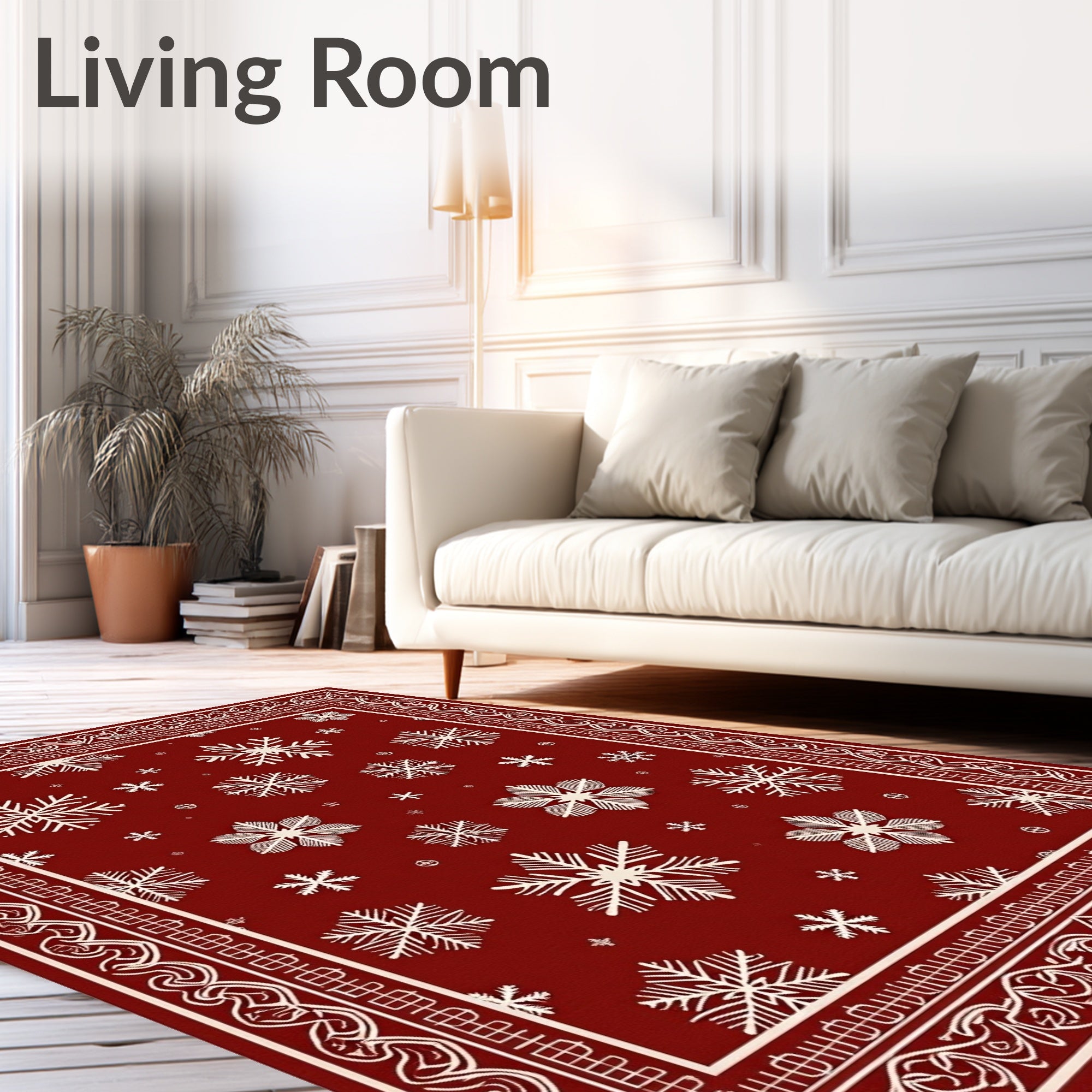 Ultra Soft Area Rug, Non Slip, Stain Resistant, Washable Area Rugs for Living Room, Bedroom, Enchanted Frosty Delight Seasonal Accent(Red) Overview: