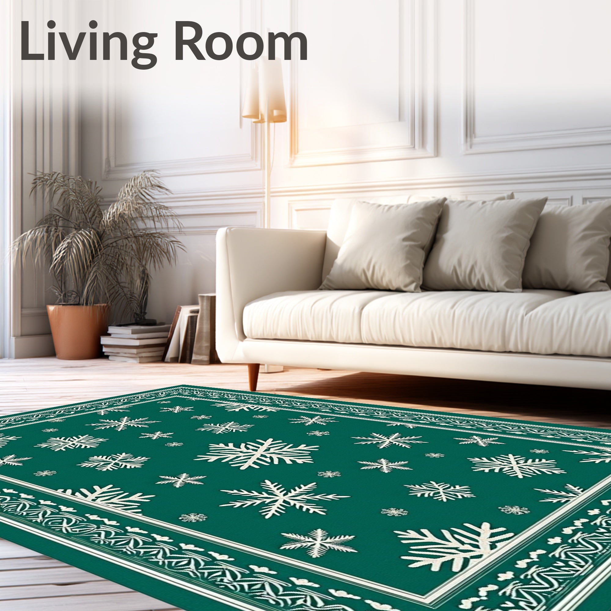 Ultra Soft Area Rug, Non Slip, Stain Resistant, Washable Area Rugs for Living Room, Bedroom, Enchanted Frosty Evergreen Seasonal Welcome(Green) Overview: