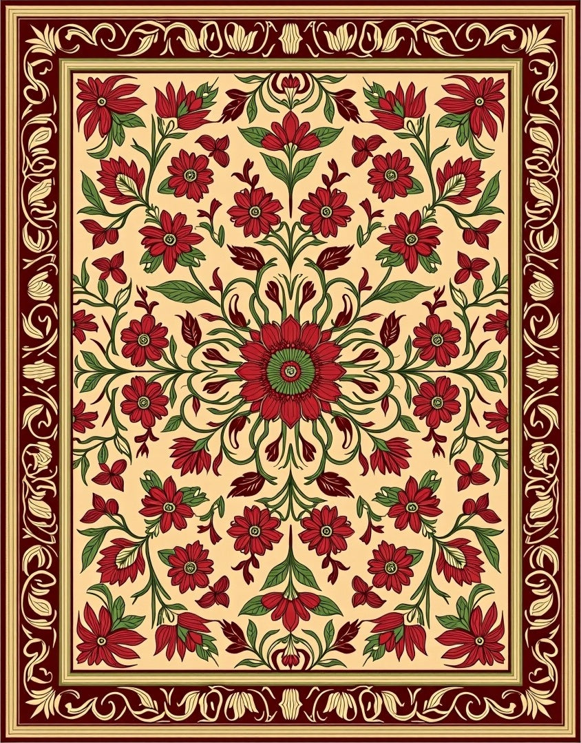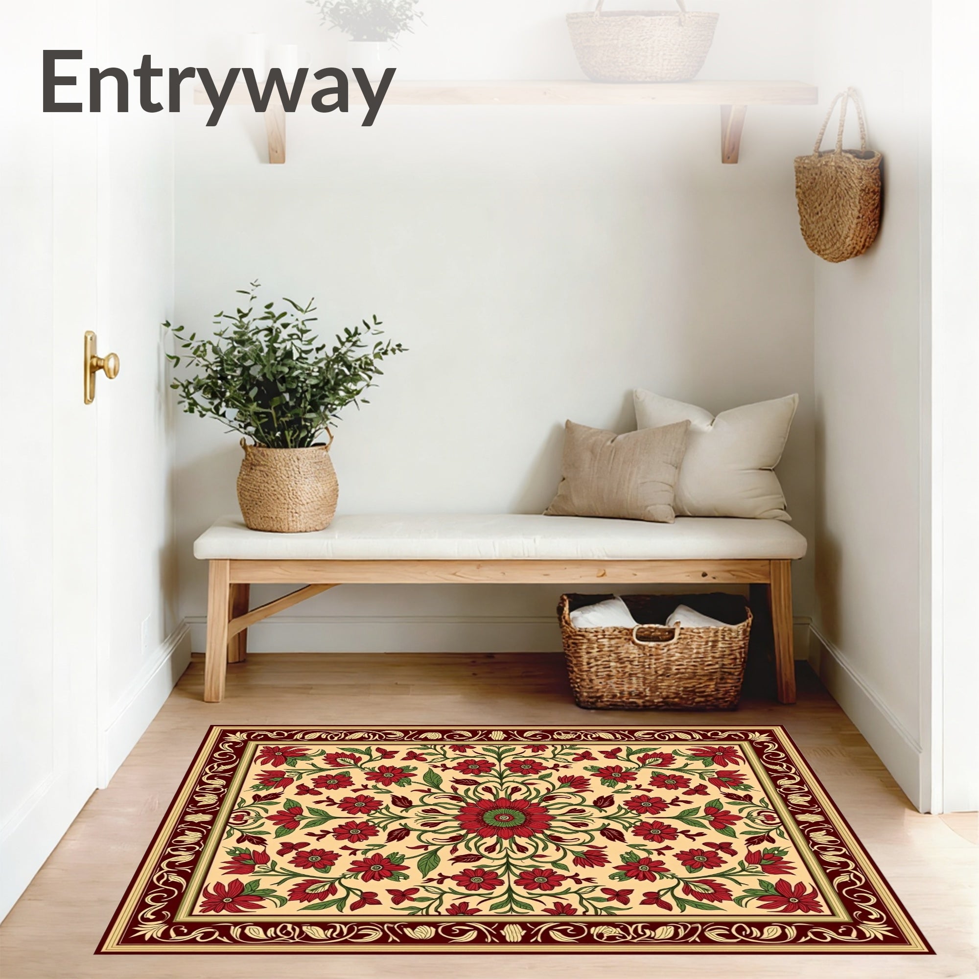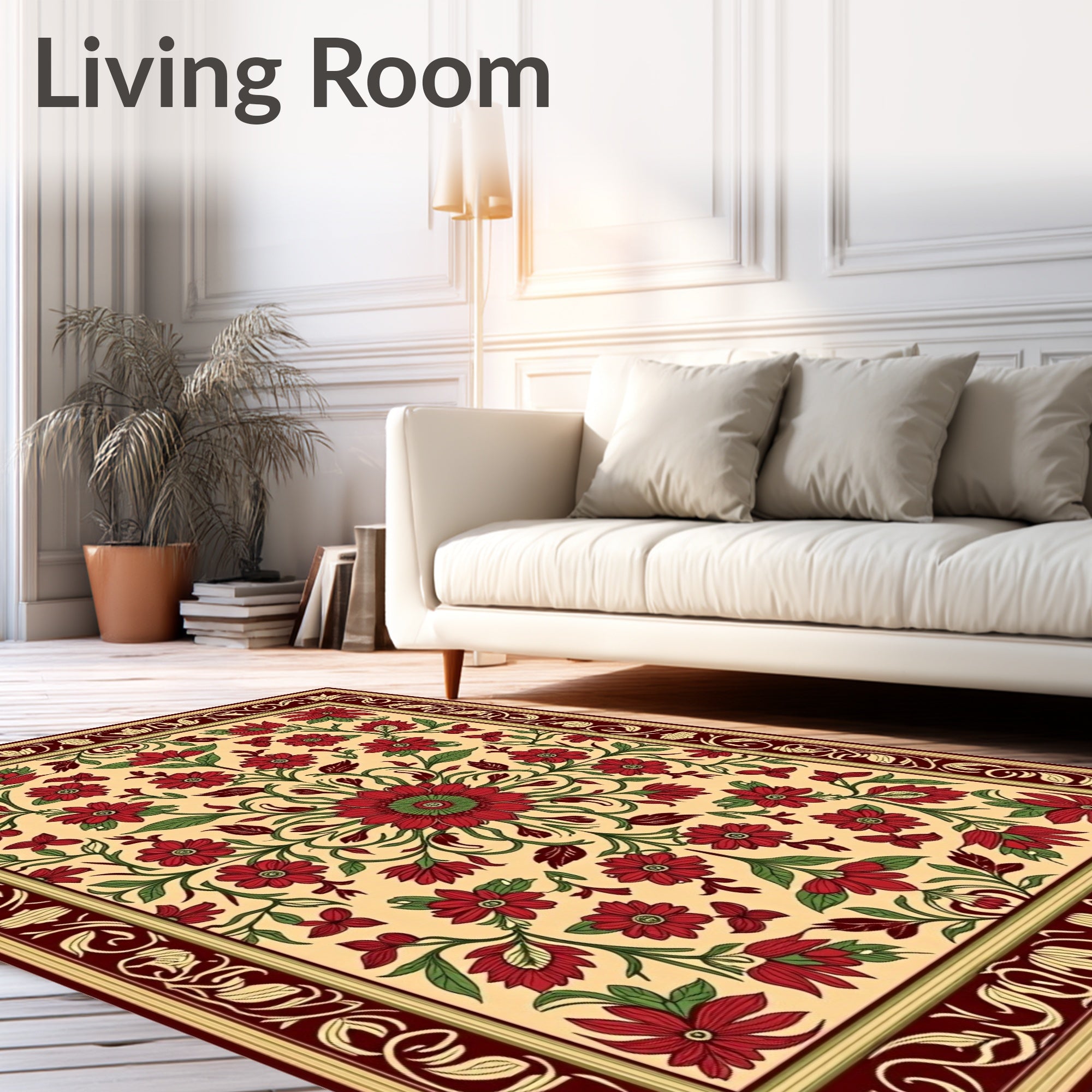 Ultra Soft Area Rug, Non Slip, Stain Resistant, Washable Area Rugs for Living Room, Bedroom, Enchanted Garden Blossom Ornamental Heirloom Jewel(Beige) Overview: