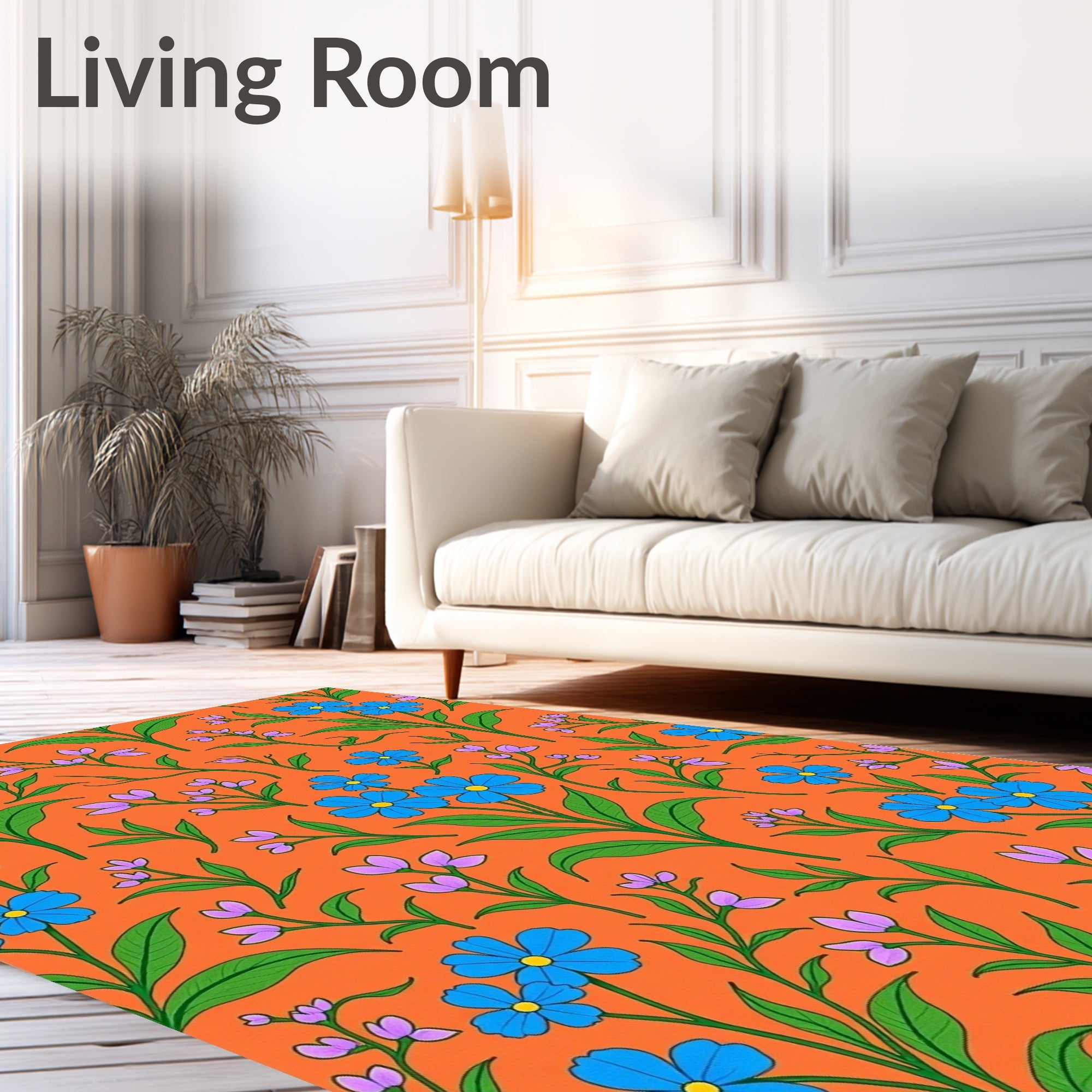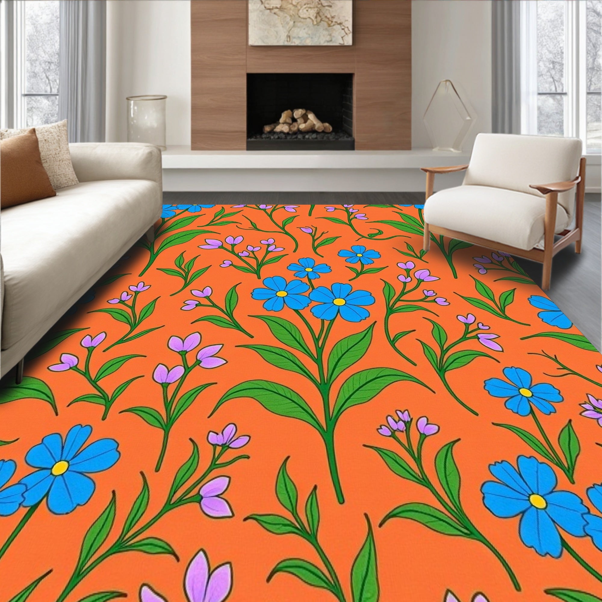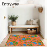 Ultra Soft Area Rug, Non Slip, Stain Resistant, Washable Area Rugs for Living Room, Bedroom, Enchanted Garden Blossom Trellis Heirloom Artistic(Orange) Overview: