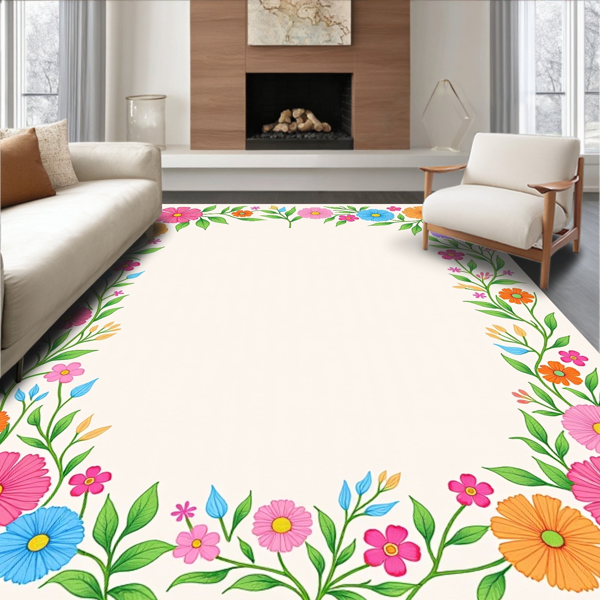 Ultra Soft Area Rug, Non Slip, Stain Resistant, Washable Area Rugs for Living Room, Bedroom, Enchanted Garden Botanical Floral Arrangement Tapestry(Pink) Overview: