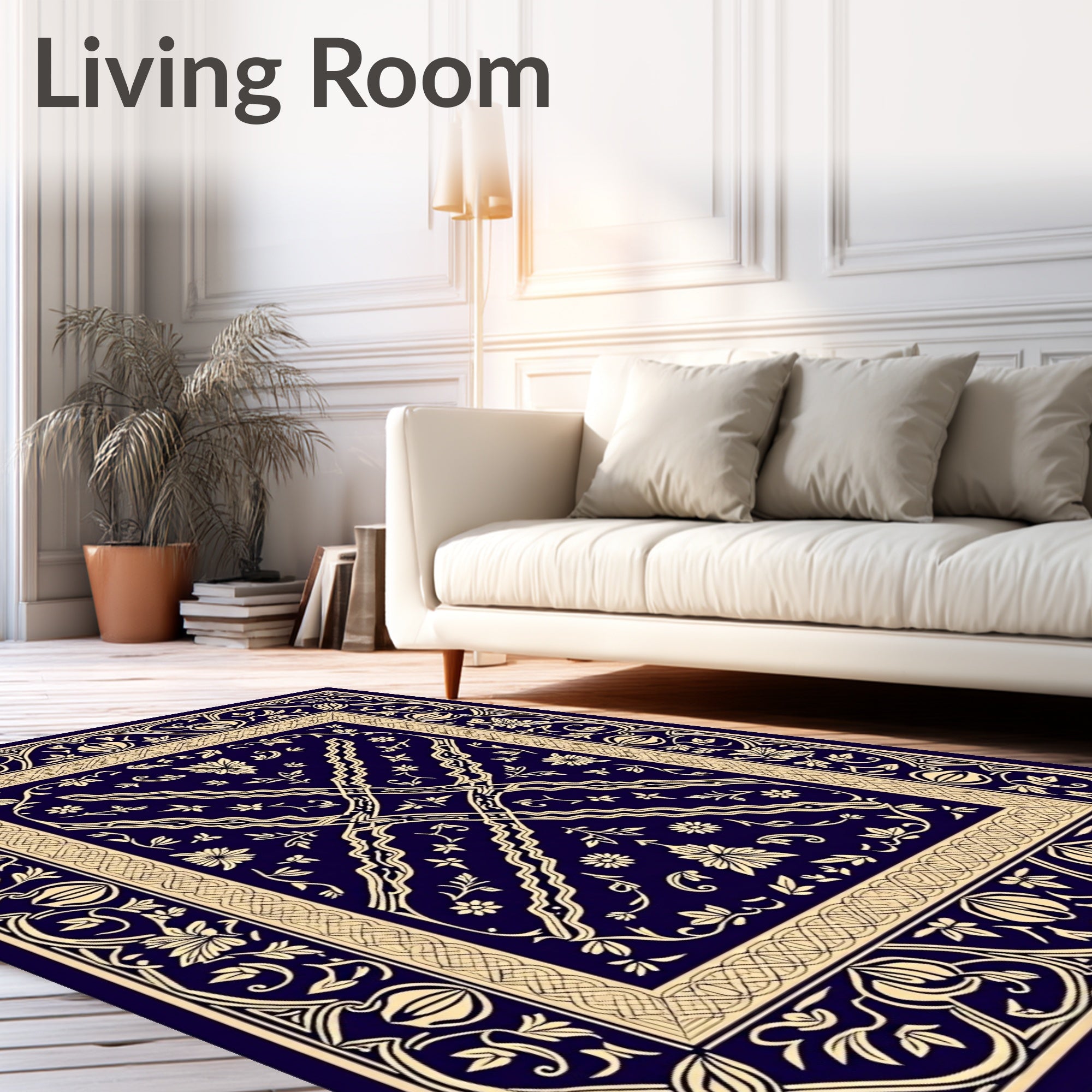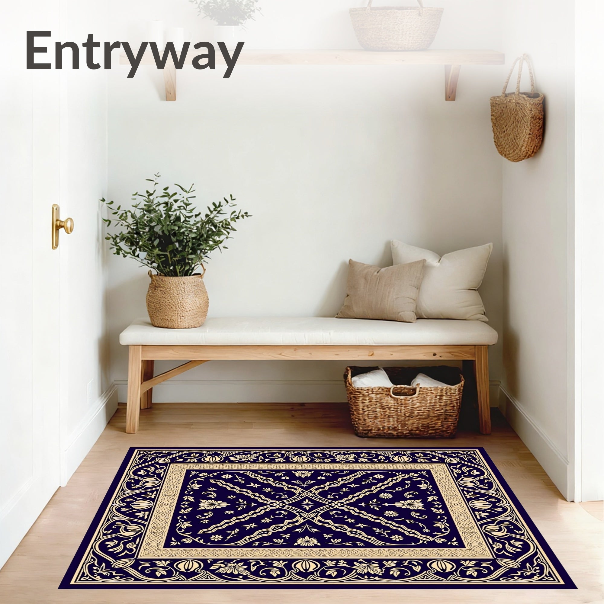 Ultra Soft Area Rug, Non Slip, Stain Resistant, Washable Area Rugs for Living Room, Bedroom, Enchanted Garden Lattice Botanical Treasure(Blue) Overview: