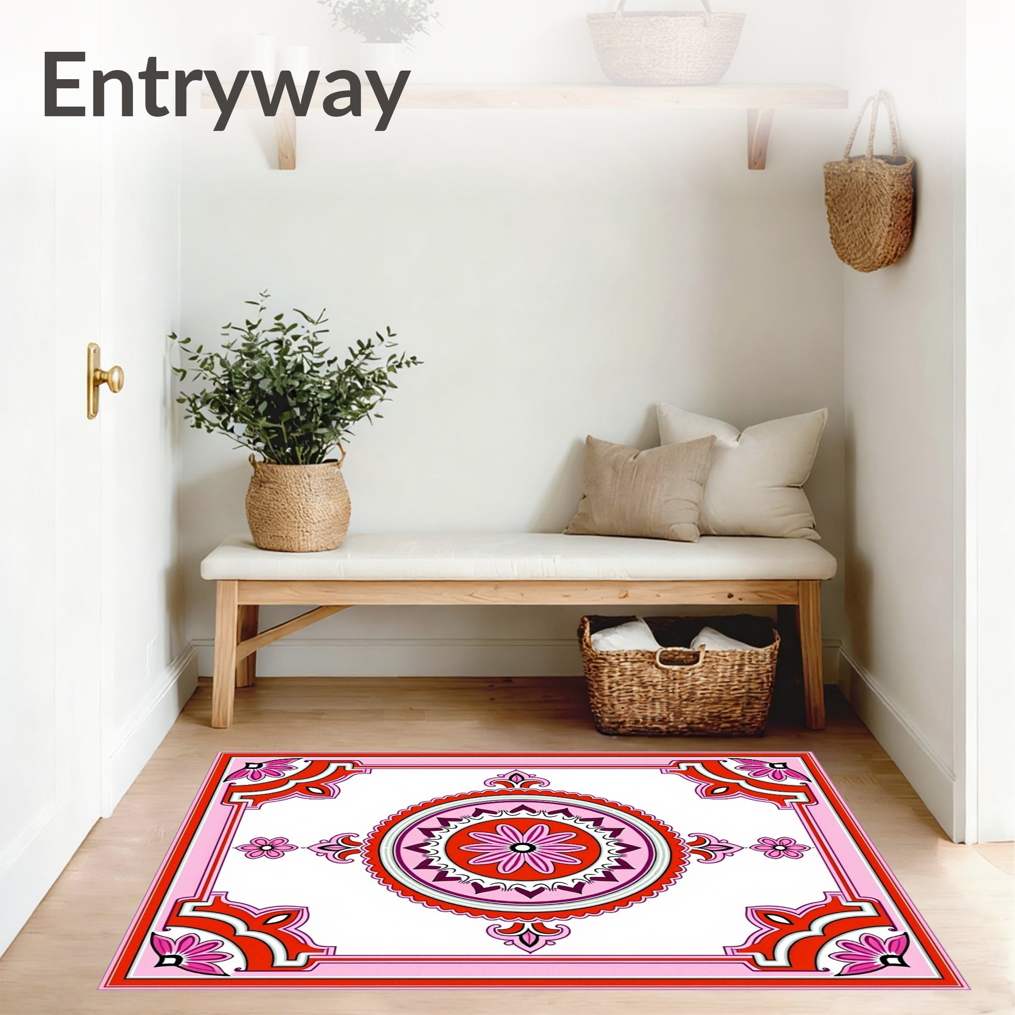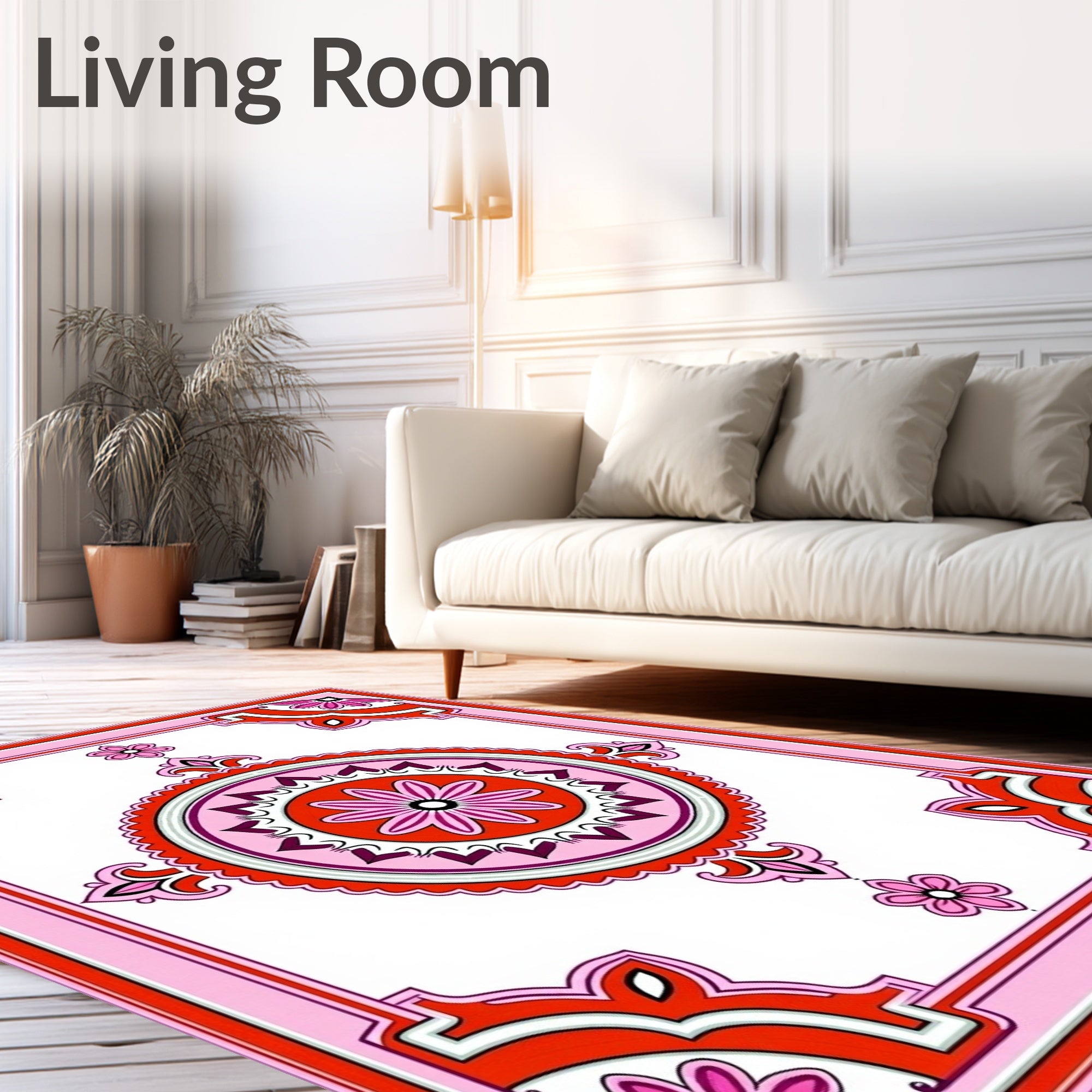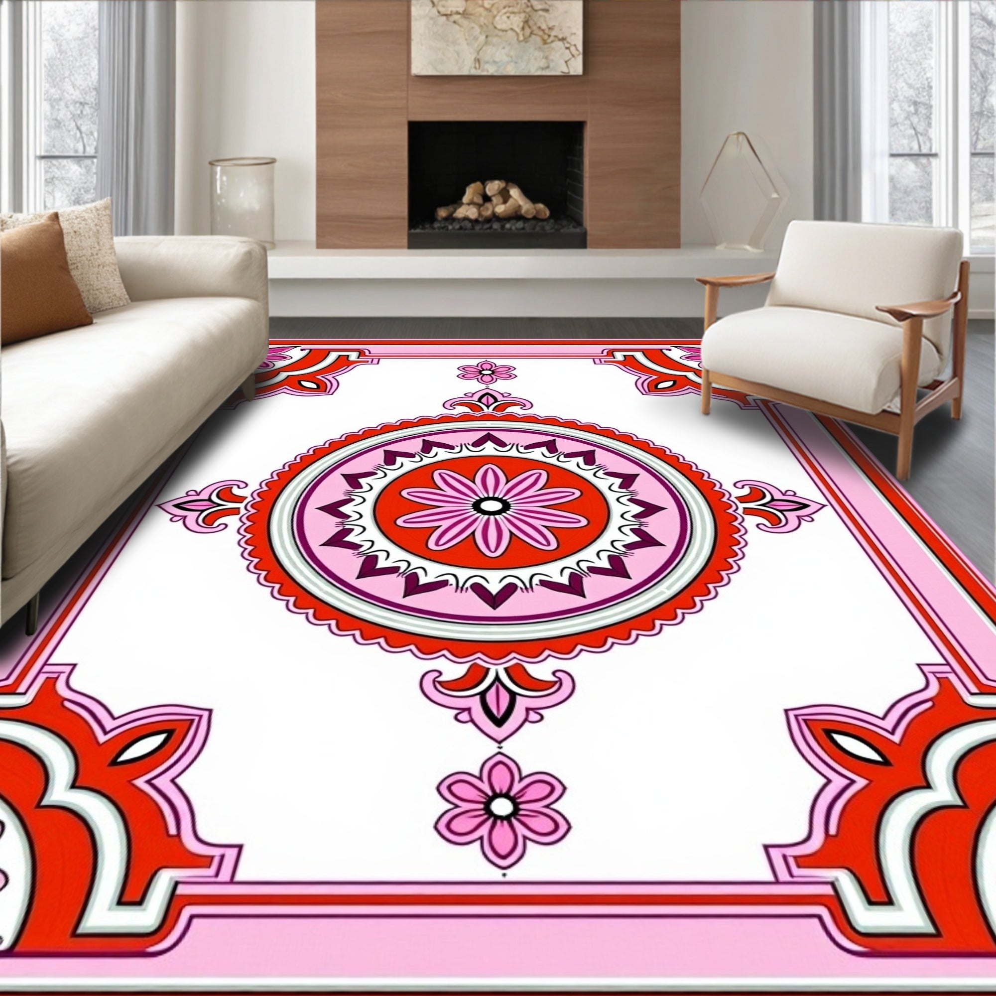 Ultra Soft Area Rug, Non Slip, Stain Resistant, Washable Area Rugs for Living Room, Bedroom, Enchanted Garden Medallion Symphony(Pink) Overview: