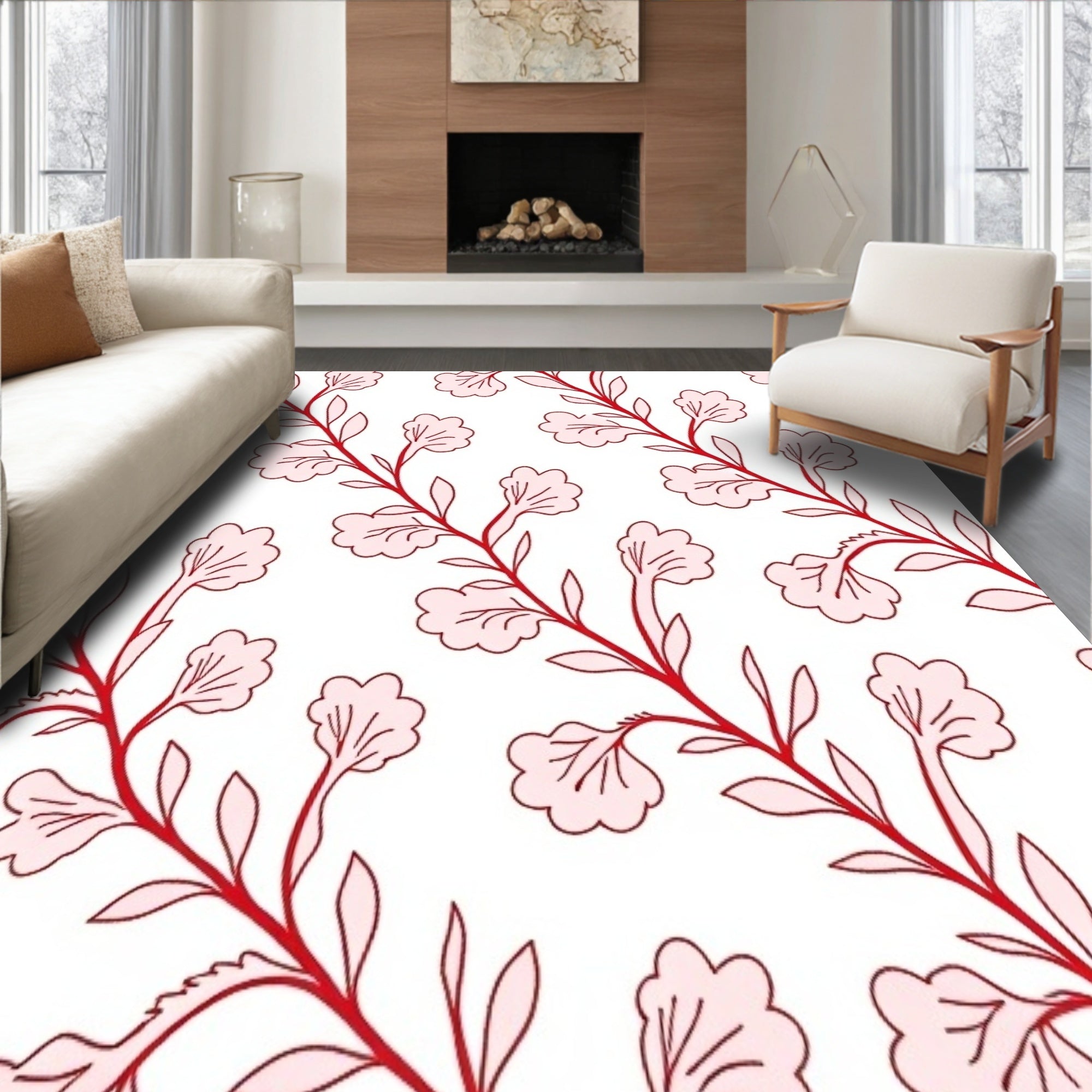 Ultra Soft Area Rug, Non Slip, Stain Resistant, Washable Area Rugs for Living Room, Bedroom, Enchanted Garden Path Exquisite(Pink) Overview:
