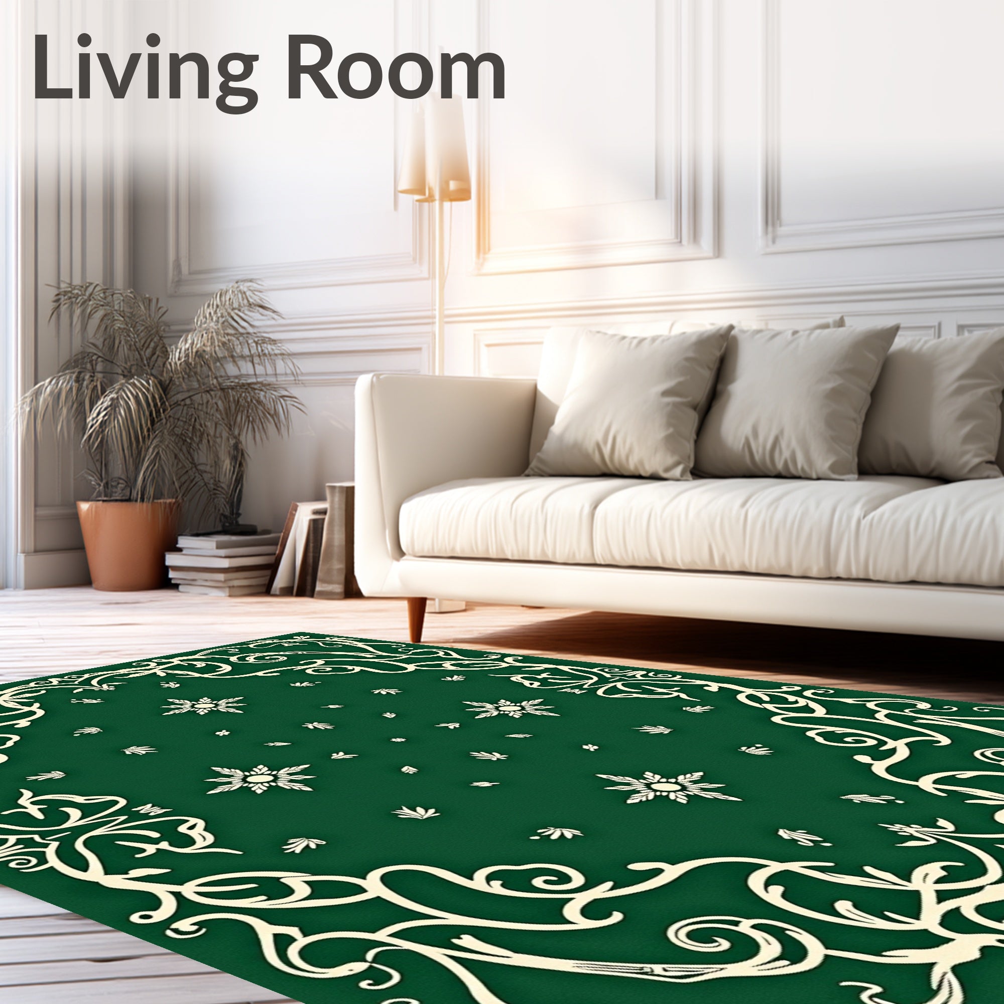 Ultra Soft Area Rug, Non Slip, Stain Resistant, Washable Area Rugs for Living Room, Bedroom, Enchanted Garden Vine Swirl Artistic Decorative(Green) Overview: