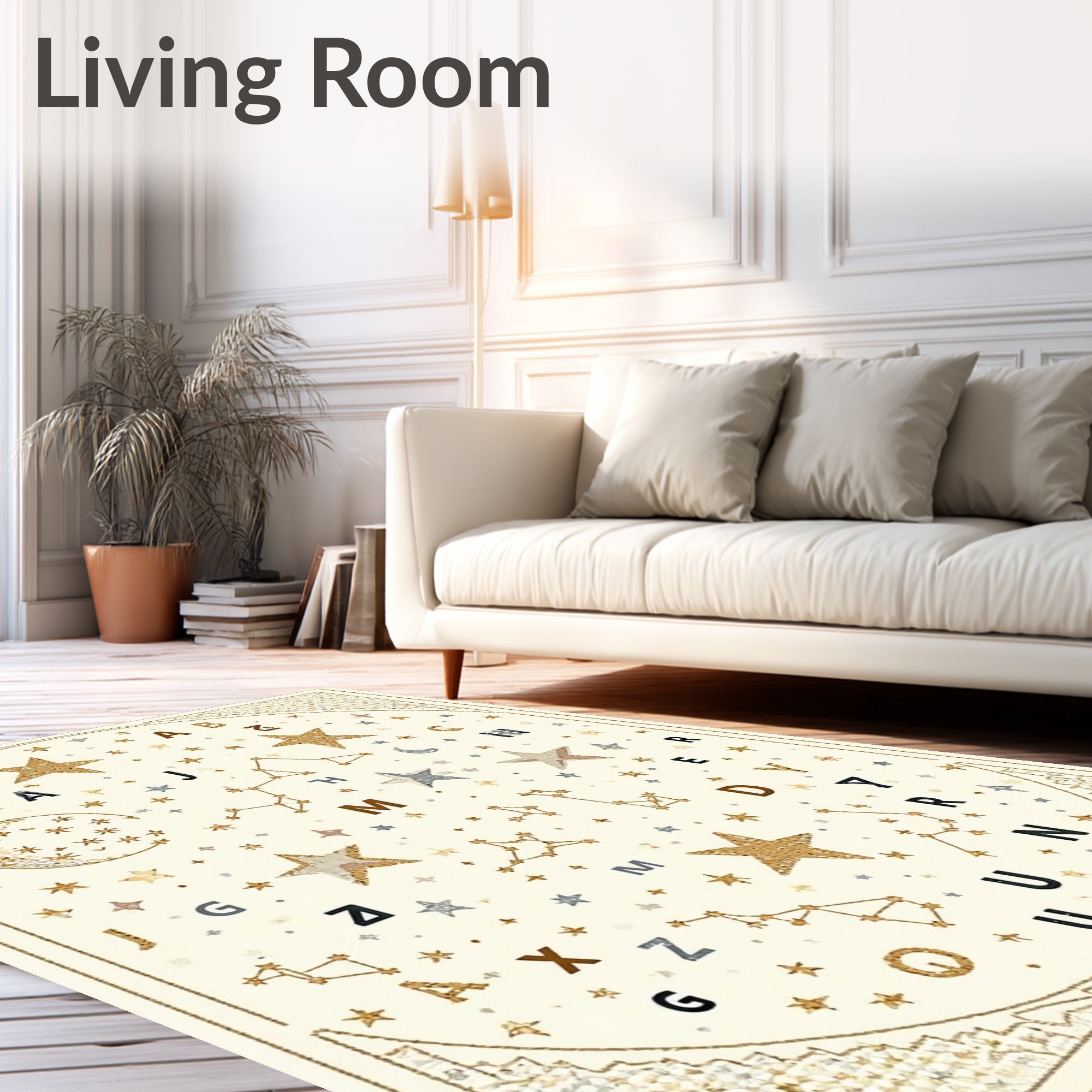 Ultra Soft Area Rug, Non Slip, Stain Resistant, Washable Area Rugs for Living Room, Bedroom, Enchanted Learning Circle Constellations ABC Design(Beige) Overview: