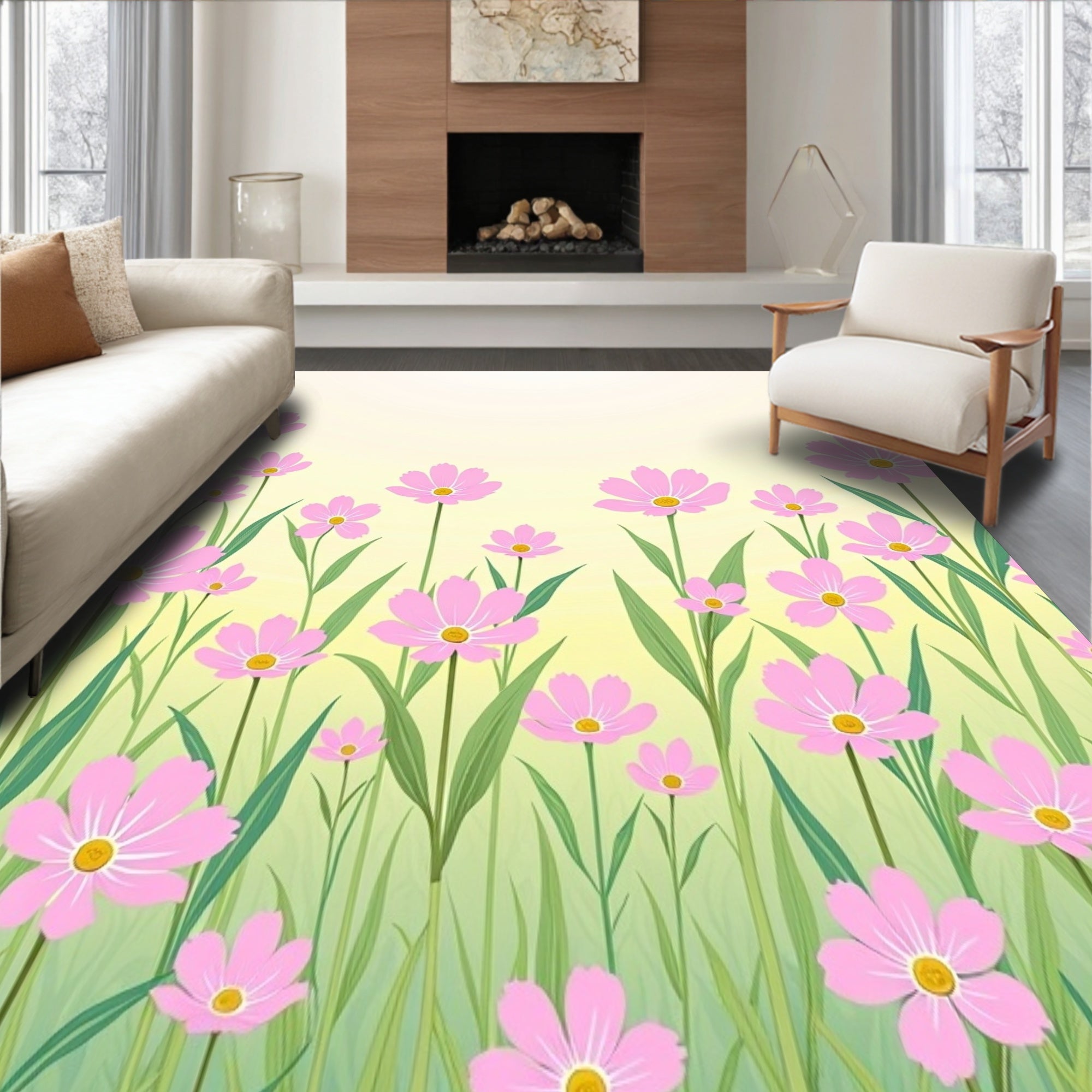 Ultra Soft Area Rug, Non Slip, Stain Resistant, Washable Area Rugs for Living Room, Bedroom, Enchanted Meadow Blossom Elegant Decorative Artwork(Pink) Overview: