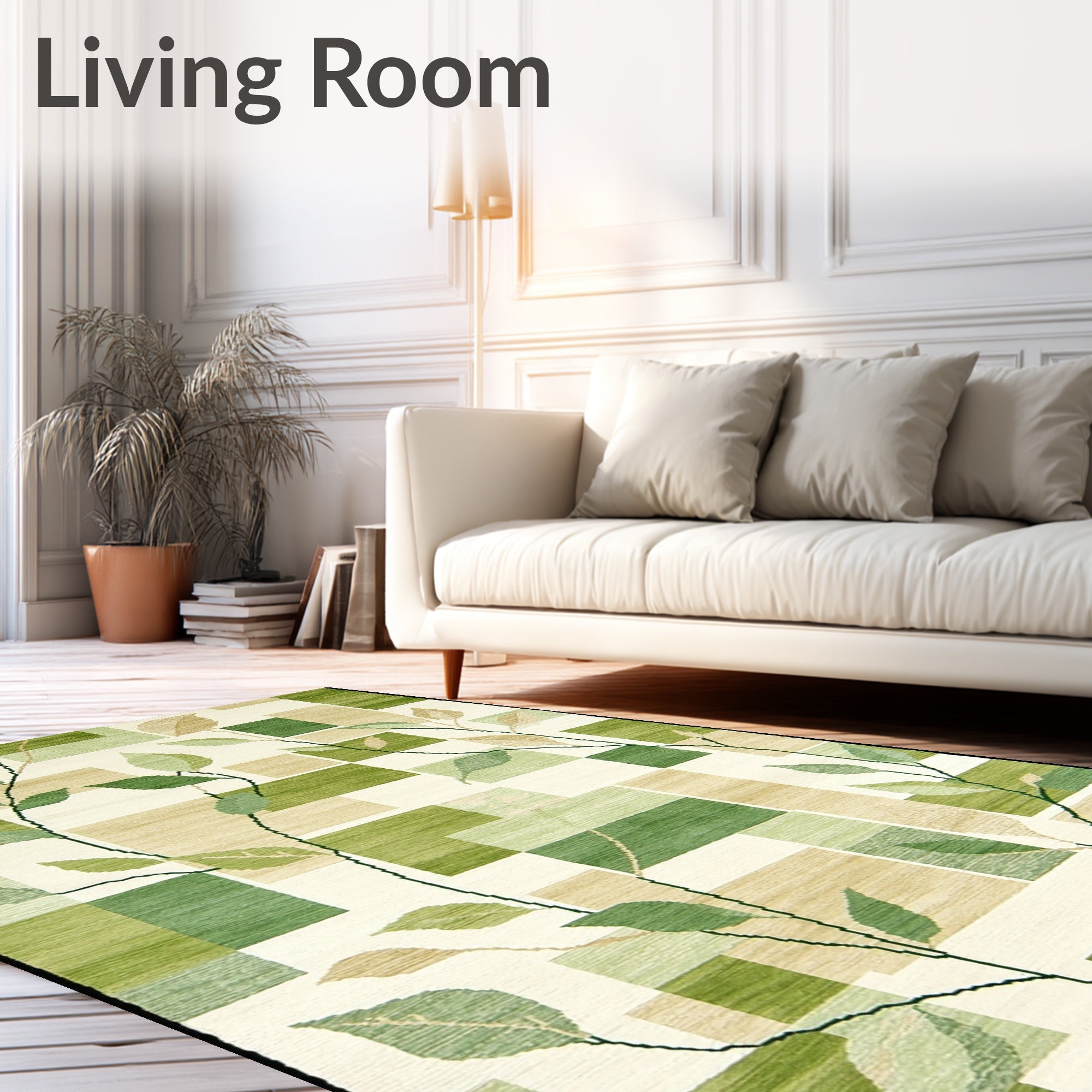 Ultra Soft Area Rug, Non Slip, Stain Resistant, Washable Area Rugs for Living Room, Bedroom, Enchanted Meadow Pathway Area with Modern Foliage Geometry(Green) Overview: