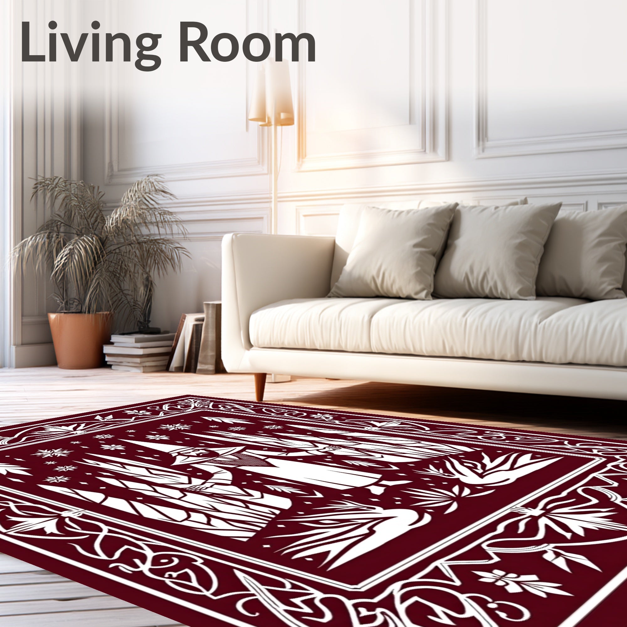 Ultra Soft Area Rug, Non Slip, Stain Resistant, Washable Area Rugs for Living Room, Bedroom, Enchanted Mythical Floor Displaying Icy Decorations(Red) Overview: