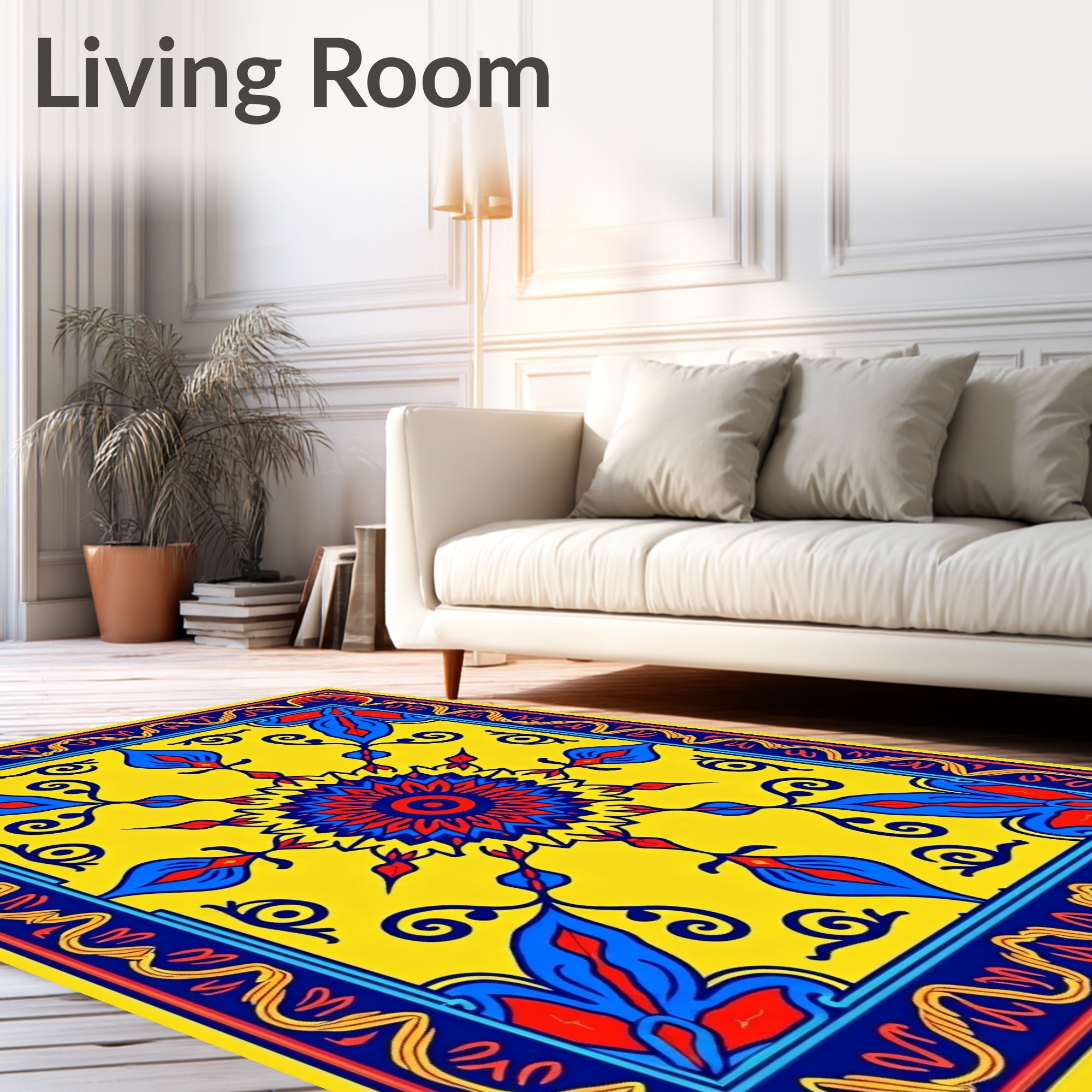 Flatwoven High Traffic Area Rug, Enchanted Paisley Whimsy Plush Underfoot Sanctuary Haven, Non Slip, Stain Resistant, Washable Area Rugs for Living Room, Bedroom (Yellow) Overview: