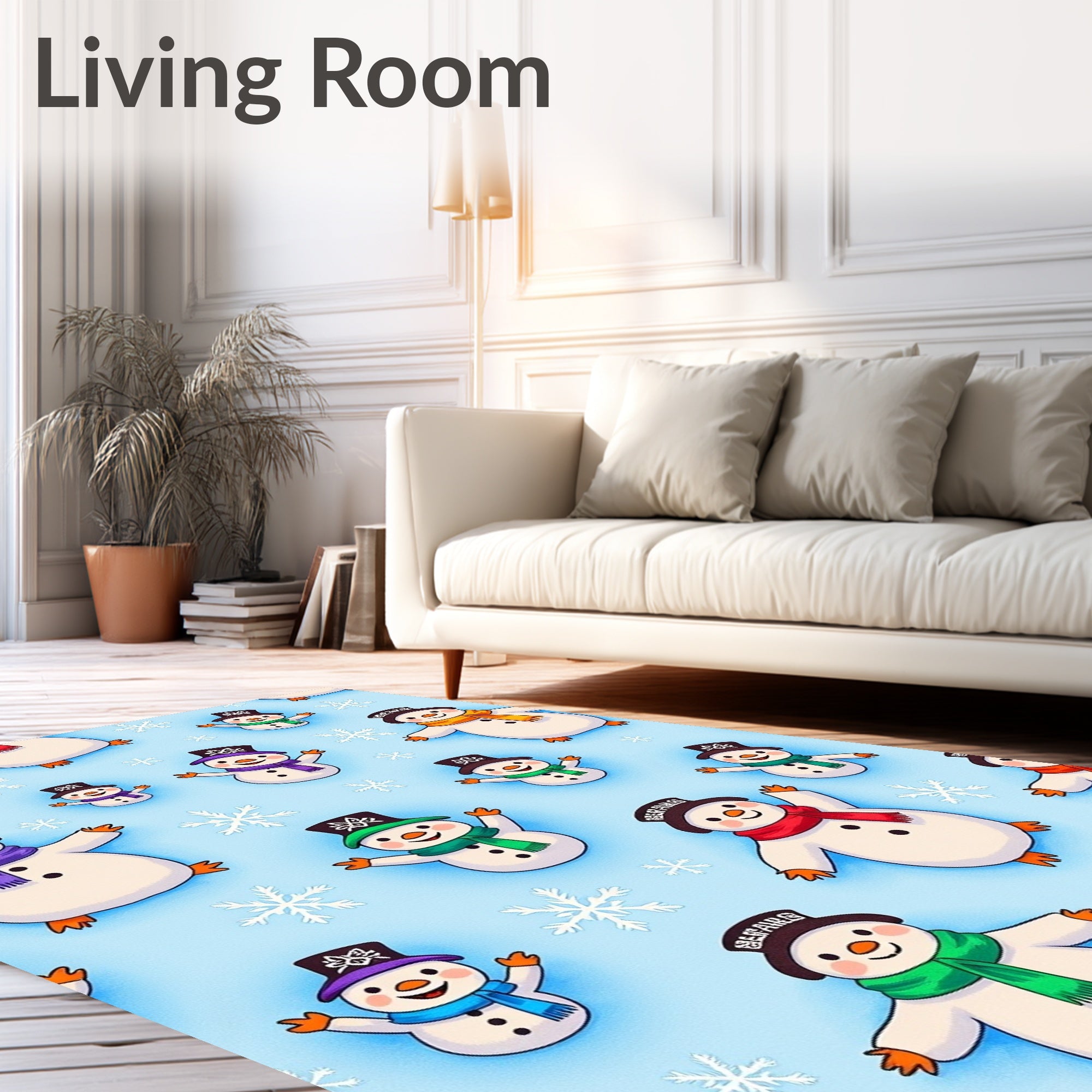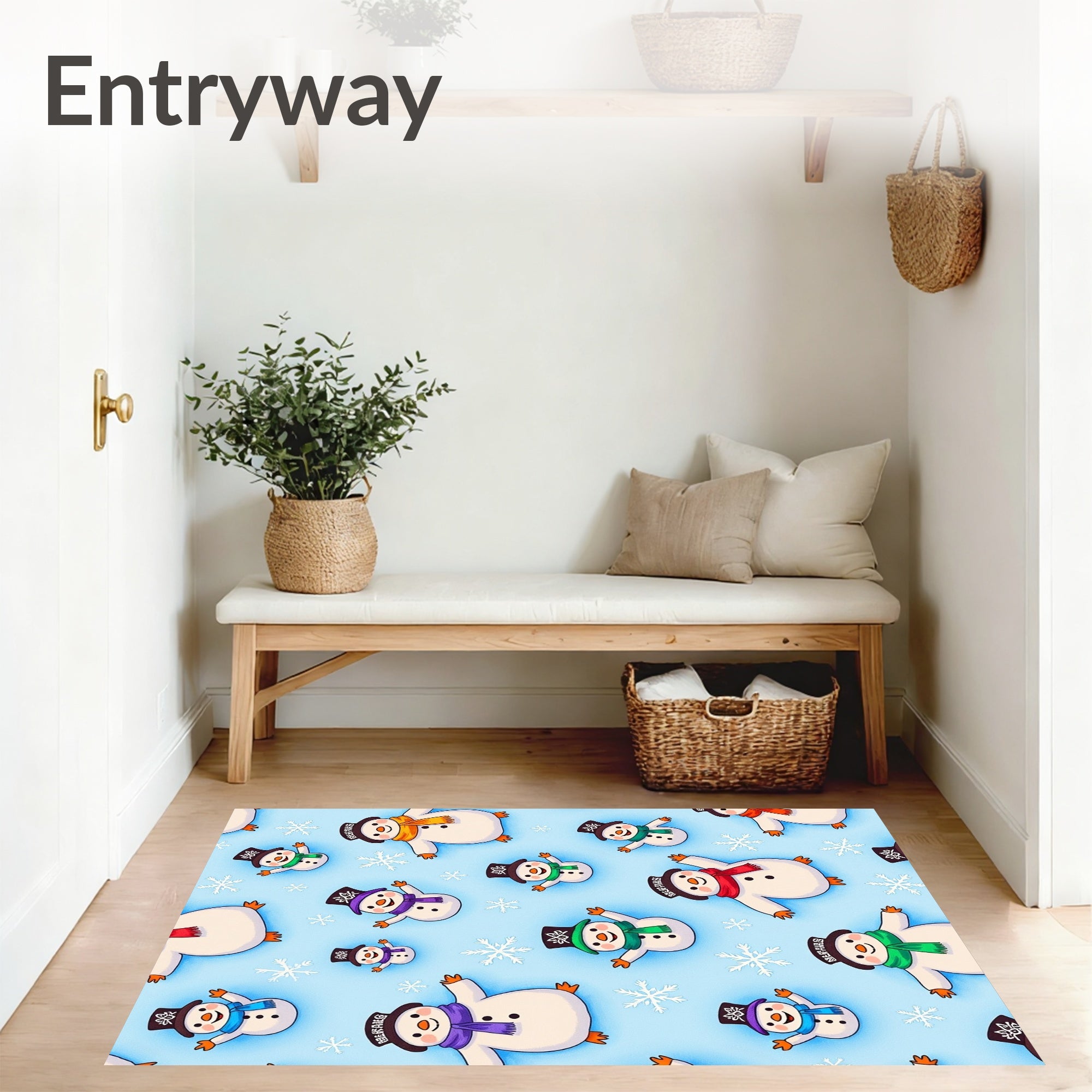 Flatwoven High Traffic Area Rug, Enchanted Snowman Jubilee Magical Frosty Winter Wonderland Celebration, Non Slip, Stain Resistant, Washable Area Rugs for Living Room, Bedroom (Blue) Overview: