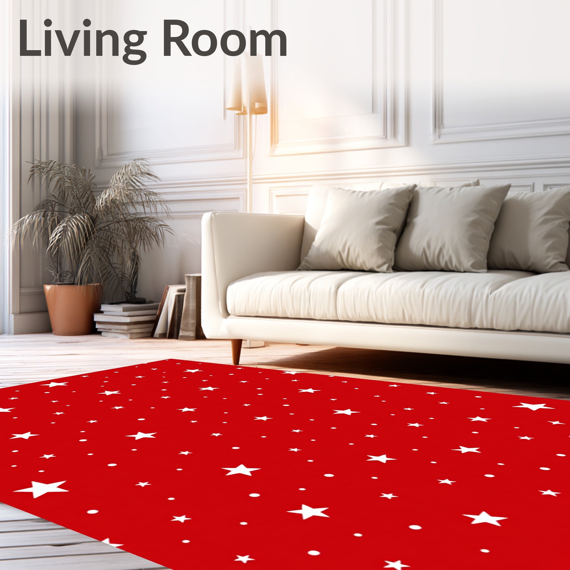 Ultra Soft Area Rug, Non Slip, Stain Resistant, Washable Area Rugs for Living Room, Bedroom, Enchanted Winter Wonderland Starlight(Red) Overview: