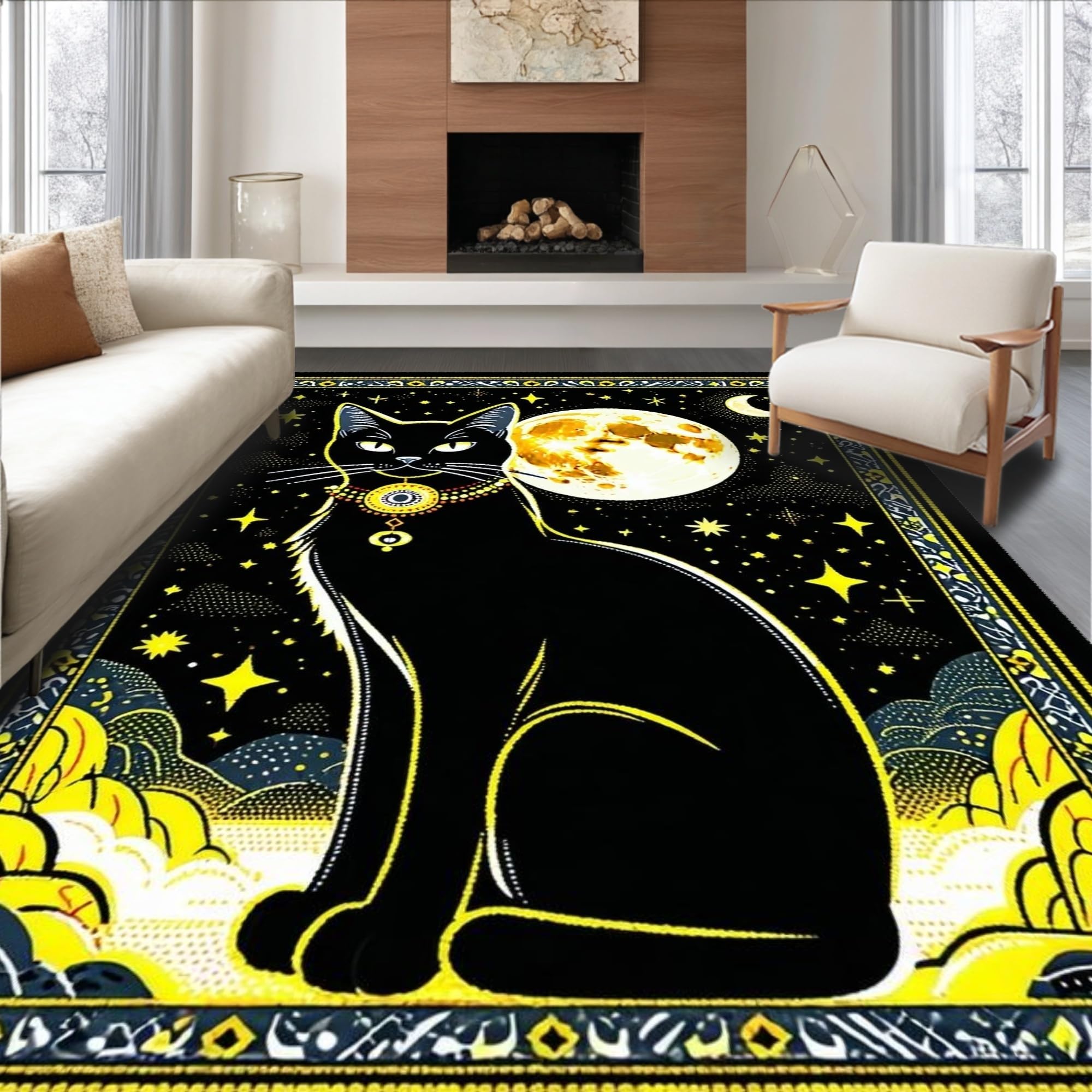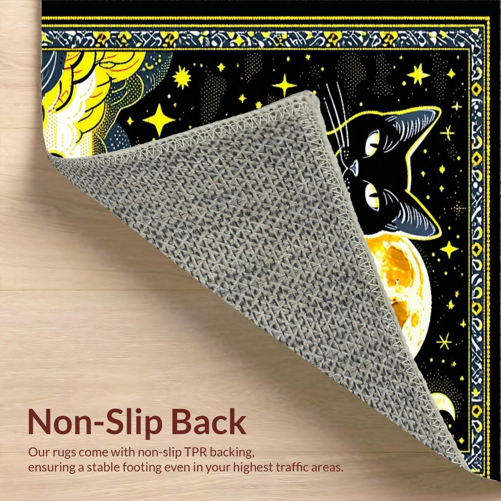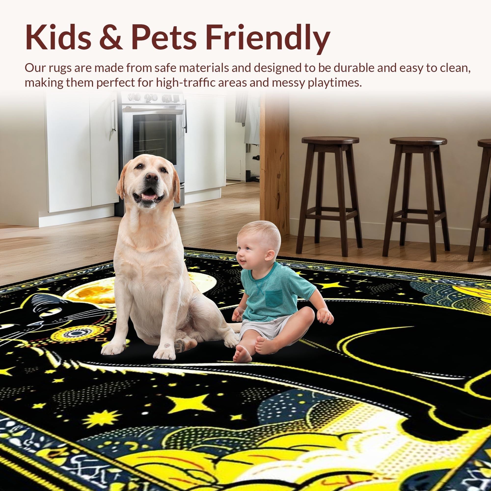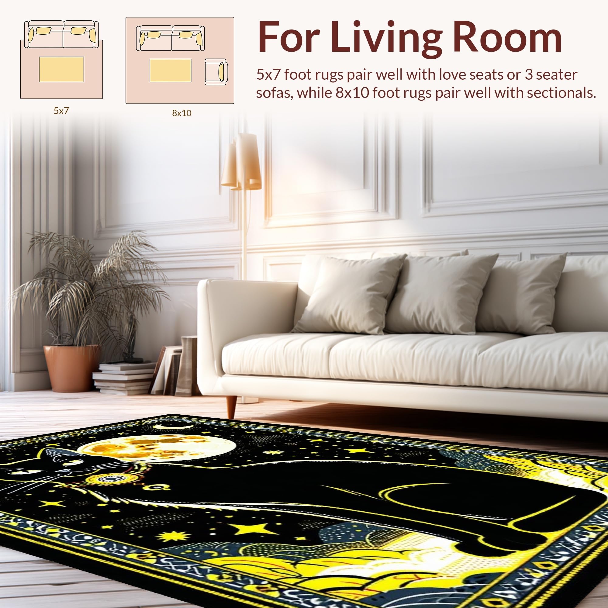 Ultra Soft Area Rug, Non Slip, Stain Resistant, Washable Area Rugs for Living Room, Bedroom, Enchanting Dark Green Fantasy Design(Black) Overview: