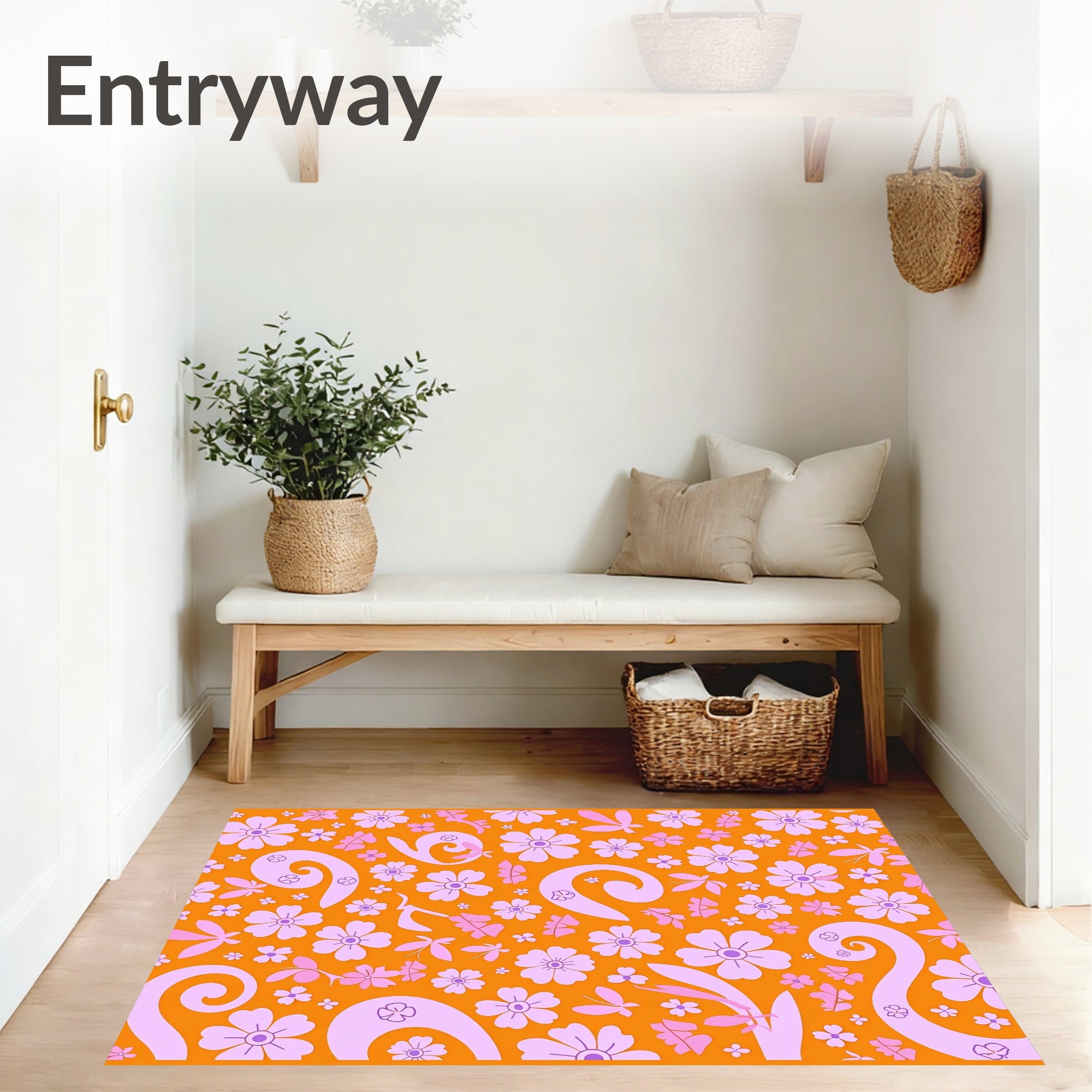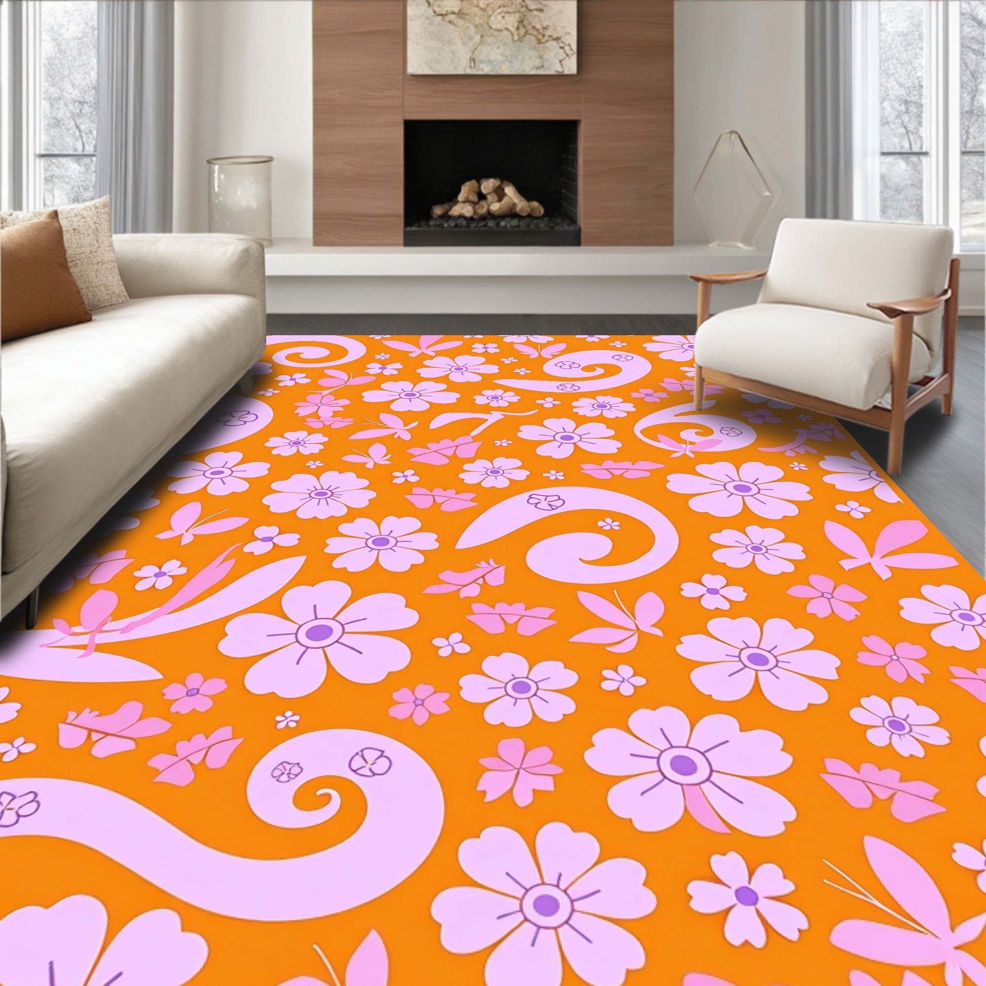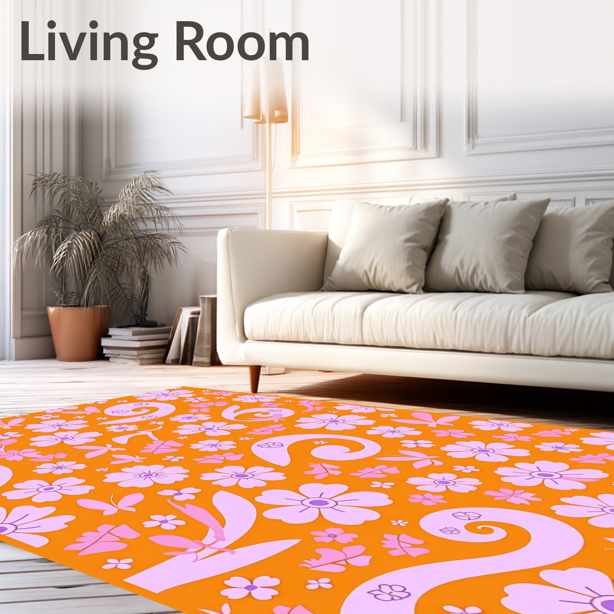 Flatwoven High Traffic Area Rug, Enchanting Fantasy with Elegant Petal Waves and Butterflies, Non Slip, Stain Resistant, Washable Area Rugs for Living Room, Bedroom (Orange) Overview: