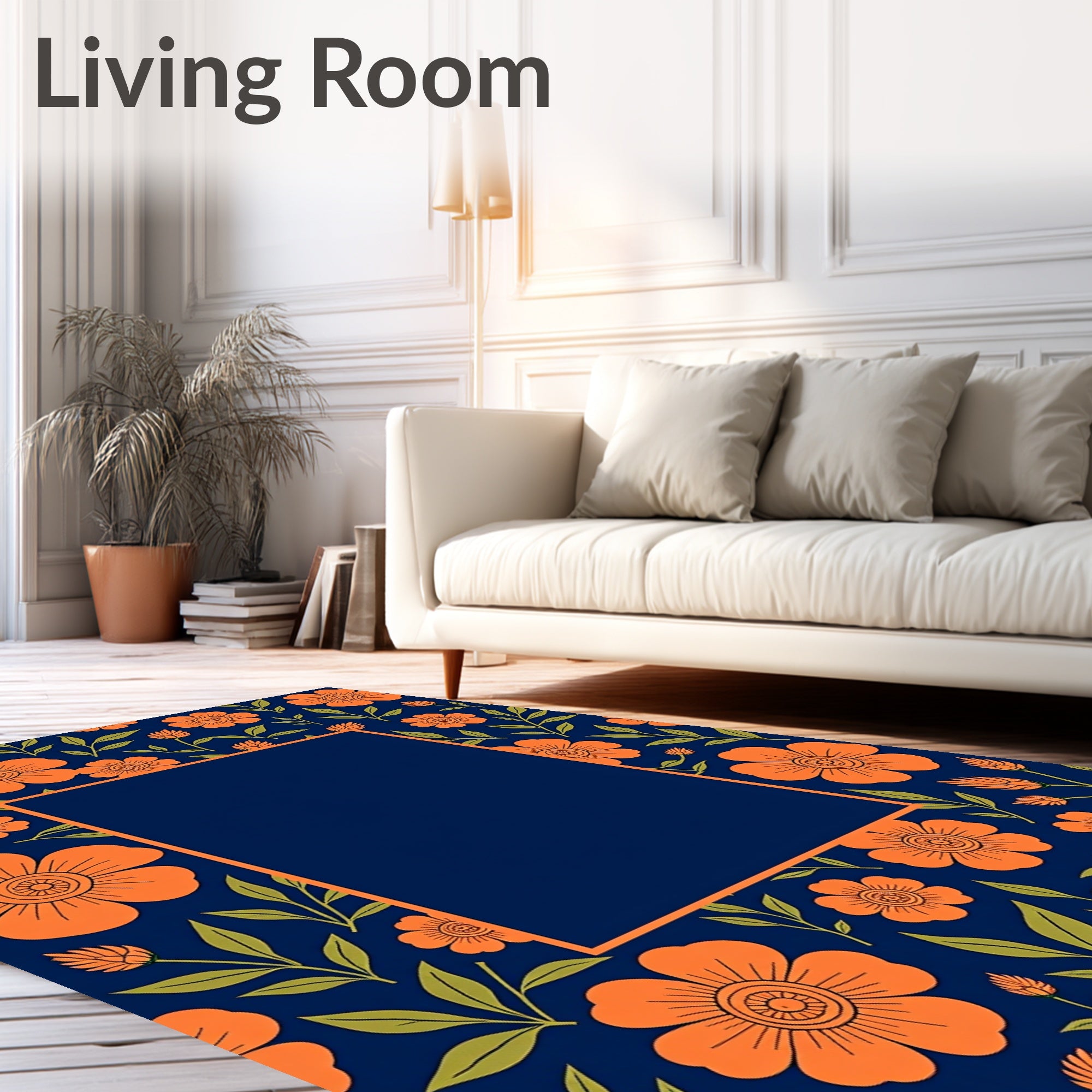 Flatwoven High Traffic Area Rug, Enchanting Floral Botanical Garden Blooming Dreamy, Non Slip, Stain Resistant, Washable Area Rugs for Living Room, Bedroom (Orange) Overview: