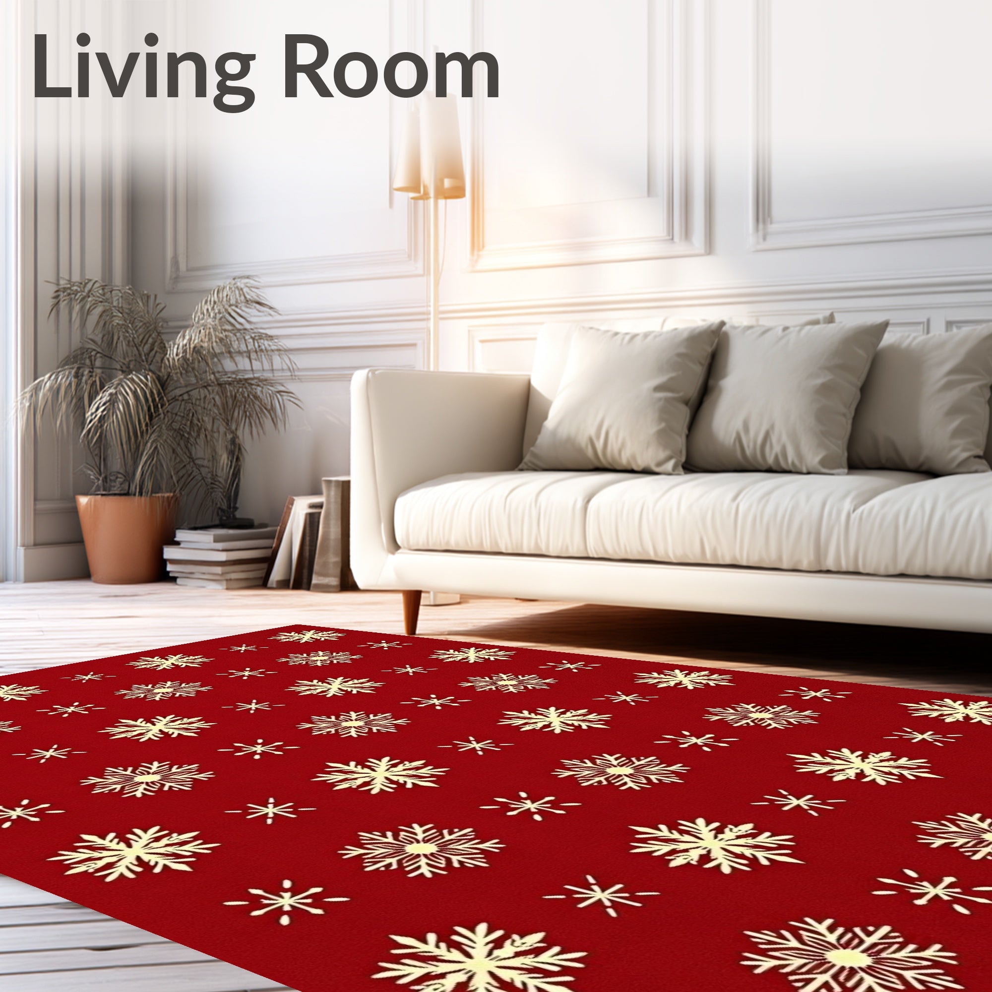 Ultra Soft Area Rug, Non Slip, Stain Resistant, Washable Area Rugs for Living Room, Bedroom, Enchanting Flurry Celebration Decorative Indoor Accent(Red) Overview: