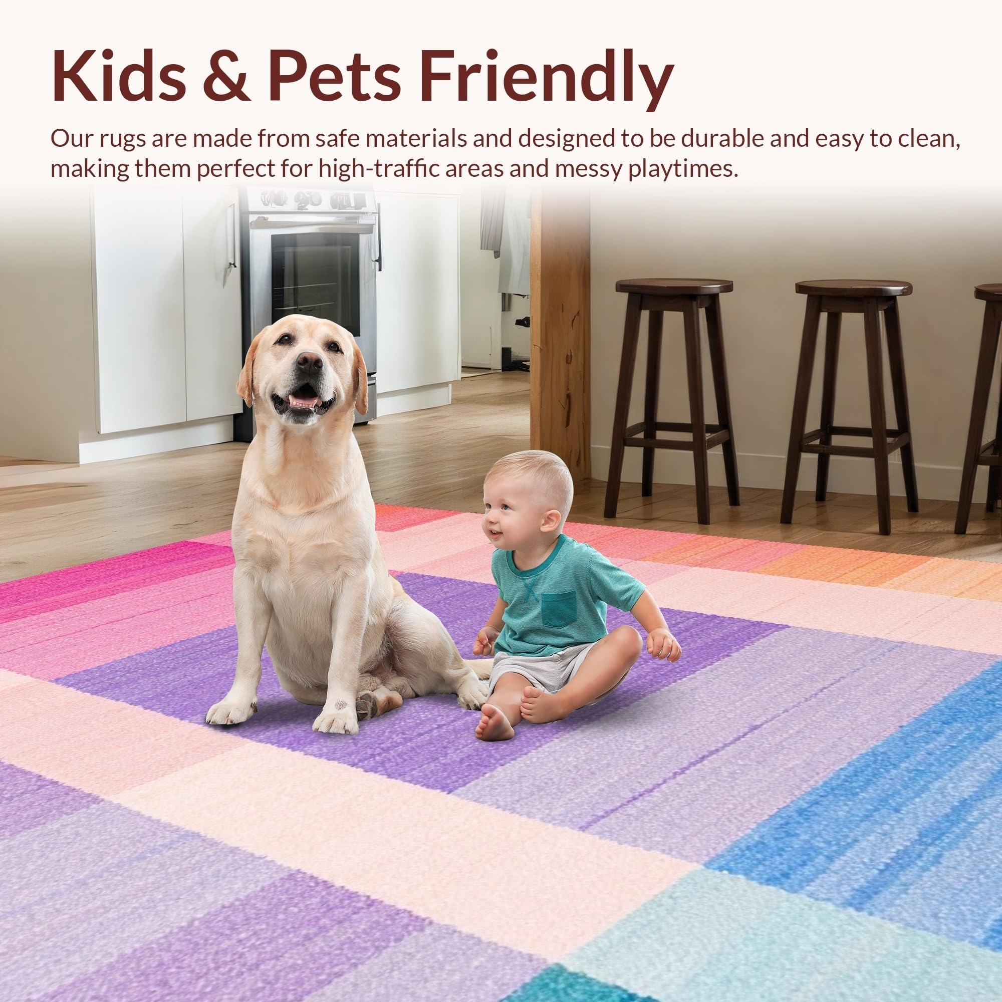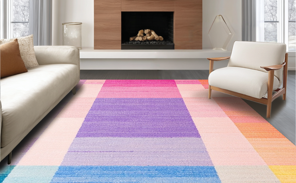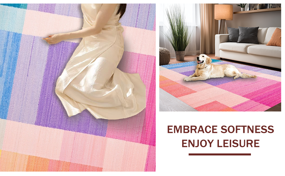 Ultra Soft Area Rug, Non Slip, Stain Resistant, Washable Area Rugs for Living Room, Bedroom, Enchanting Fuzzy Color Block Style(Pink) Overview:
