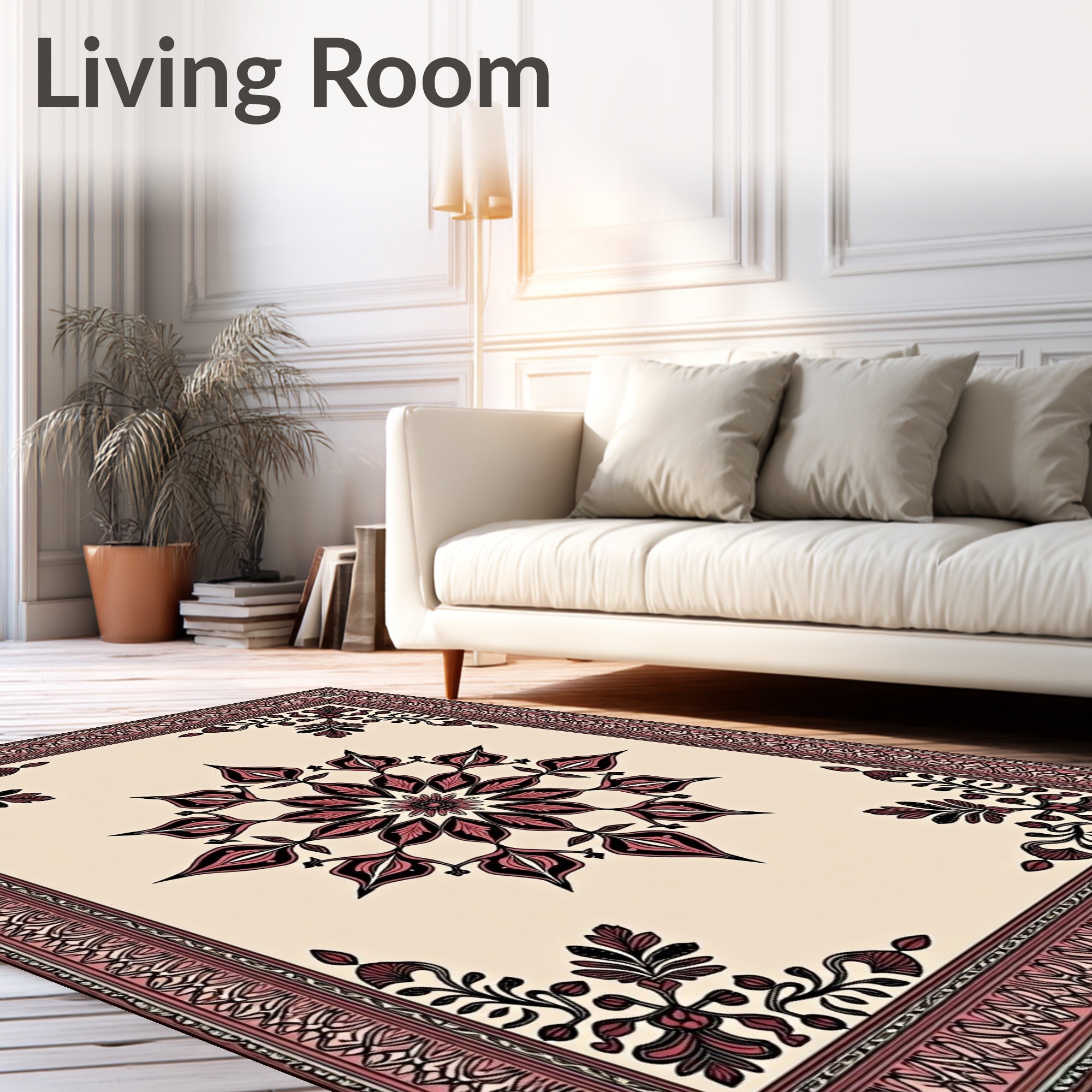 Flatwoven High Traffic Area Rug, Enchanting Kaleidoscope Botanical Tapestry, Non Slip, Stain Resistant, Washable Area Rugs for Living Room, Bedroom (Beige) Overview: