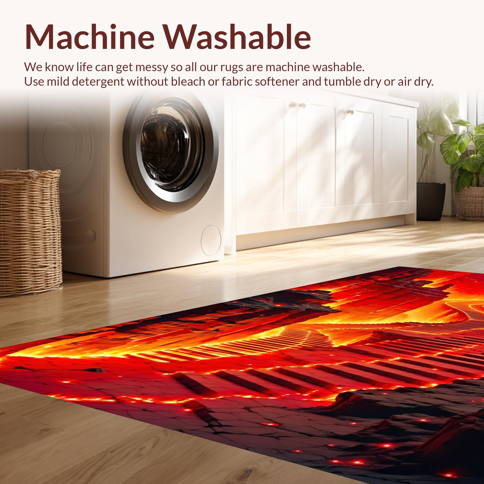 - Machine Washable: Our rugs can be easily thrown in the wash machine.