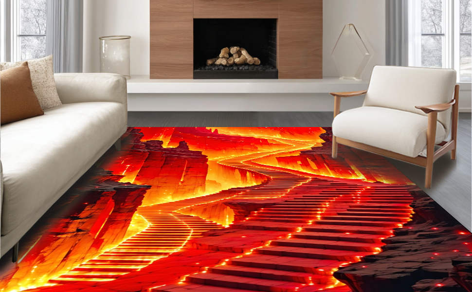 Ultra Soft Area Rug, Non Slip, Stain Resistant, Washable Area Rugs for Living Room, Bedroom, Enchanting Kids' Adventure Motif(Red) Overview: