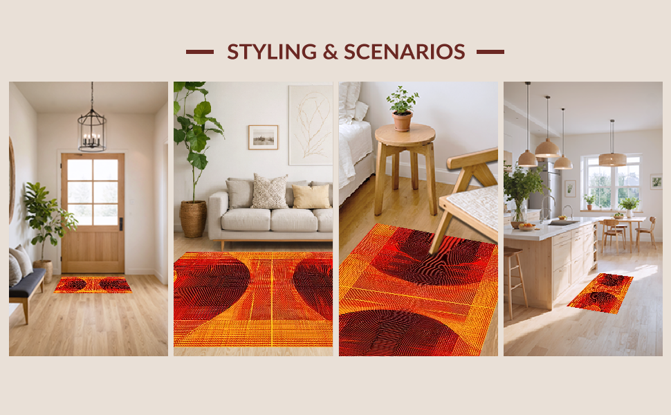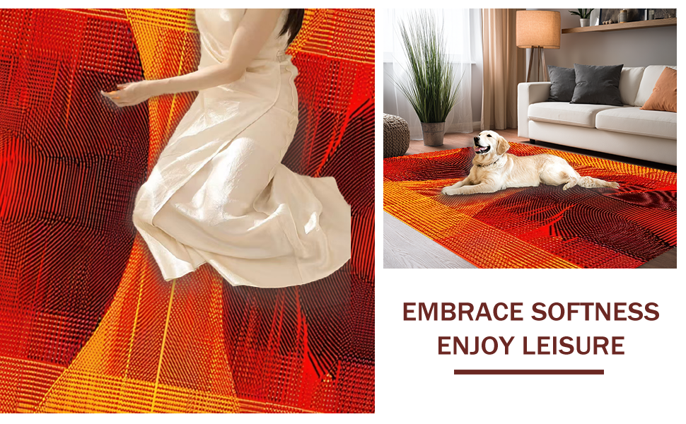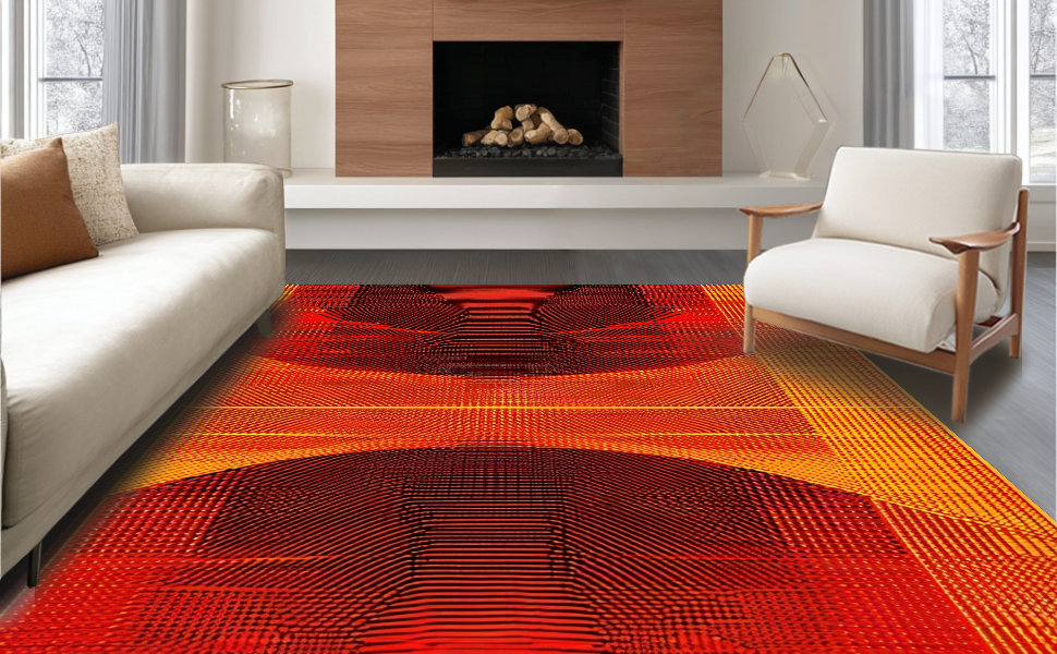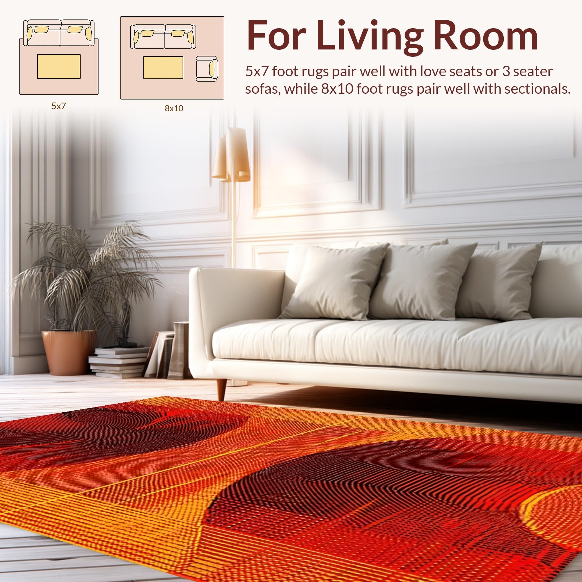 Ultra Soft Area Rug, Non Slip, Stain Resistant, Washable Area Rugs for Living Room, Bedroom, Enchanting Lava-Inspired Aesthetic(Red) Overview: