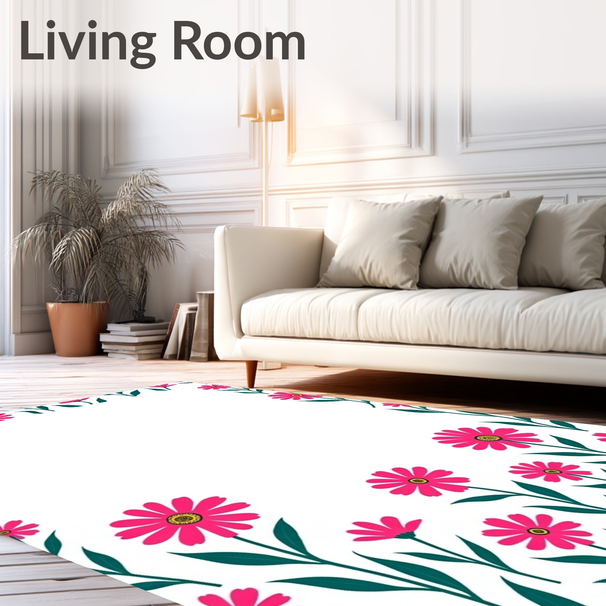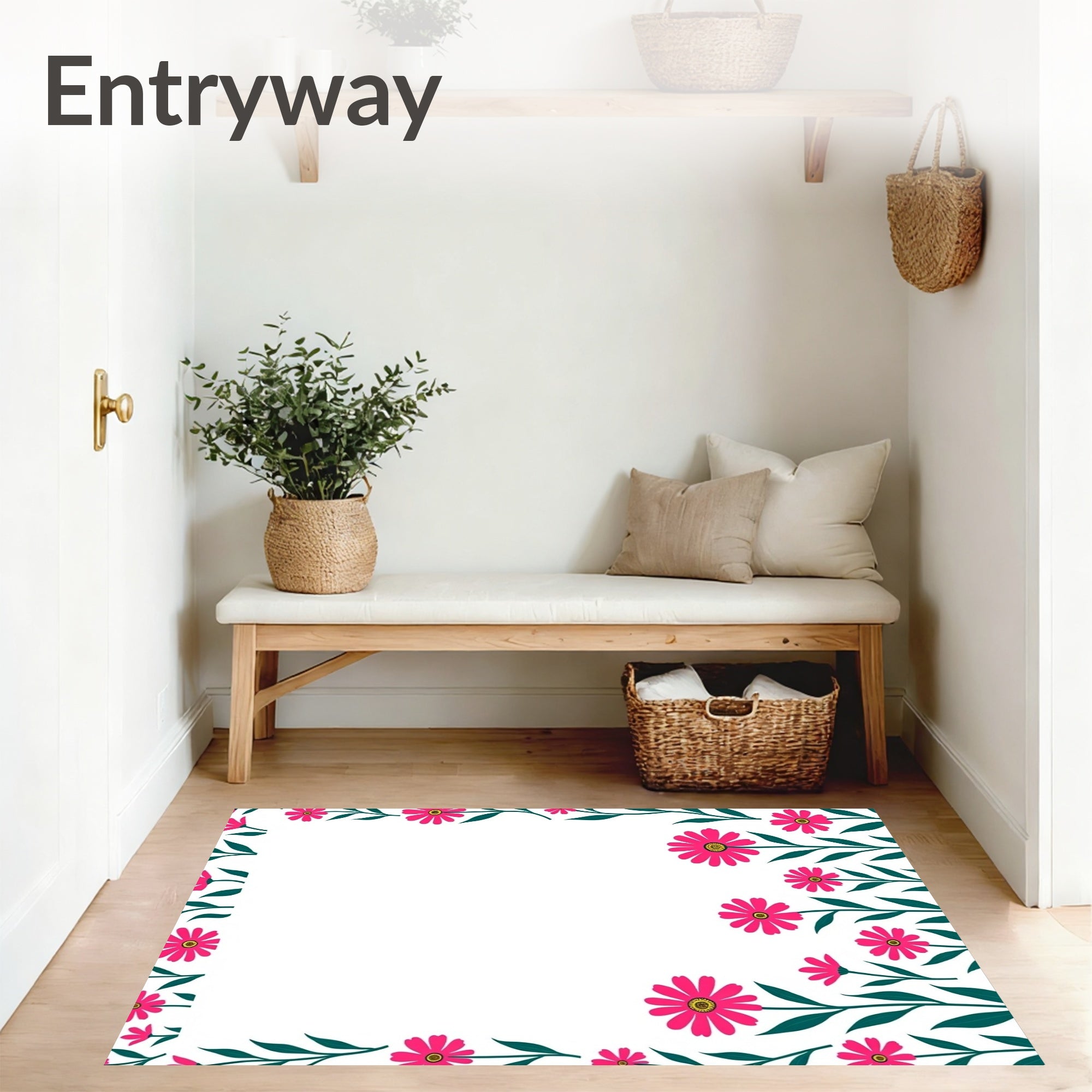 Flatwoven High Traffic Area Rug, Enchanting Meadow Botanical Symmetrical Fade Resistant Decorative, Non Slip, Stain Resistant, Washable Area Rugs for Living Room, Bedroom (Pink) Overview: