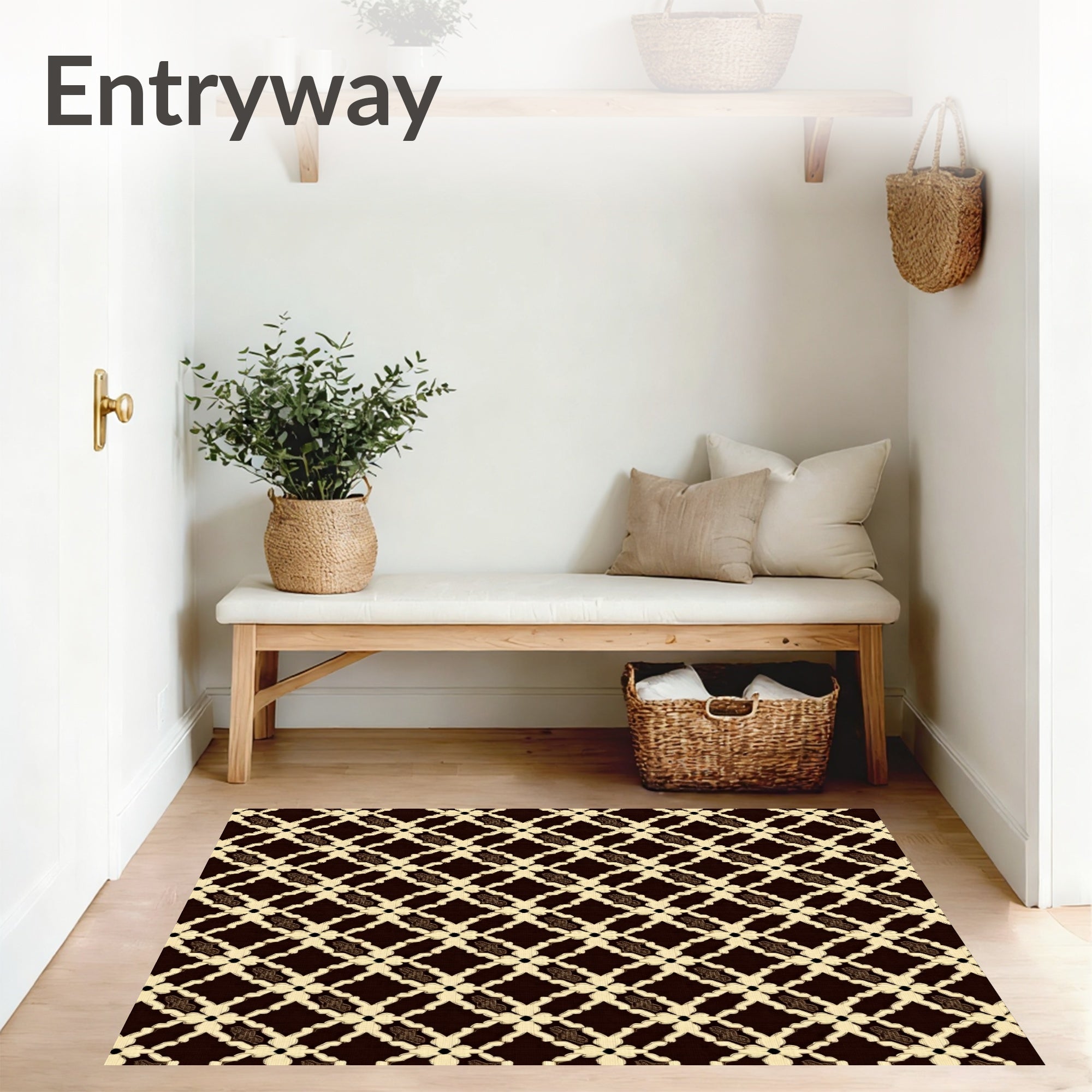 Flatwoven High Traffic Area Rug, Enchanting Mosaic Lattice Artistic, Non Slip, Stain Resistant, Washable Area Rugs for Living Room, Bedroom (Brown) Overview: