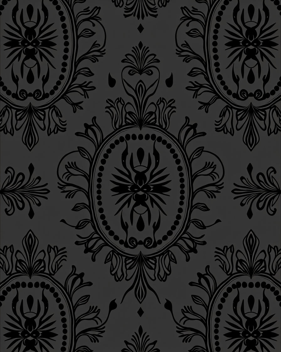 Enchanting Paisley Botanical Curvy Floral Damask(Black)