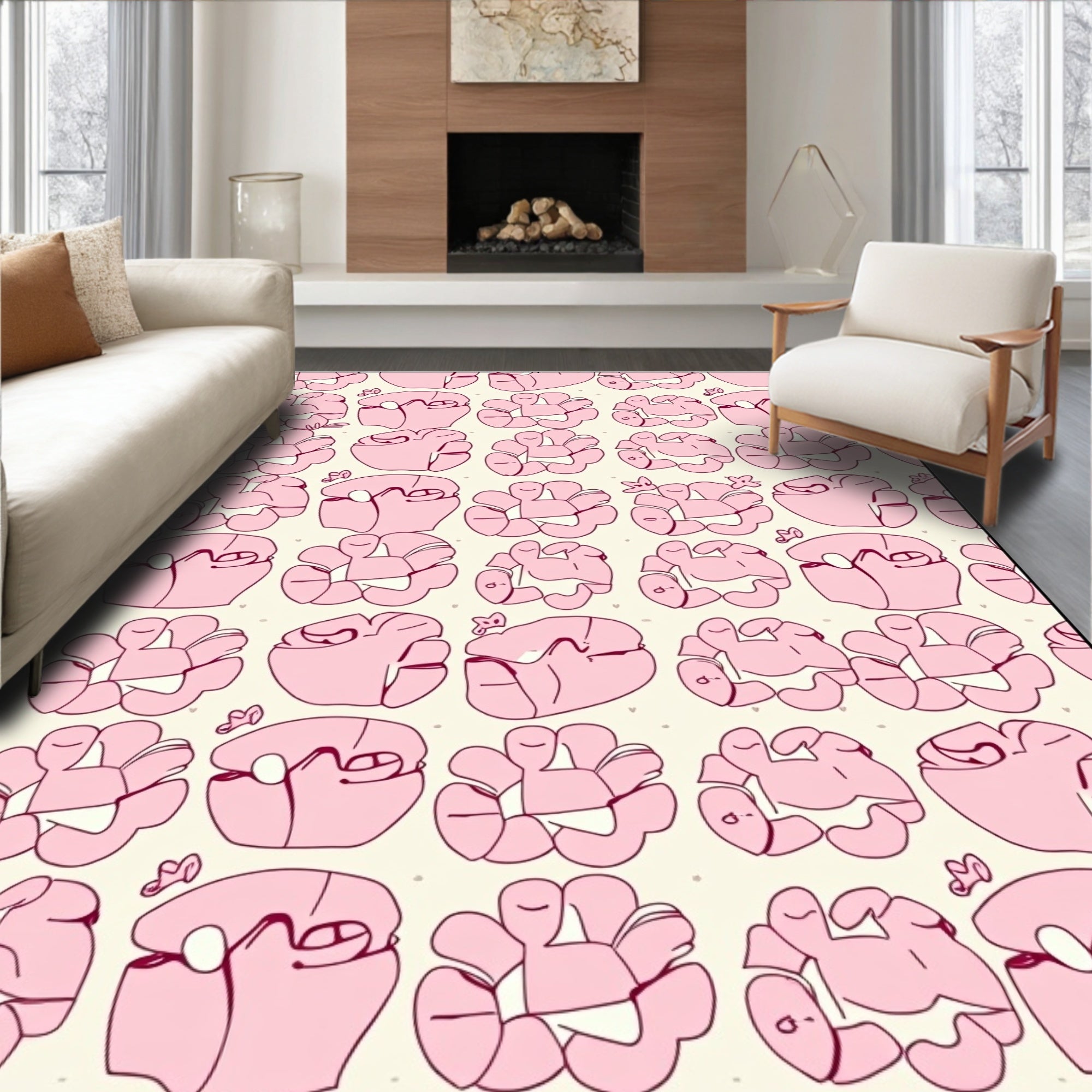 Flatwoven High Traffic Area Rug, Enchanting Paw Print Cashmere Accent Featuring Cute Whiskers, Non Slip, Stain Resistant, Washable Area Rugs for Living Room, Bedroom (Pink) Overview: