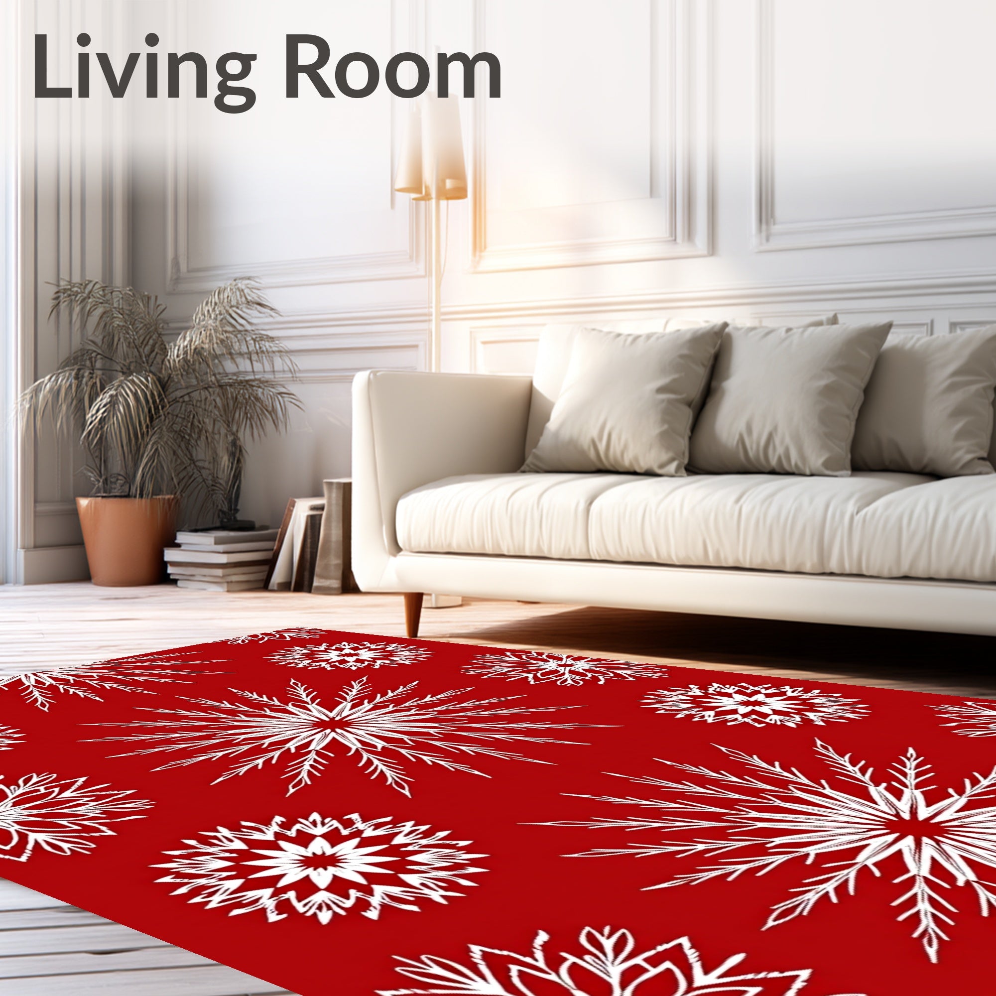 Ultra Soft Area Rug, Non Slip, Stain Resistant, Washable Area Rugs for Living Room, Bedroom, Enchanting Snowflake Winter Wonderland Festive Holiday Accent(Red) Overview: