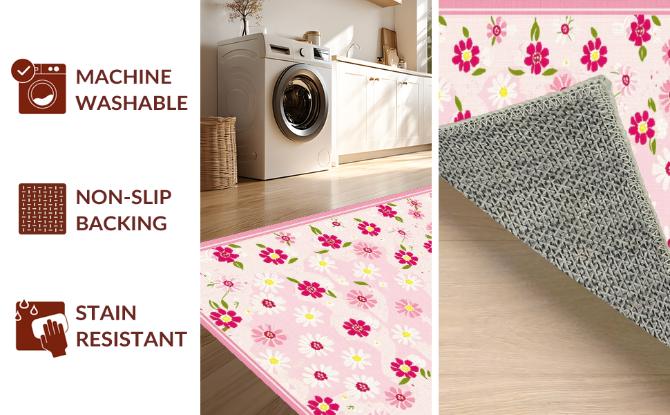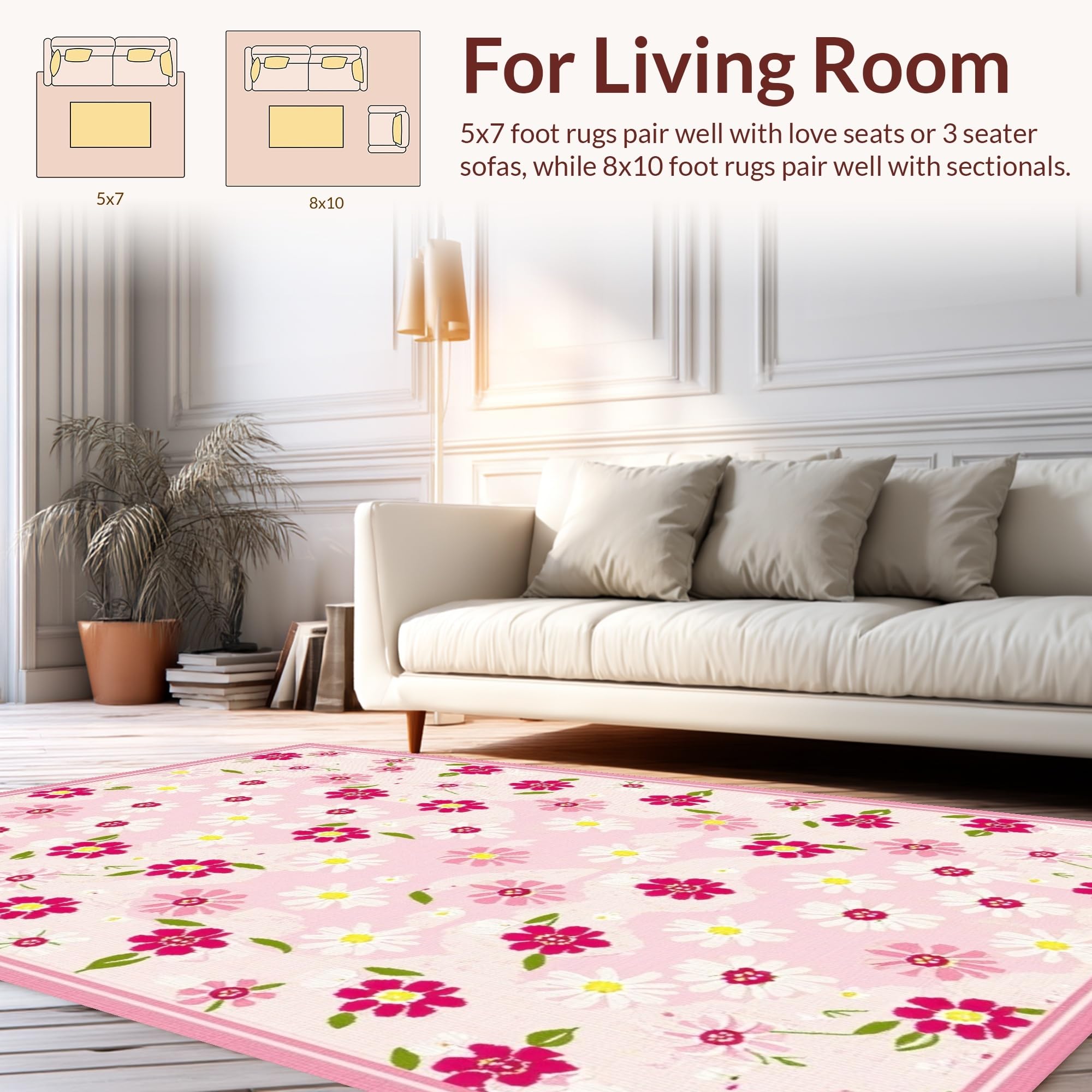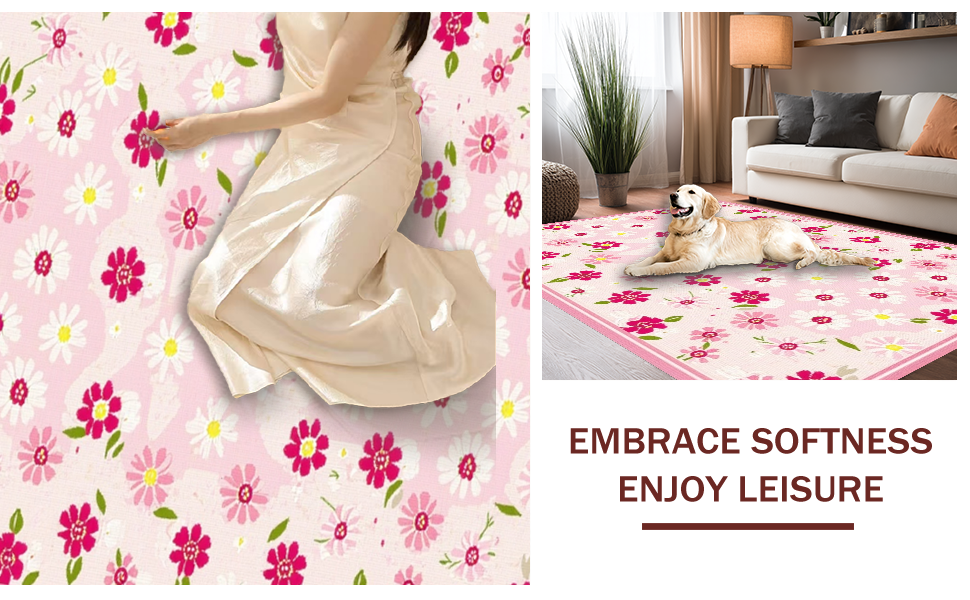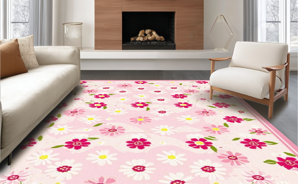 Ultra Soft Area Rug, Non Slip, Stain Resistant, Washable Area Rugs for Living Room, Bedroom, Enchanting Soft-Hued Floral Design(Pink) Overview: