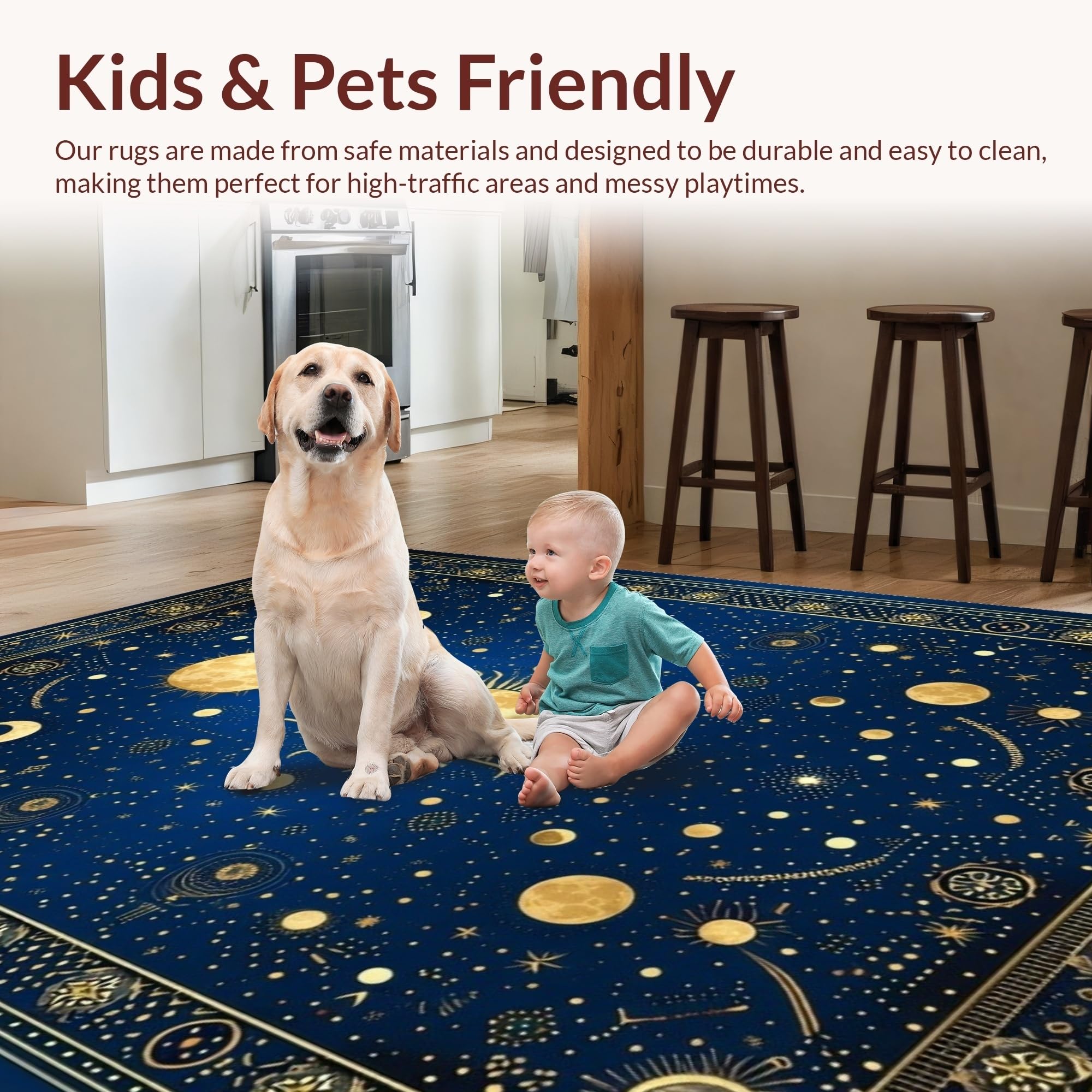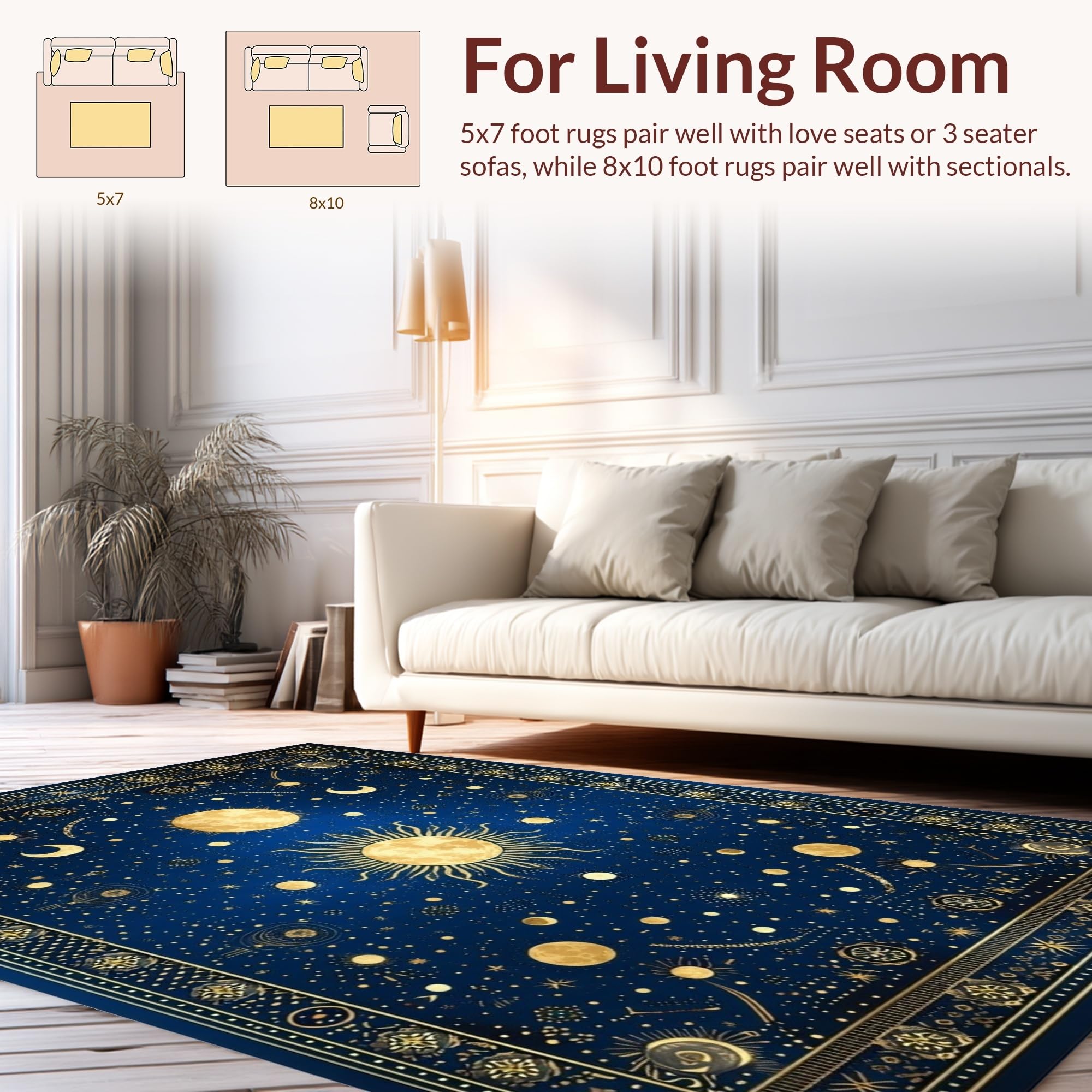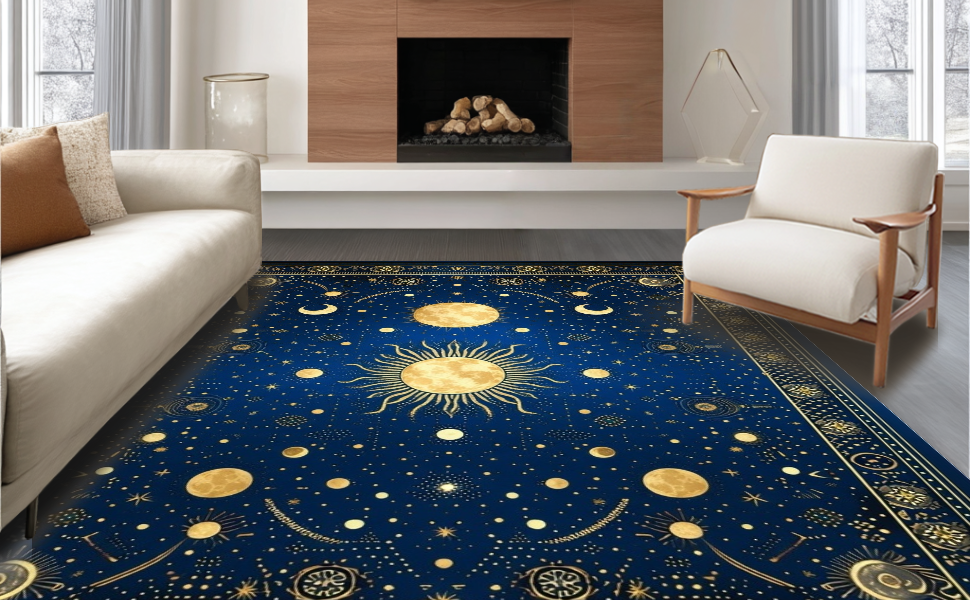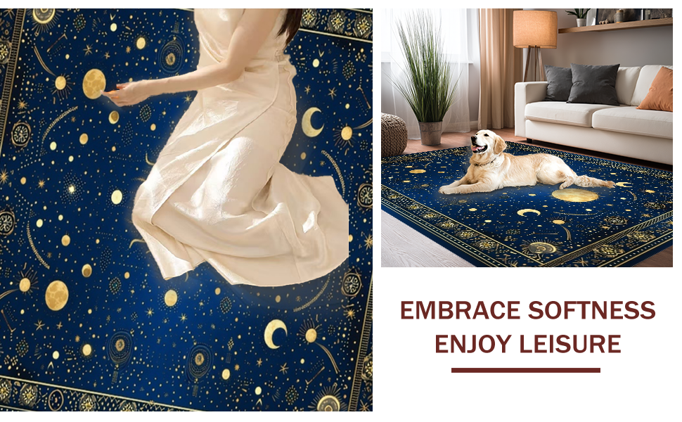 Ultra Soft Area Rug, Non Slip, Stain Resistant, Washable Area Rugs for Living Room, Bedroom, Enchanting Stellar Radiance Style(Blue) Overview: