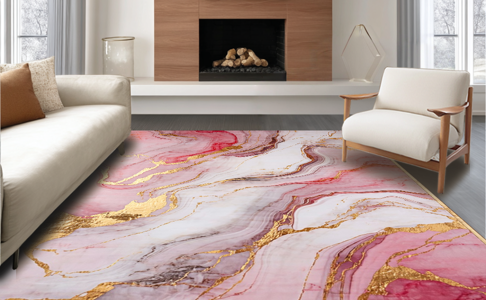 Ultra Soft Area Rug, Non Slip, Stain Resistant, Washable Area Rugs for Living Room, Bedroom, Enchanting Textured Fur Appeal(Pink) Overview: