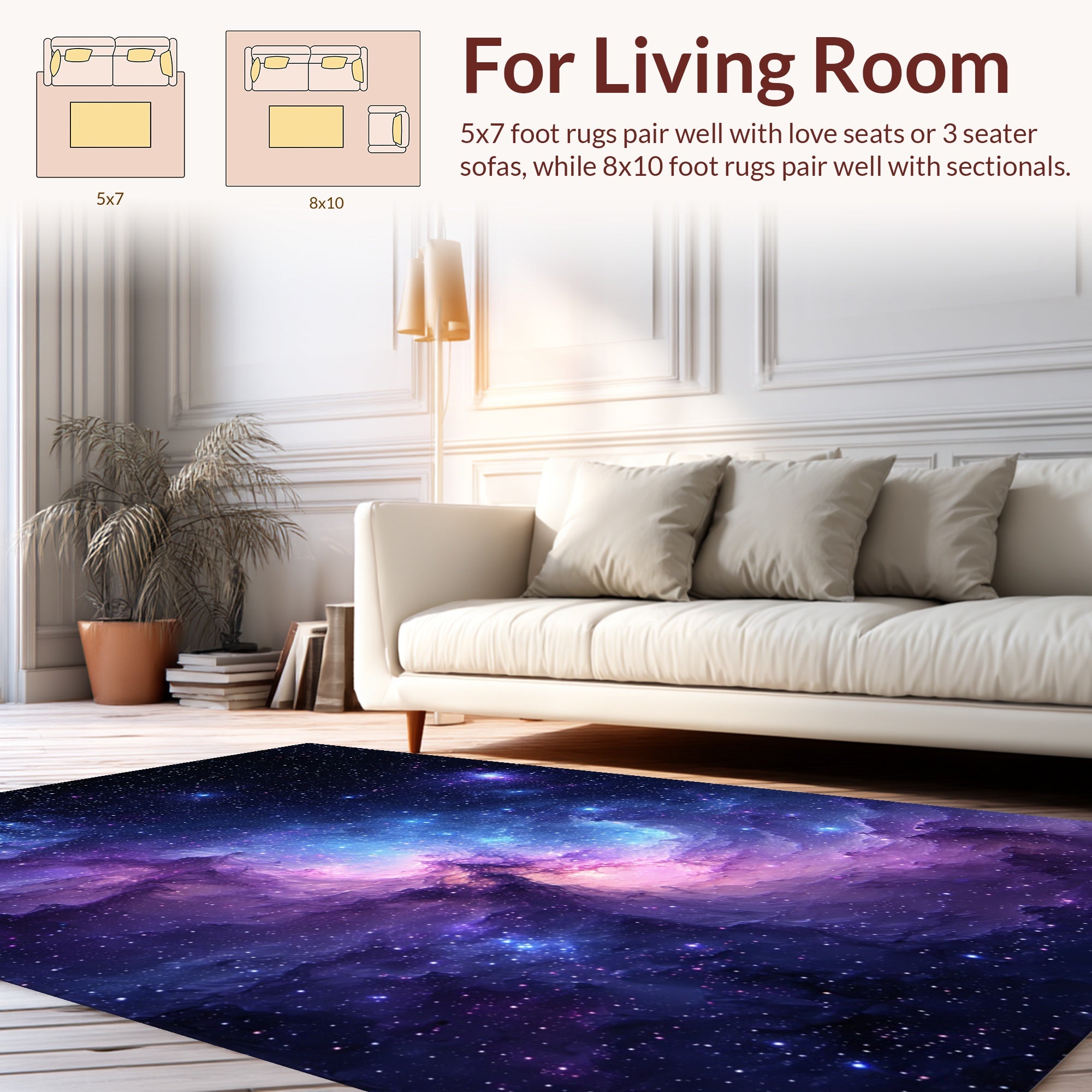 Flatwoven High Traffic Area Rug, Enchanting Galaxy Motif, Non Slip, Stain Resistant, Washable Area Rugs for Living Room, Bedroom (Purple) Overview: