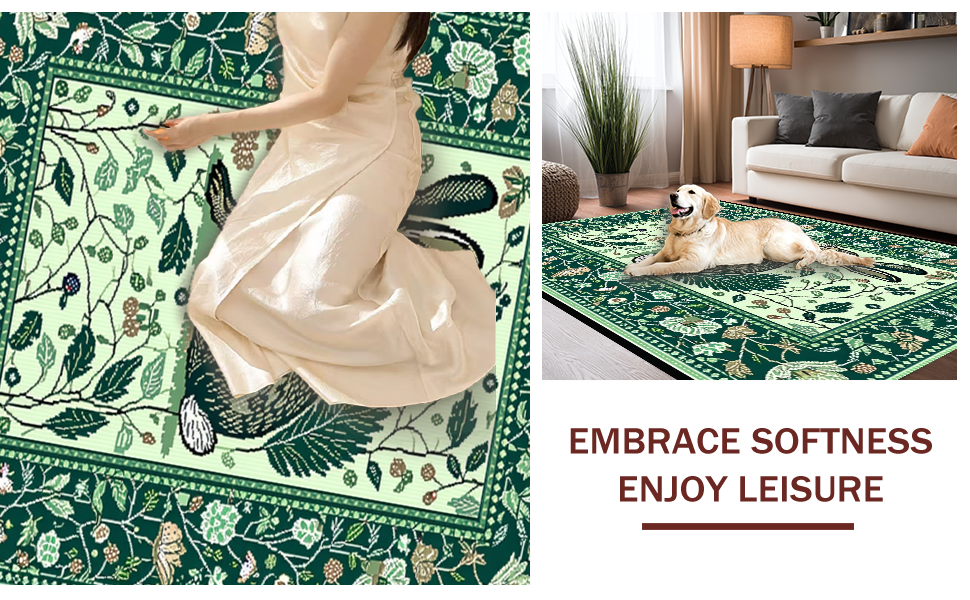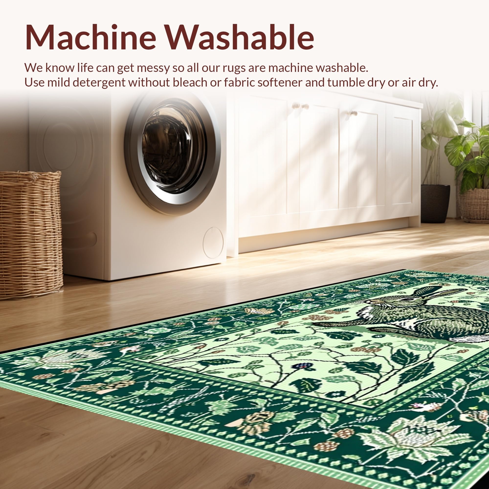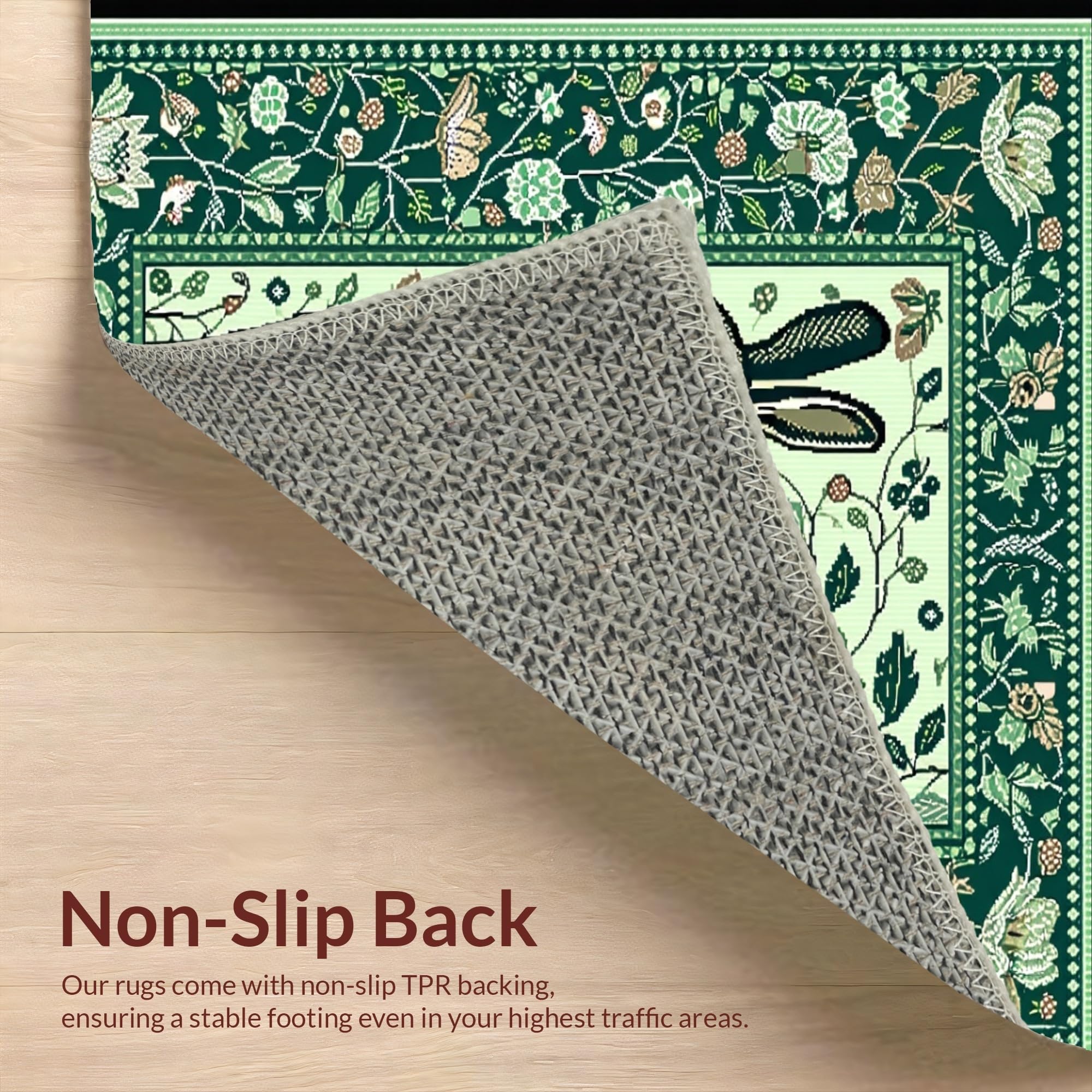 Ultra Soft Area Rug, Non Slip, Stain Resistant, Washable Area Rugs for Living Room, Bedroom, Enchanting Vintage Nature Composition(Green) Overview: