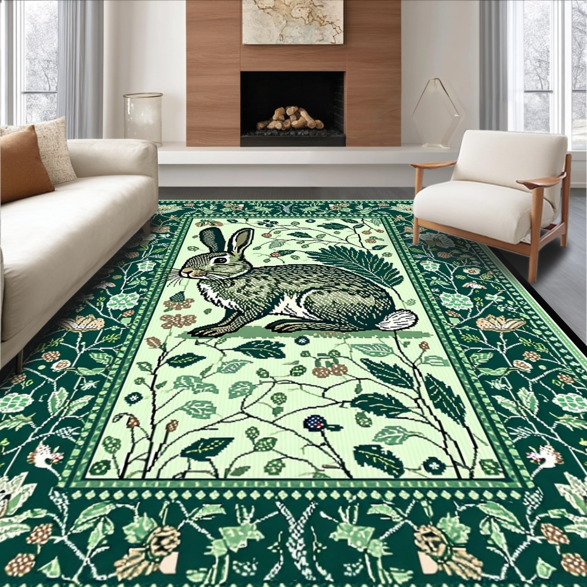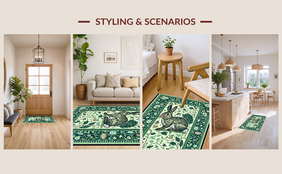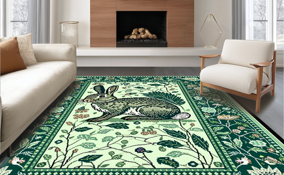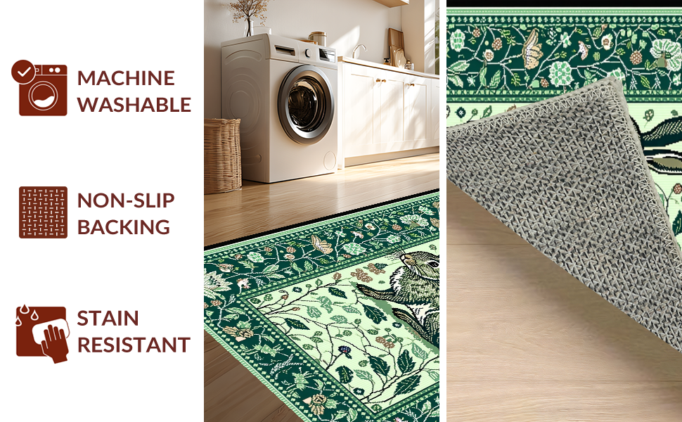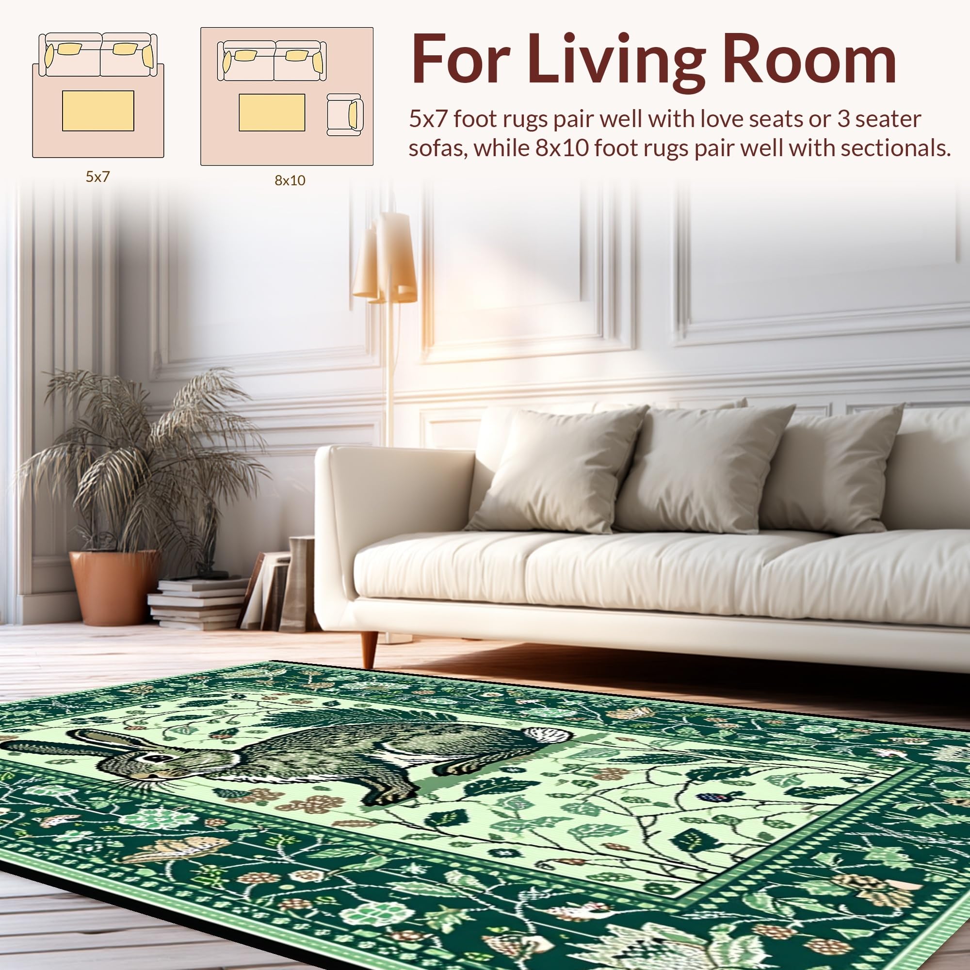 Ultra Soft Area Rug, Non Slip, Stain Resistant, Washable Area Rugs for Living Room, Bedroom, Enchanting Vintage Nature Composition(Green) Overview: