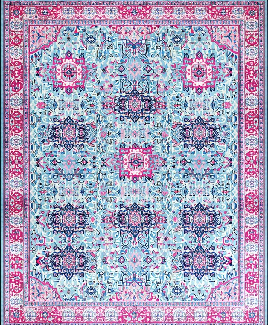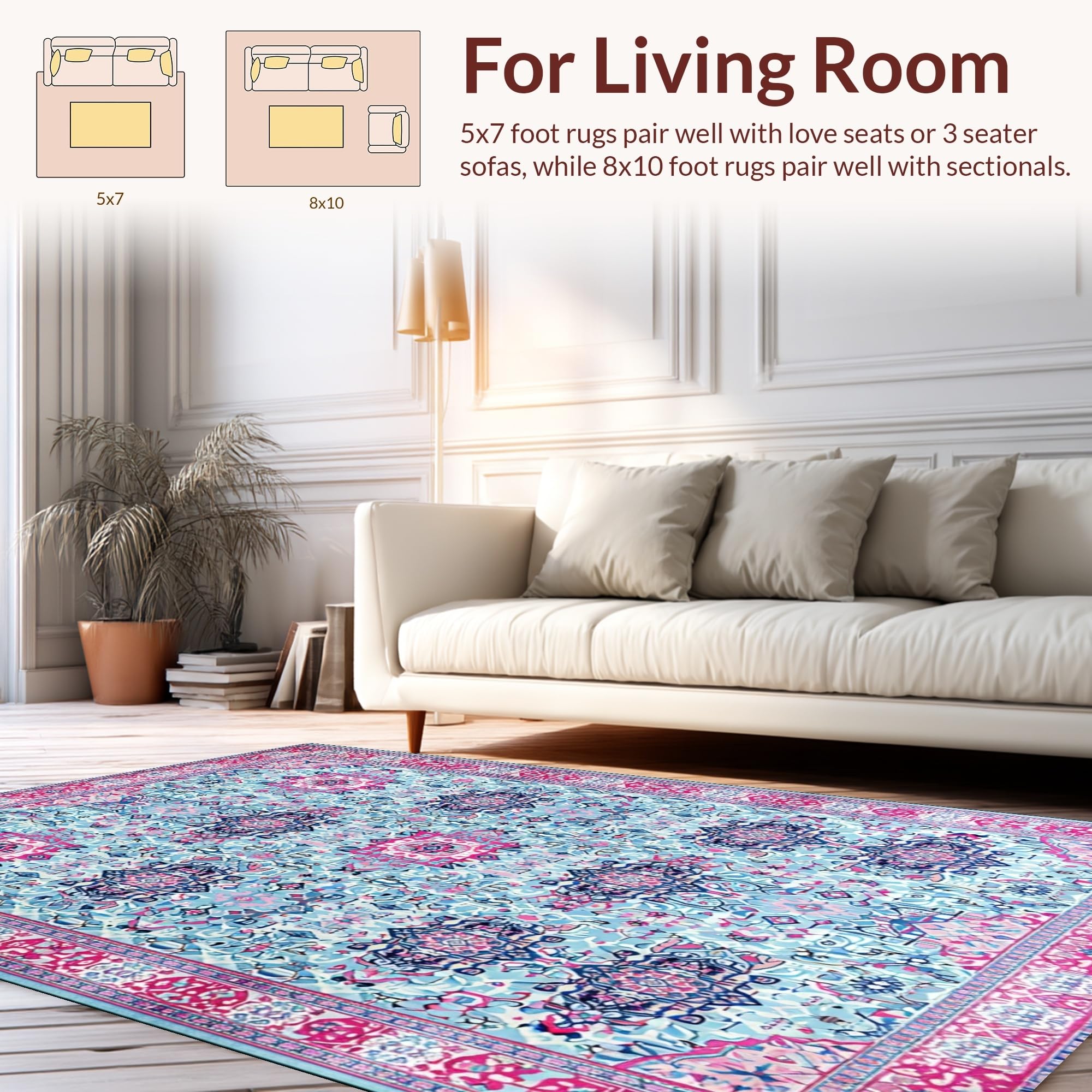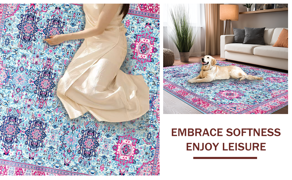 Ultra Soft Area Rug, Non Slip, Stain Resistant, Washable Area Rugs for Living Room, Bedroom, Enchanting Vintage Symmetrical Patterns(Blue) Overview: