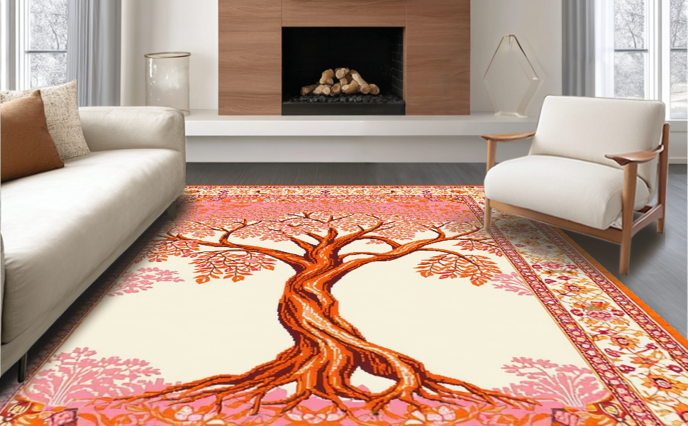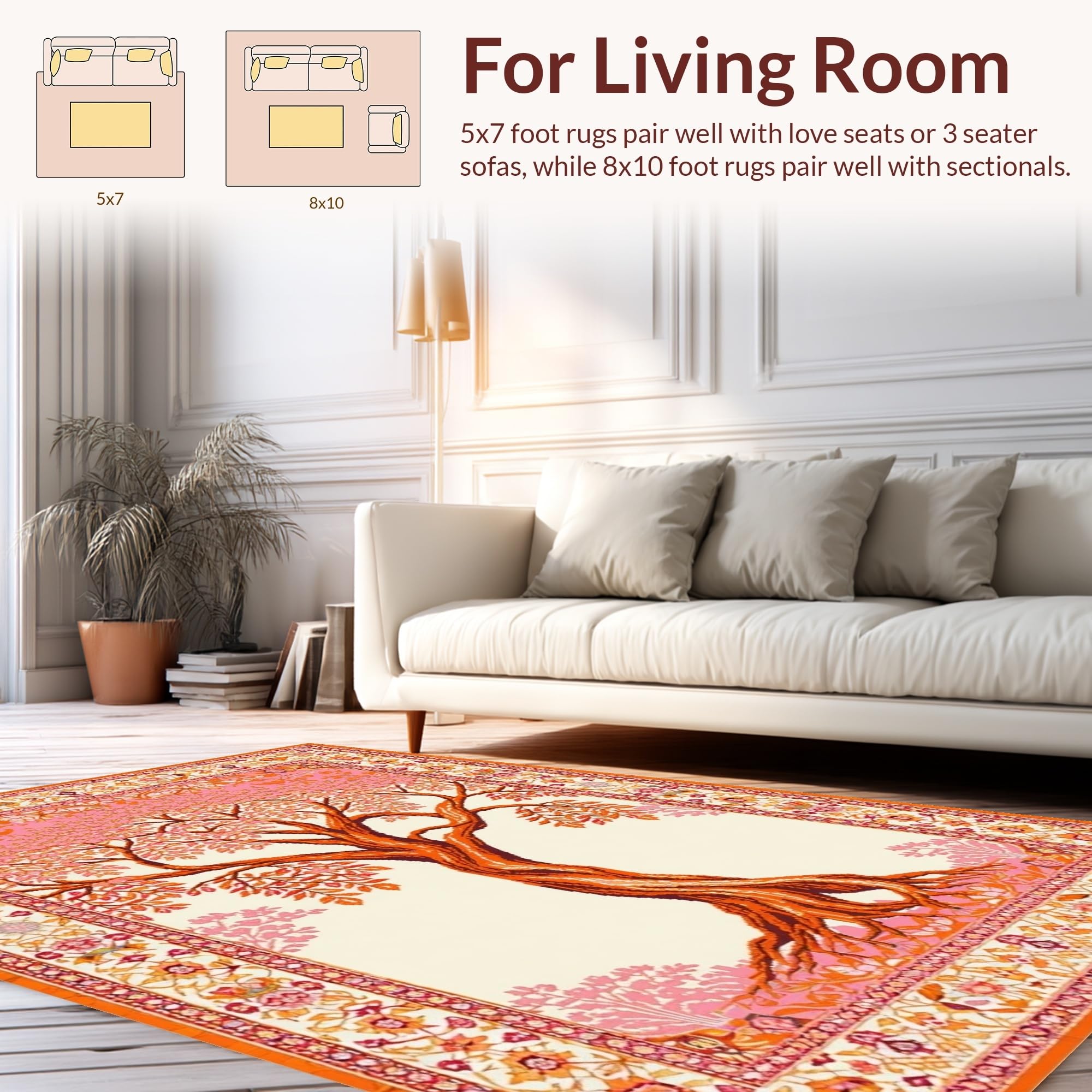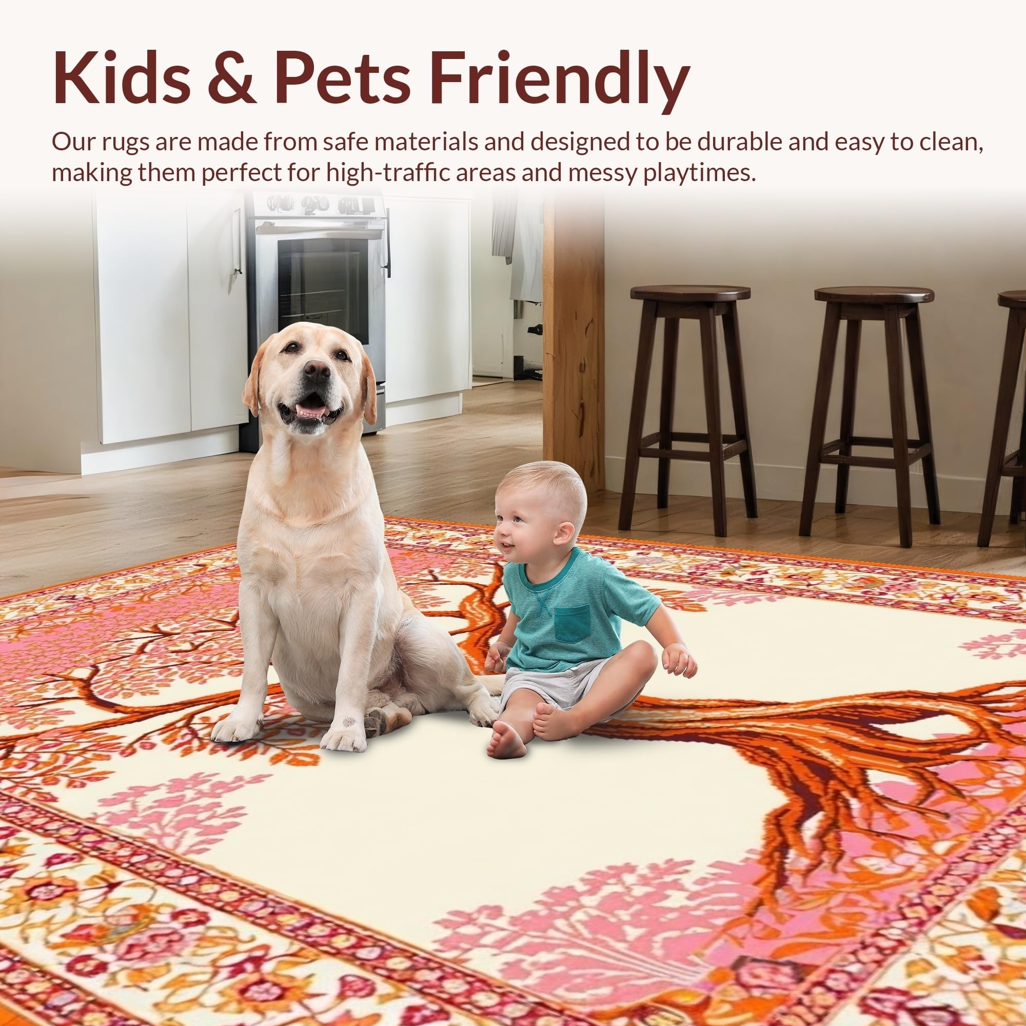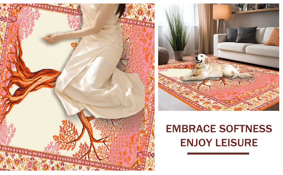 Ultra Soft Area Rug, Non Slip, Stain Resistant, Washable Area Rugs for Living Room, Bedroom, Enchanting Warm Tones Decoration(Pink) Overview: