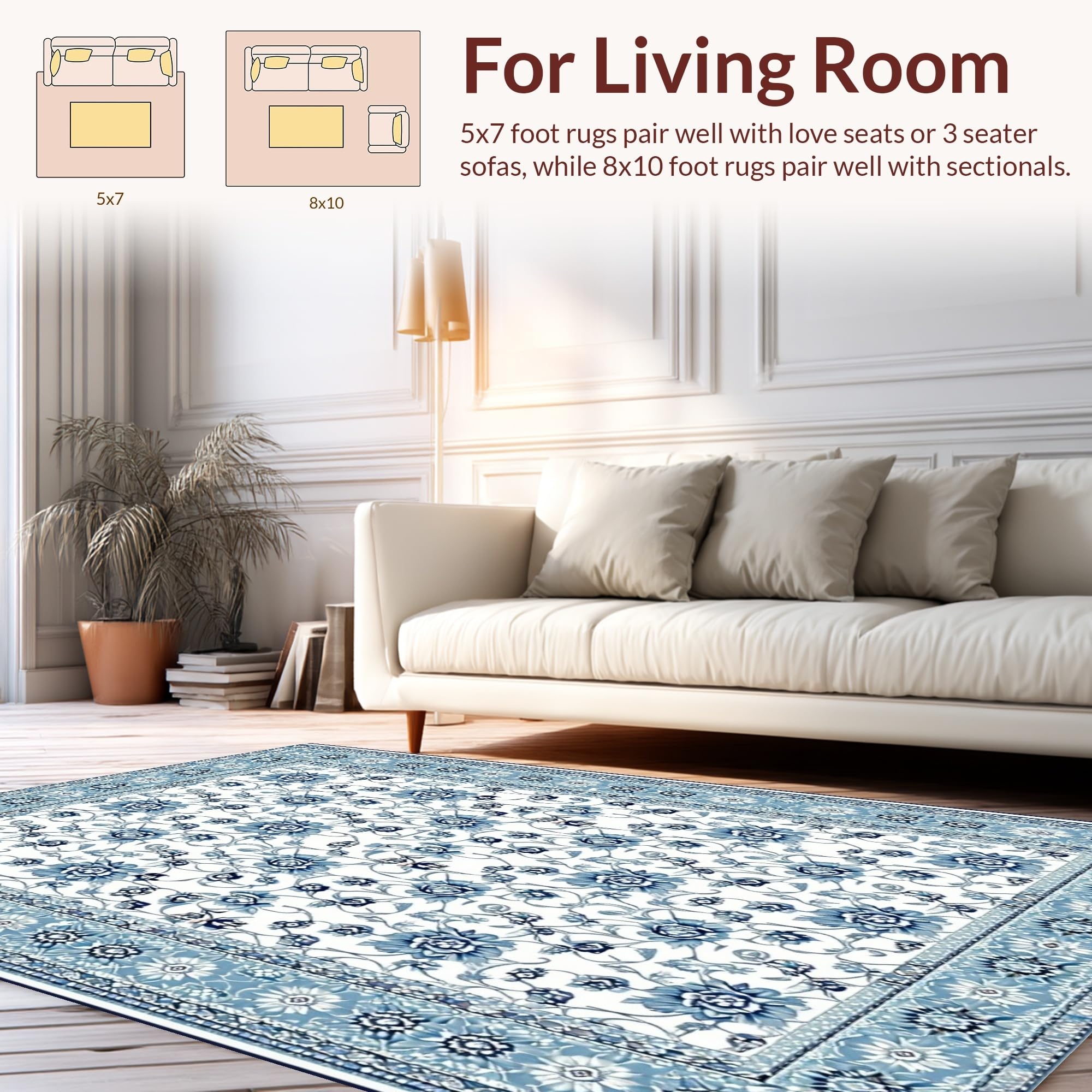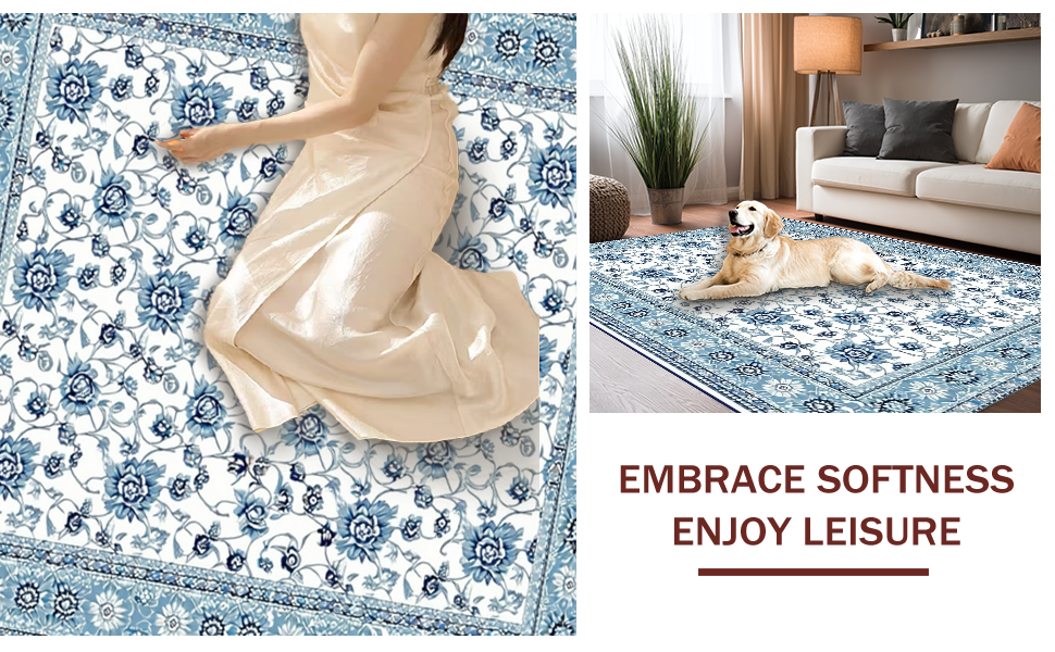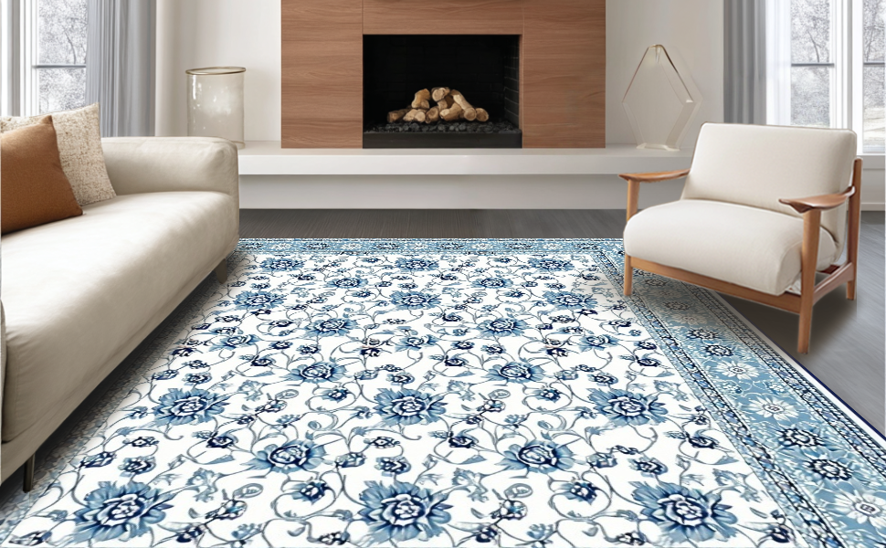 Ultra Soft Area Rug, Non Slip, Stain Resistant, Washable Area Rugs for Living Room, Bedroom, Enchanting Whimsical Nature Design(Blue) Overview: