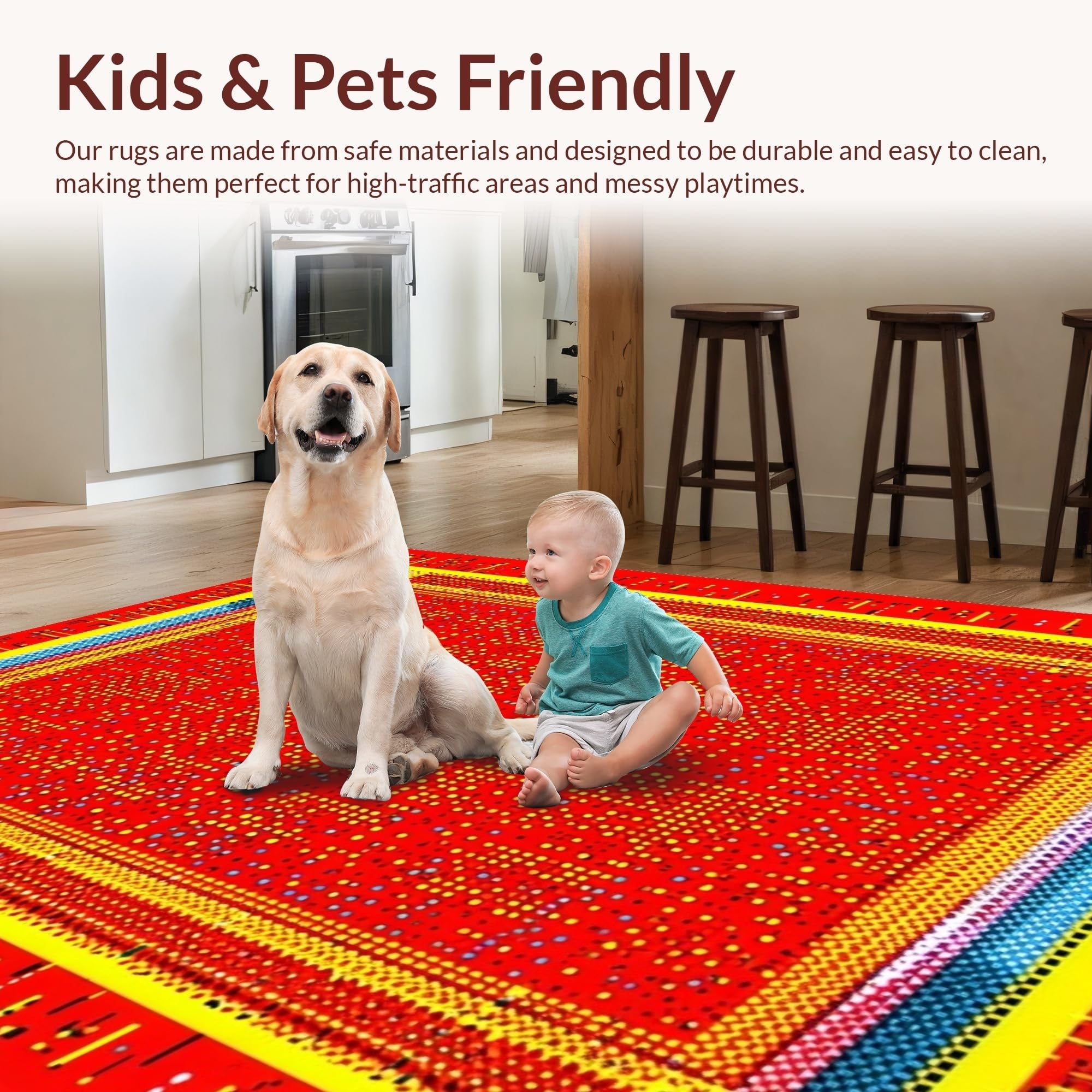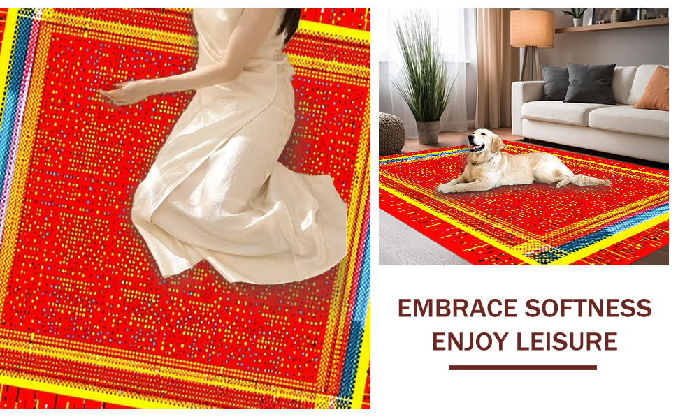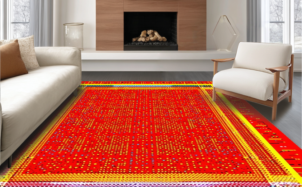 Ultra Soft Area Rug, Non Slip, Stain Resistant, Washable Area Rugs for Living Room, Bedroom, Energetic Cheerful Patterned Decor(Red) Overview: