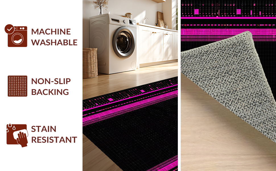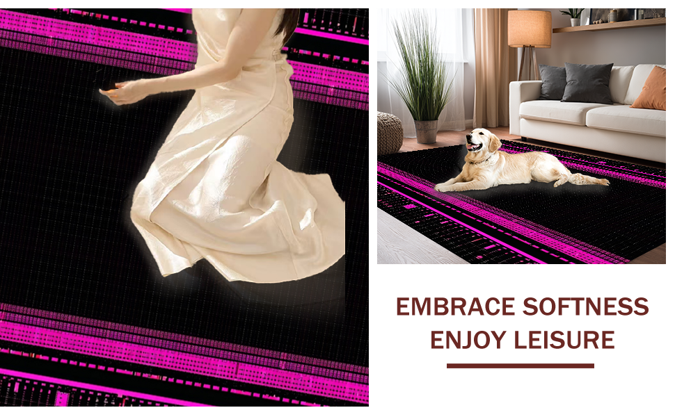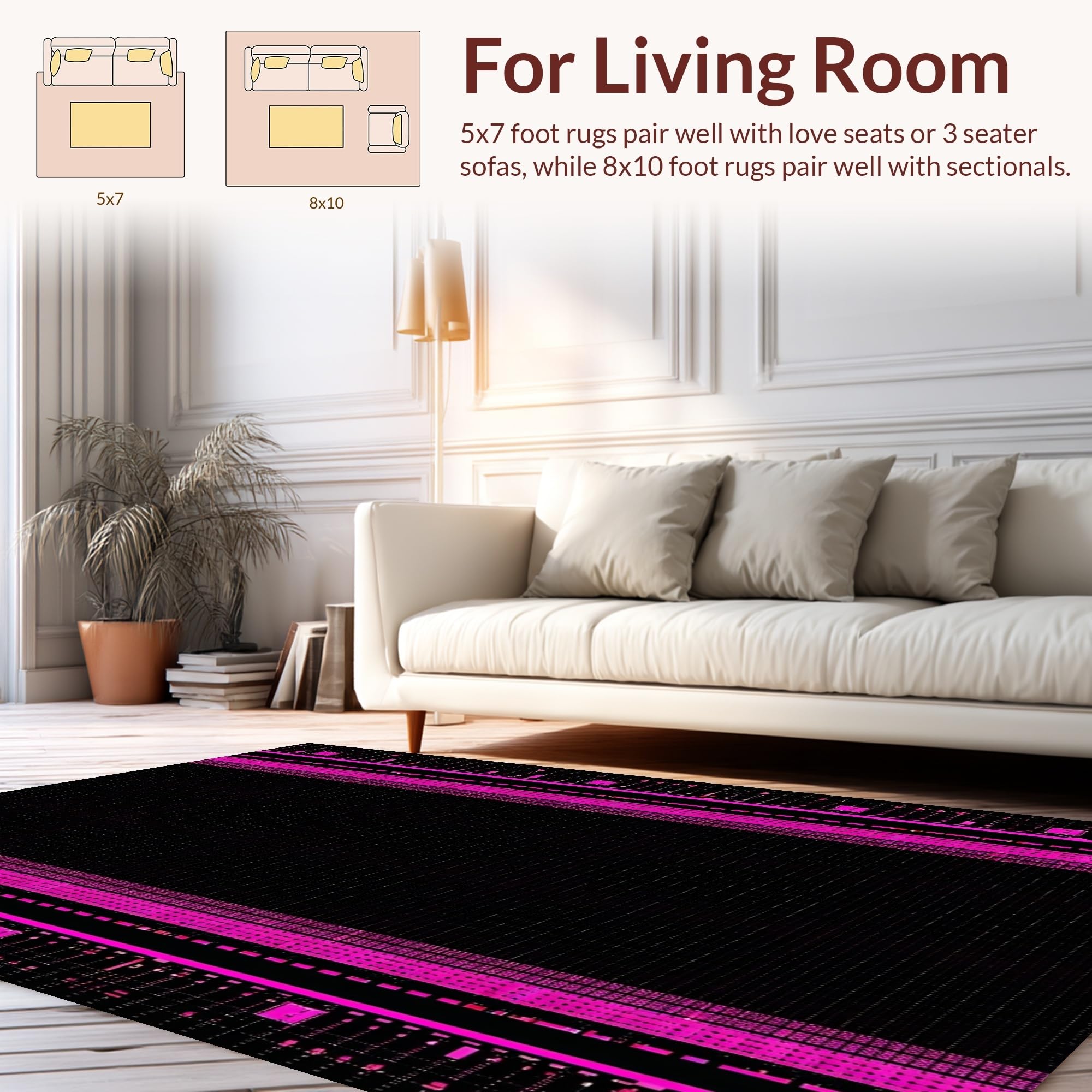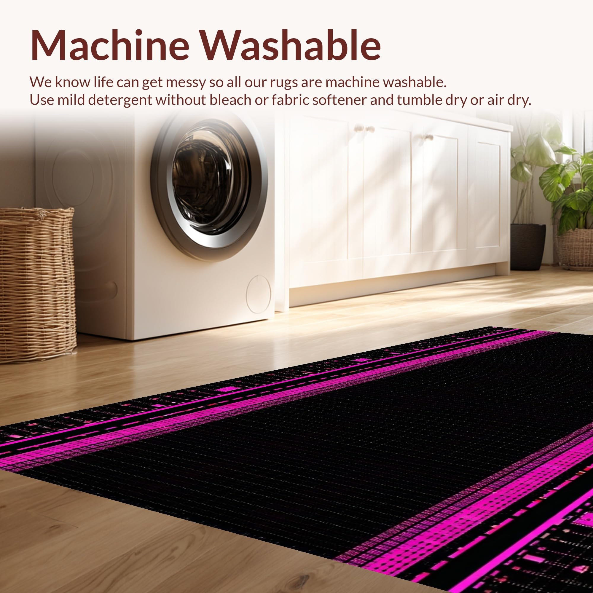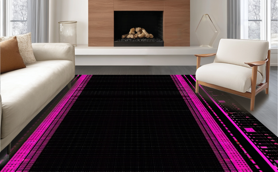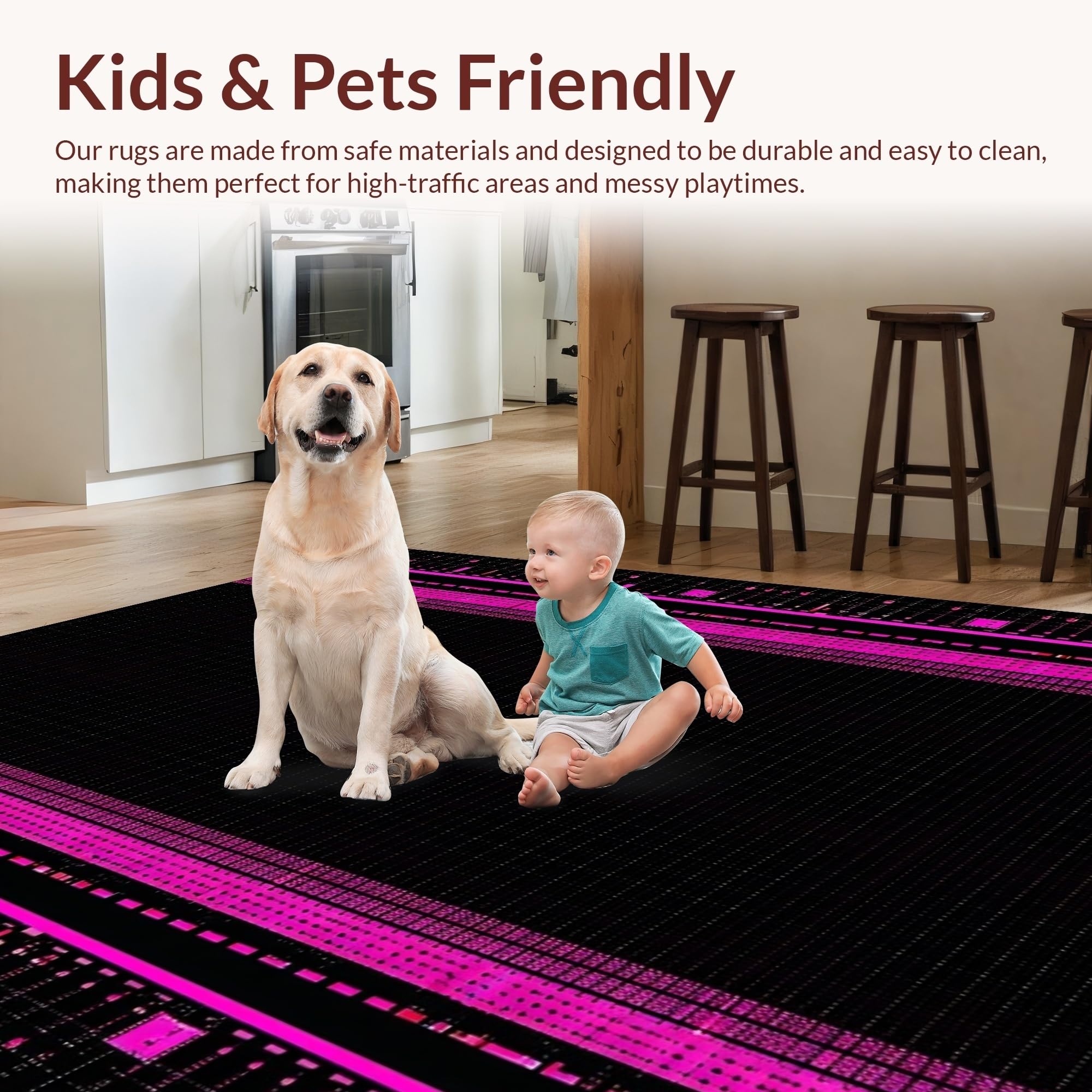 Ultra Soft Area Rug, Non Slip, Stain Resistant, Washable Area Rugs for Living Room, Bedroom, Energetic Colorful Tech-Inspired Layout(Pink) Overview: