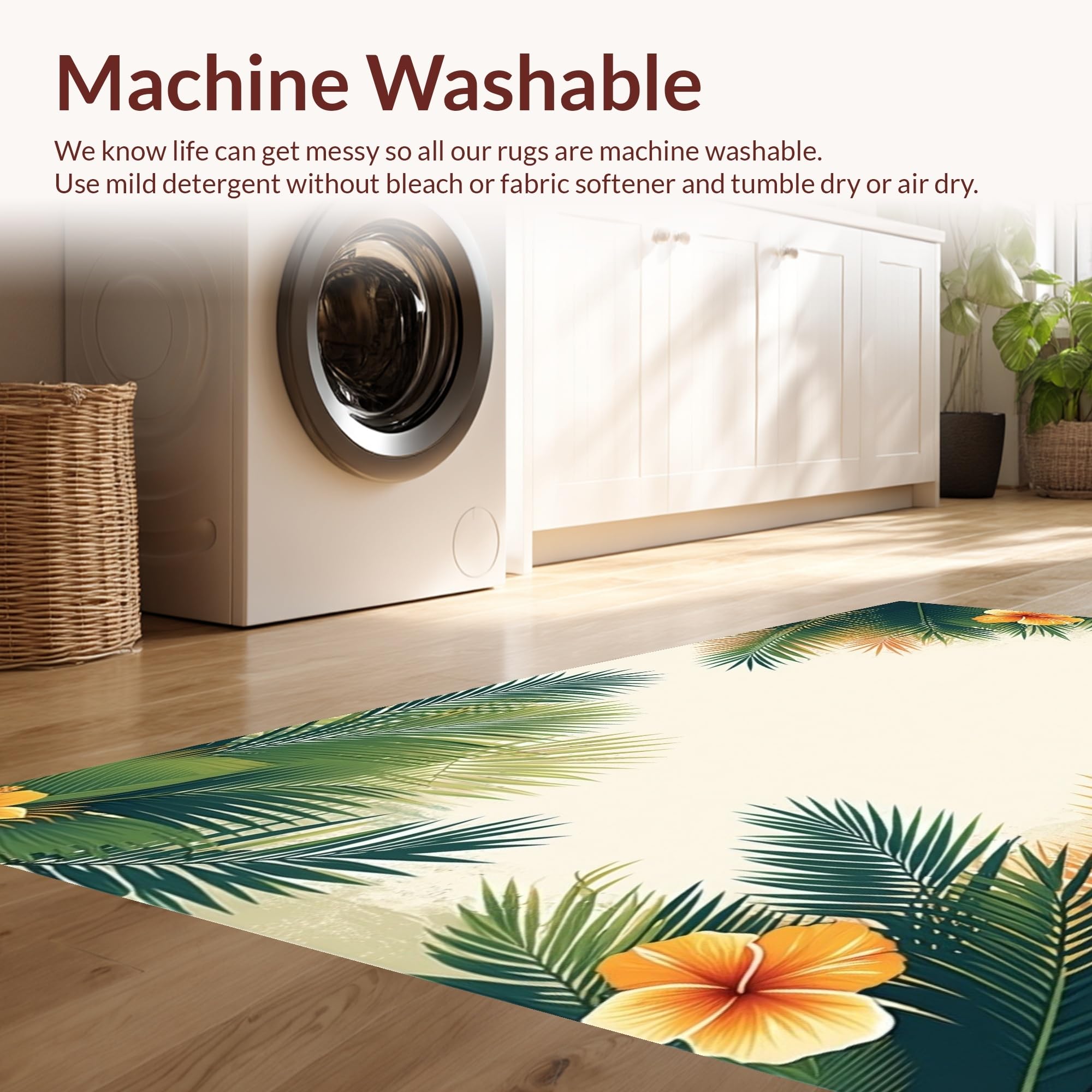 - Machine Washable: Our rugs can be easily thrown in the wash machine.