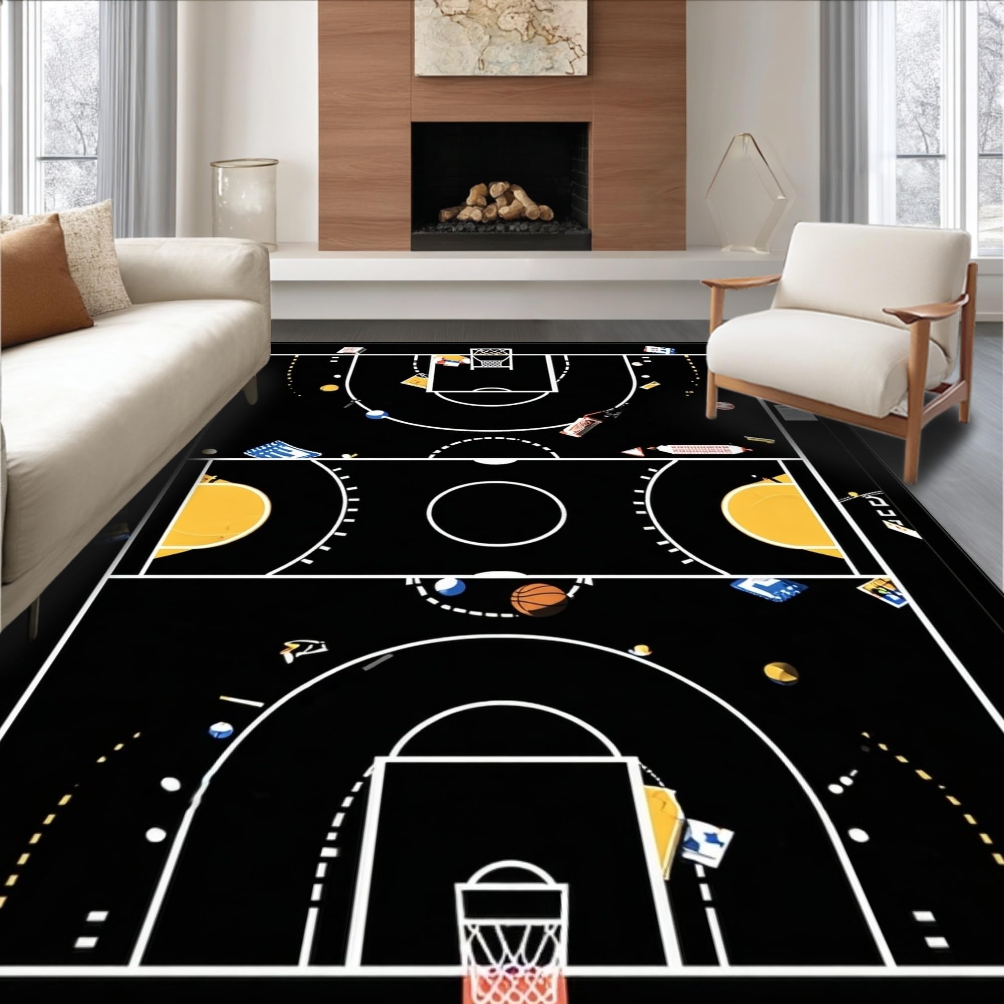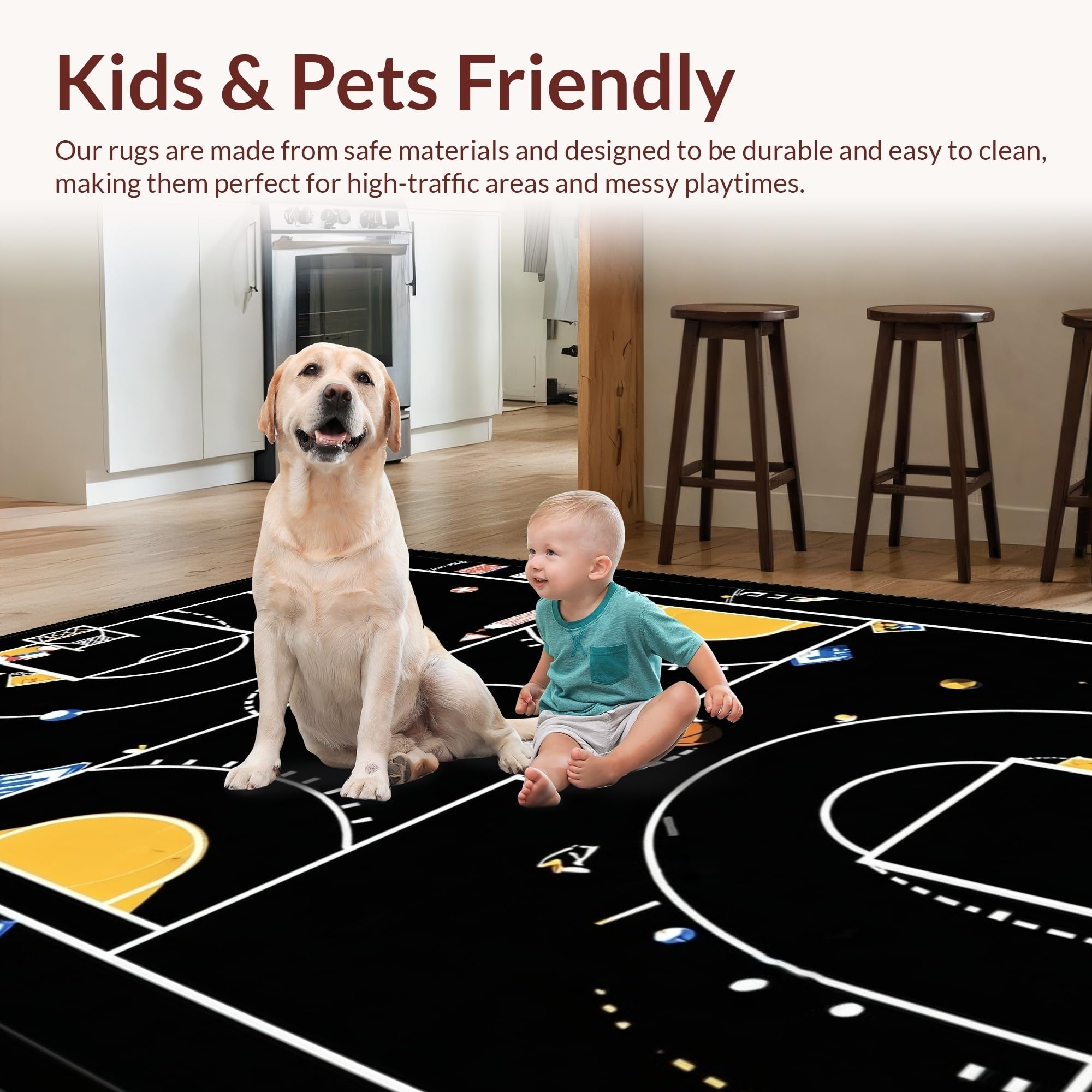 Ultra Soft Area Rug, Non Slip, Stain Resistant, Washable Area Rugs for Living Room, Bedroom, Energetic Geometric Ball Illustration(Black) Overview: