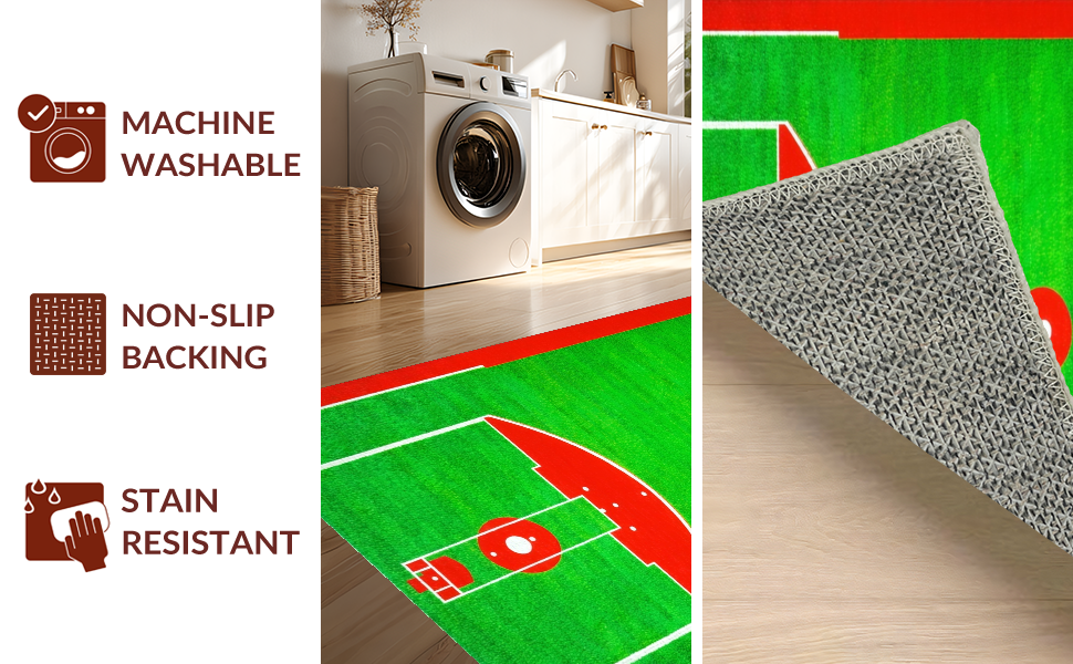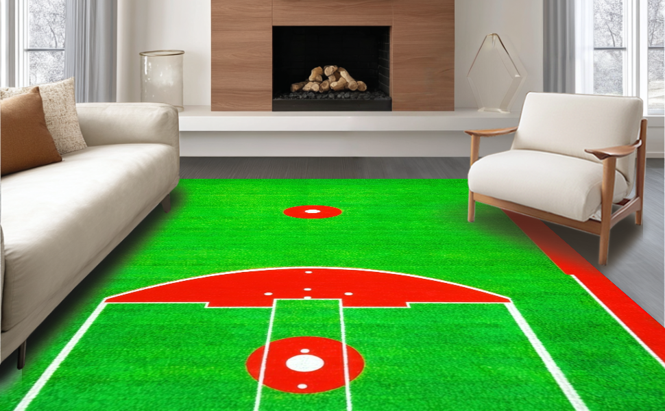 Ultra Soft Area Rug, Non Slip, Stain Resistant, Washable Area Rugs for Living Room, Bedroom, Energetic Graphic Baseball Visual Appeal(Green) Overview:
