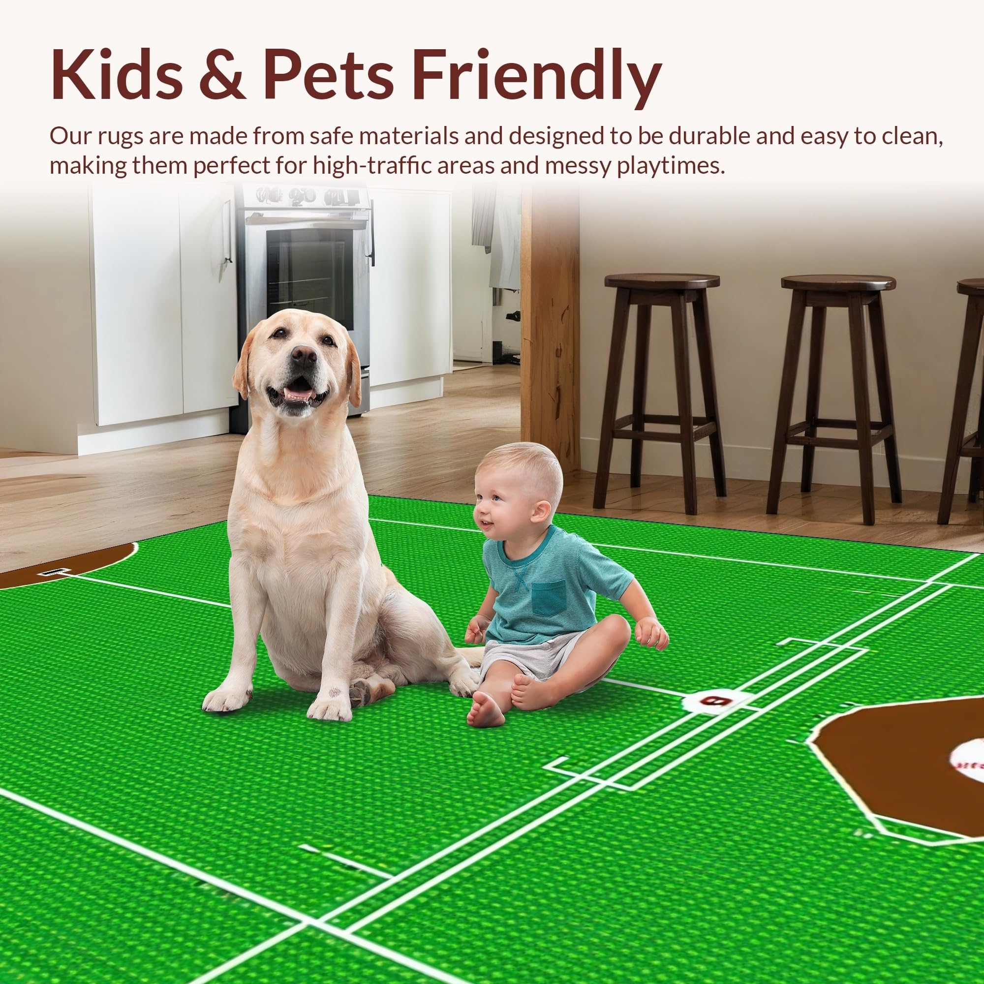 Ultra Soft Area Rug, Non Slip, Stain Resistant, Washable Area Rugs for Living Room, Bedroom, Energetic Green and Brown Play Space(Green) Overview: