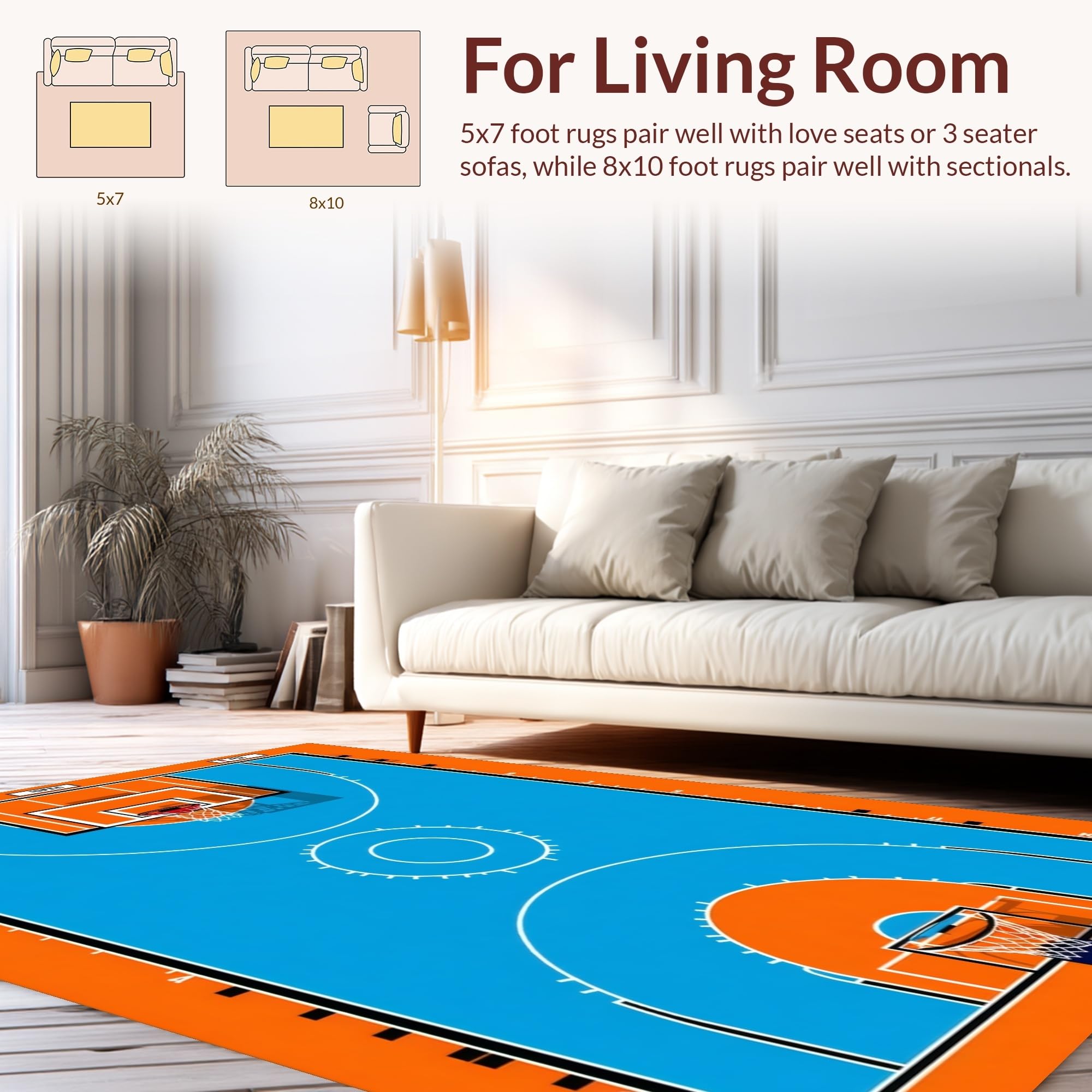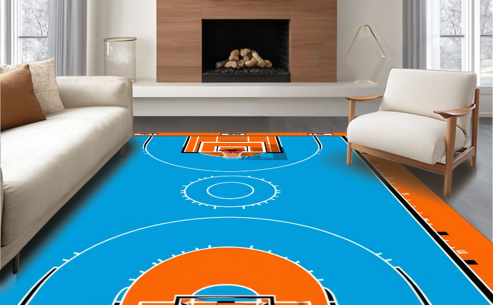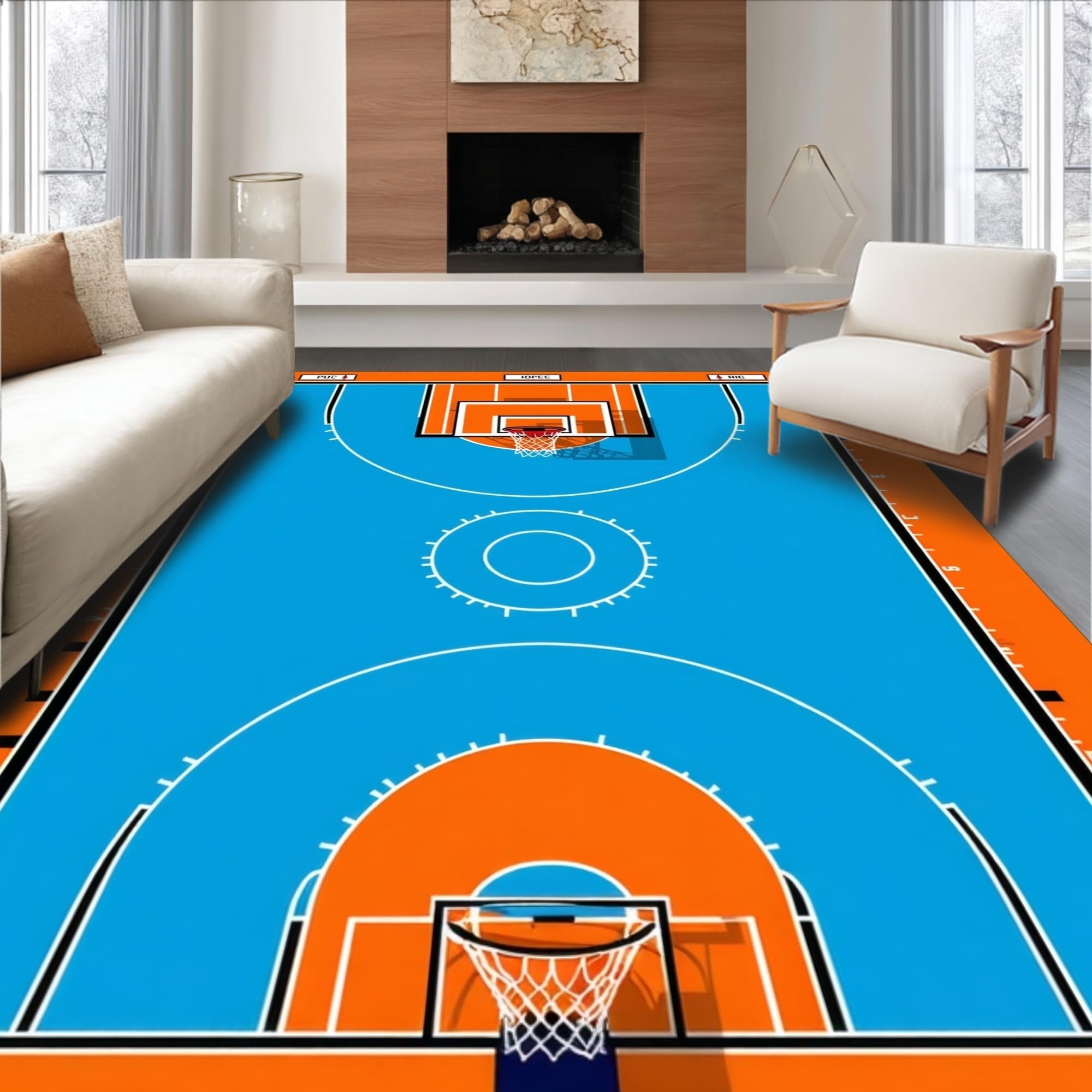 Ultra Soft Area Rug, Non Slip, Stain Resistant, Washable Area Rugs for Living Room, Bedroom, Energetic Modern Sports Emblem(Blue) Overview: