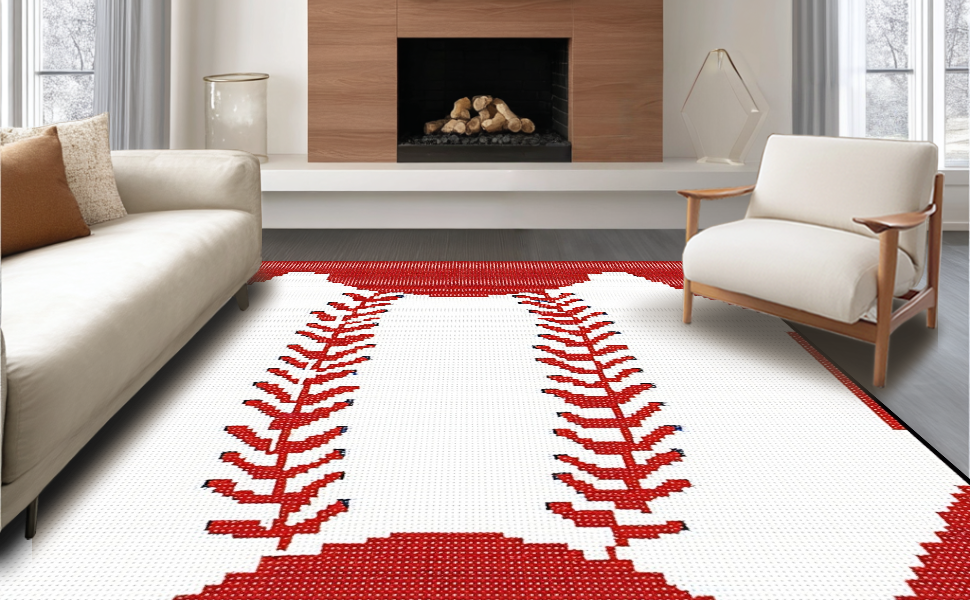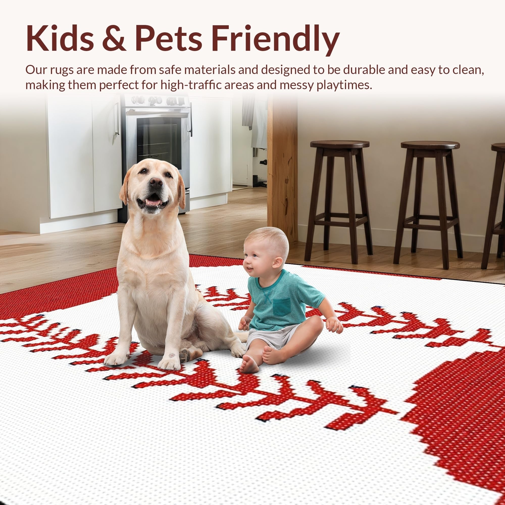 Ultra Soft Area Rug, Non Slip, Stain Resistant, Washable Area Rugs for Living Room, Bedroom, Energetic Round Stitched Aesthetic(Red) Overview: